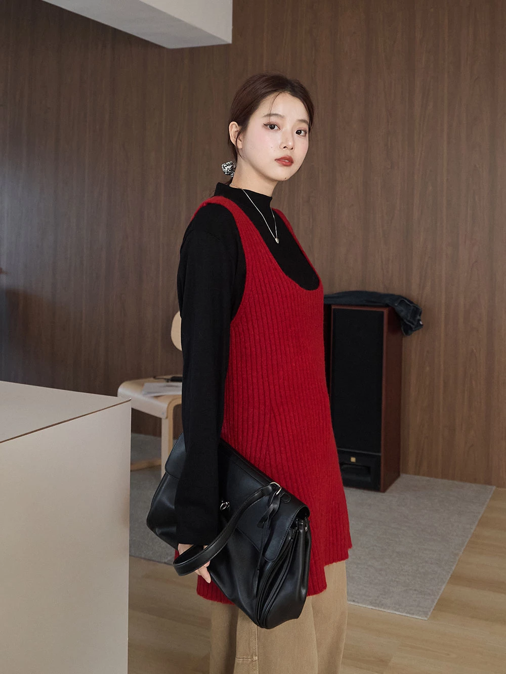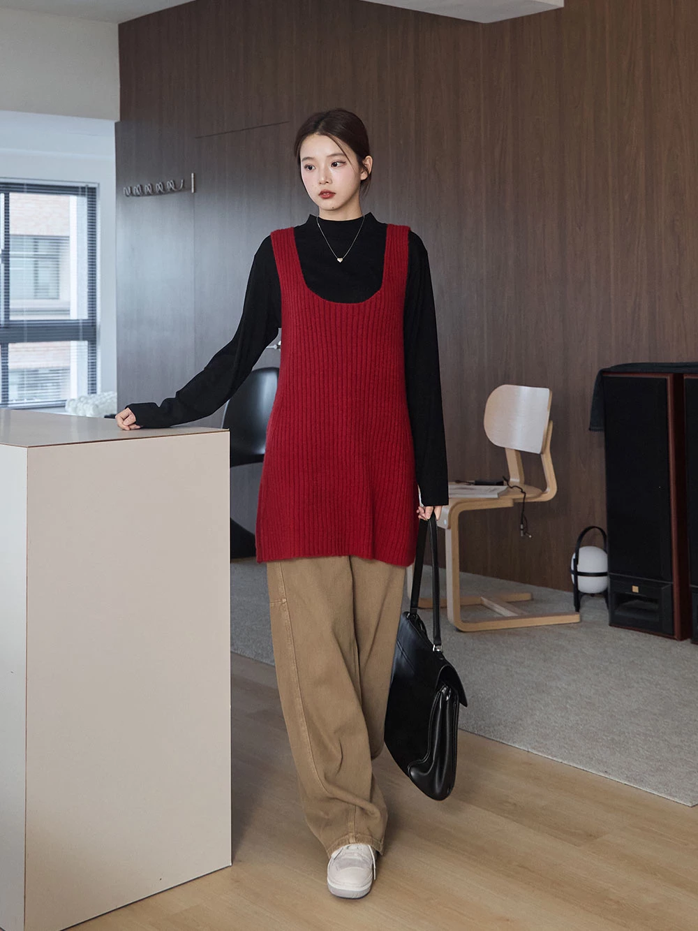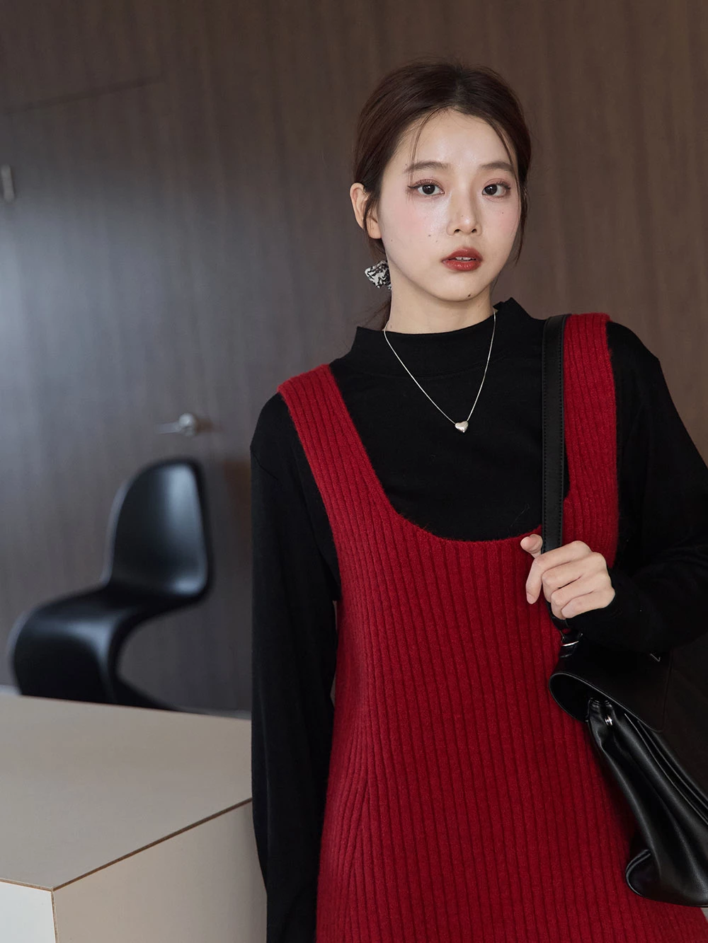 大U領針織背心洋裝