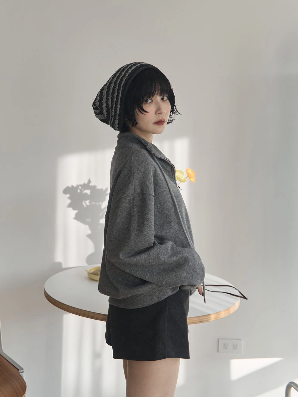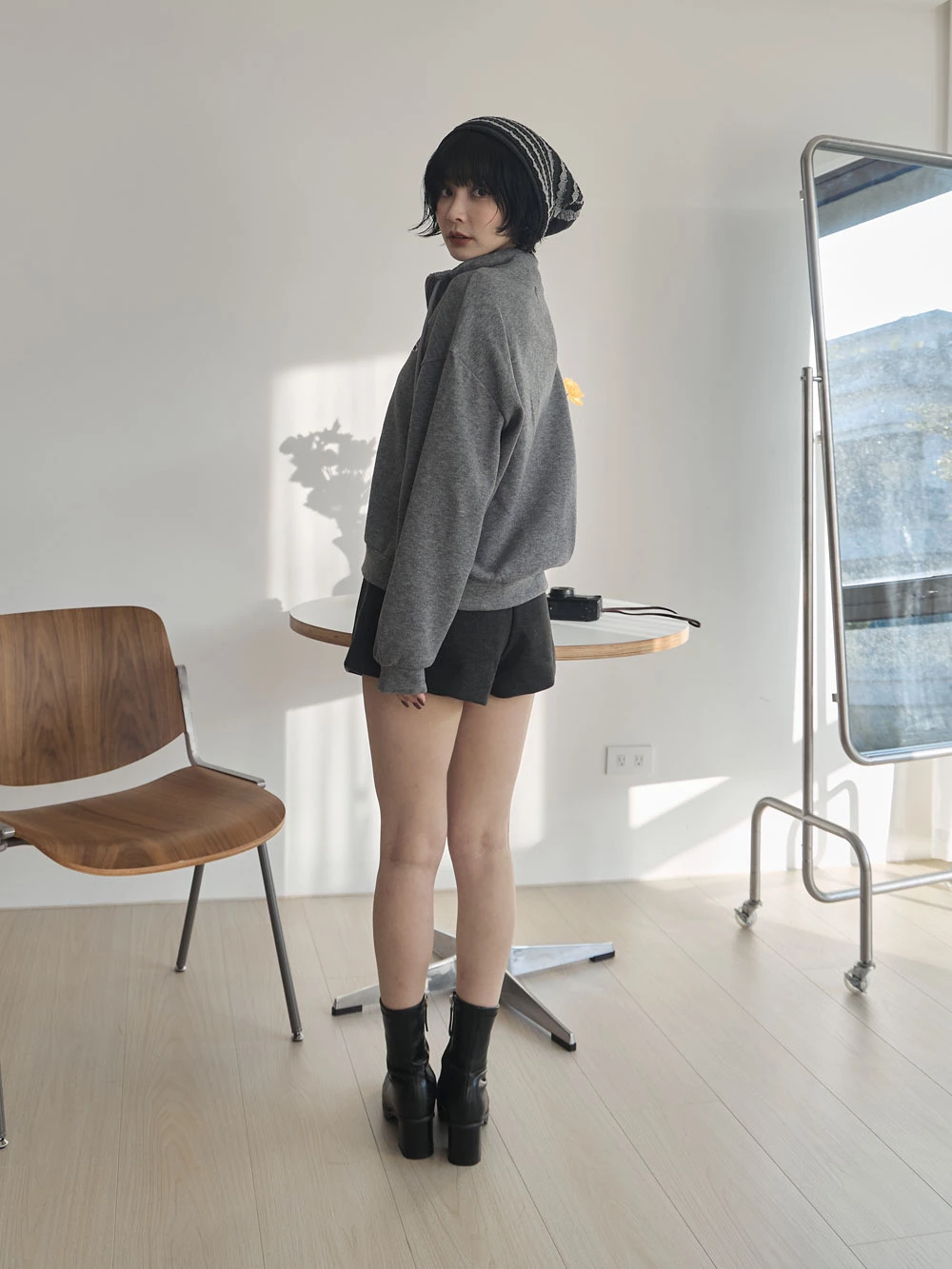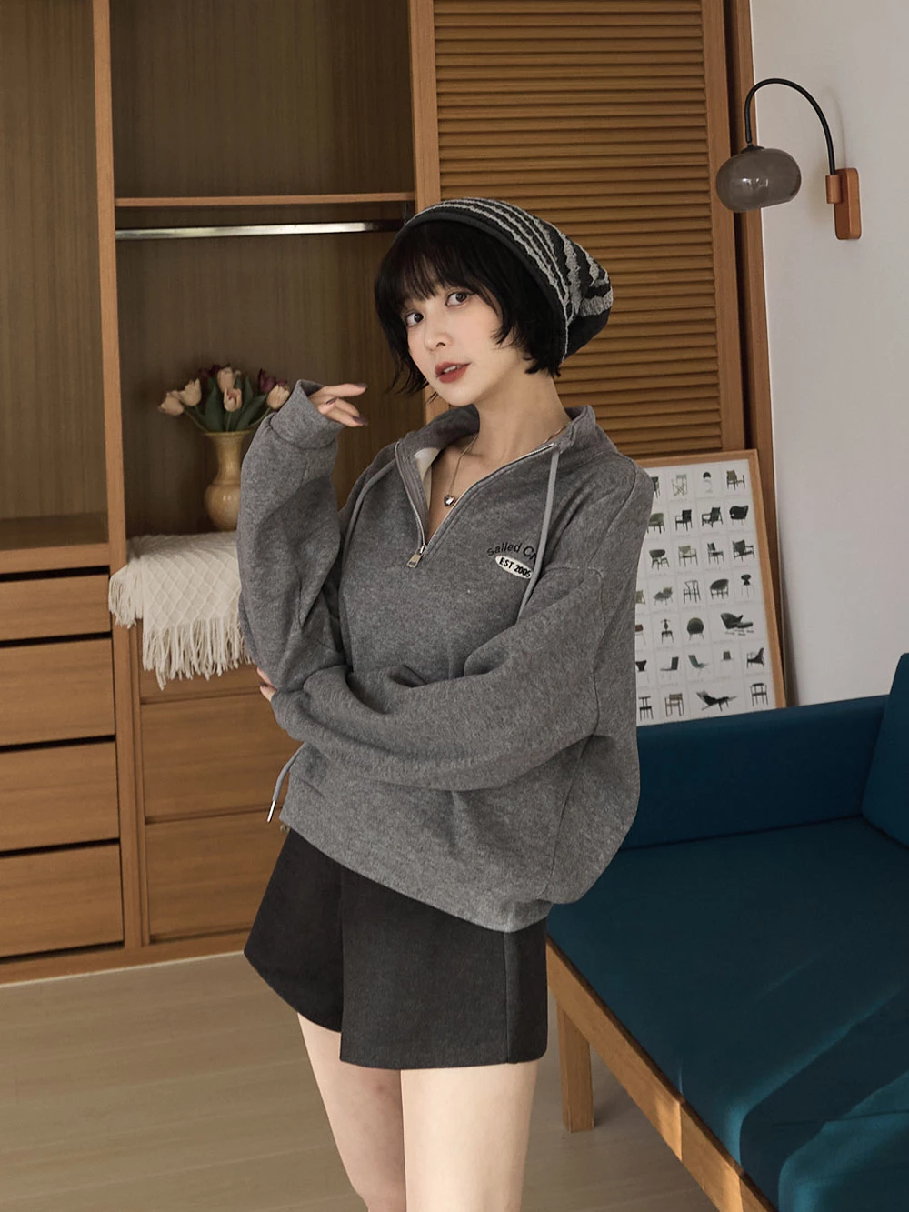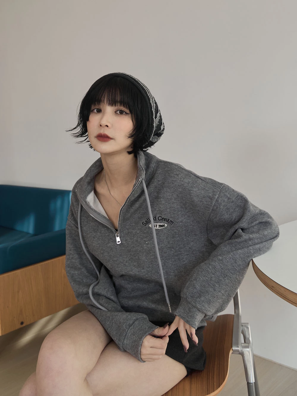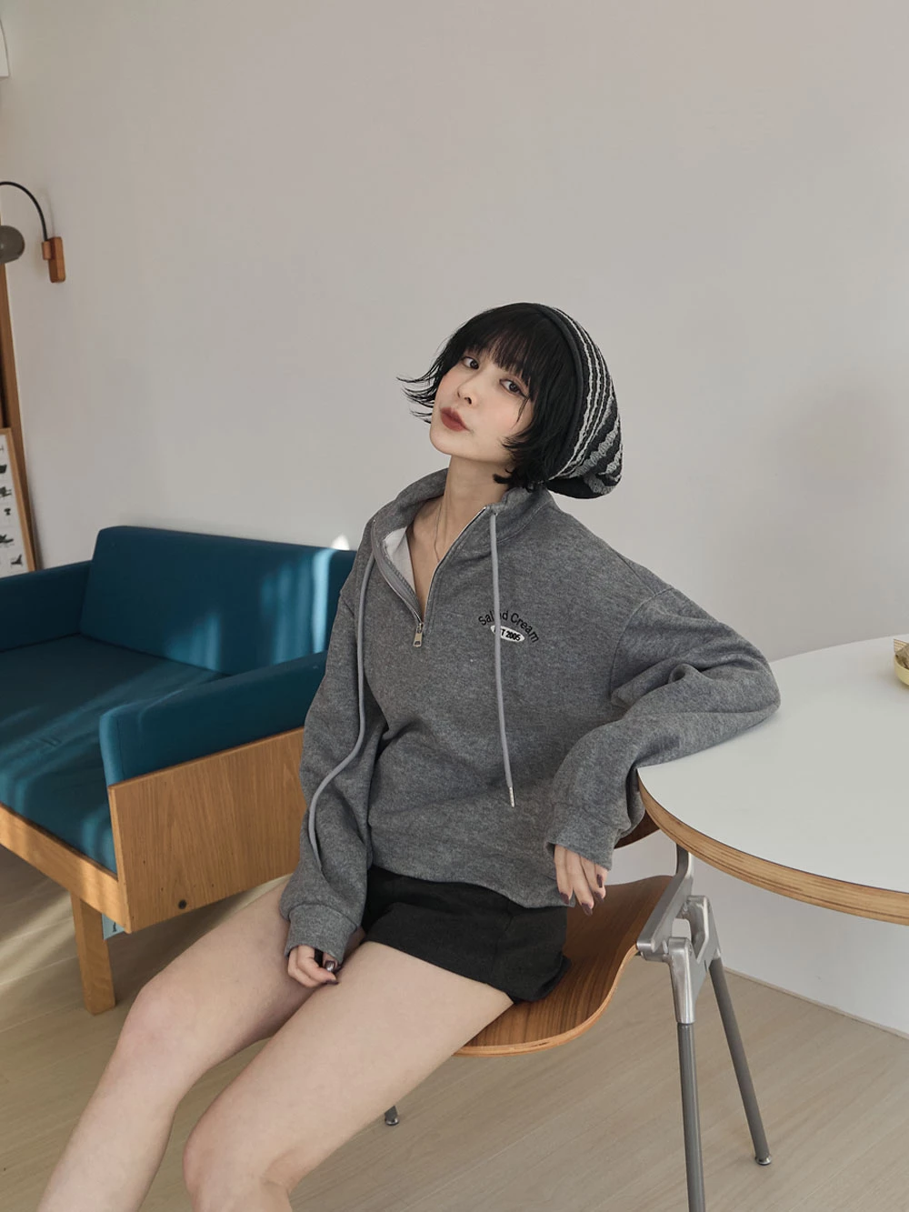 半拉鍊立領繡字磨毛上衣