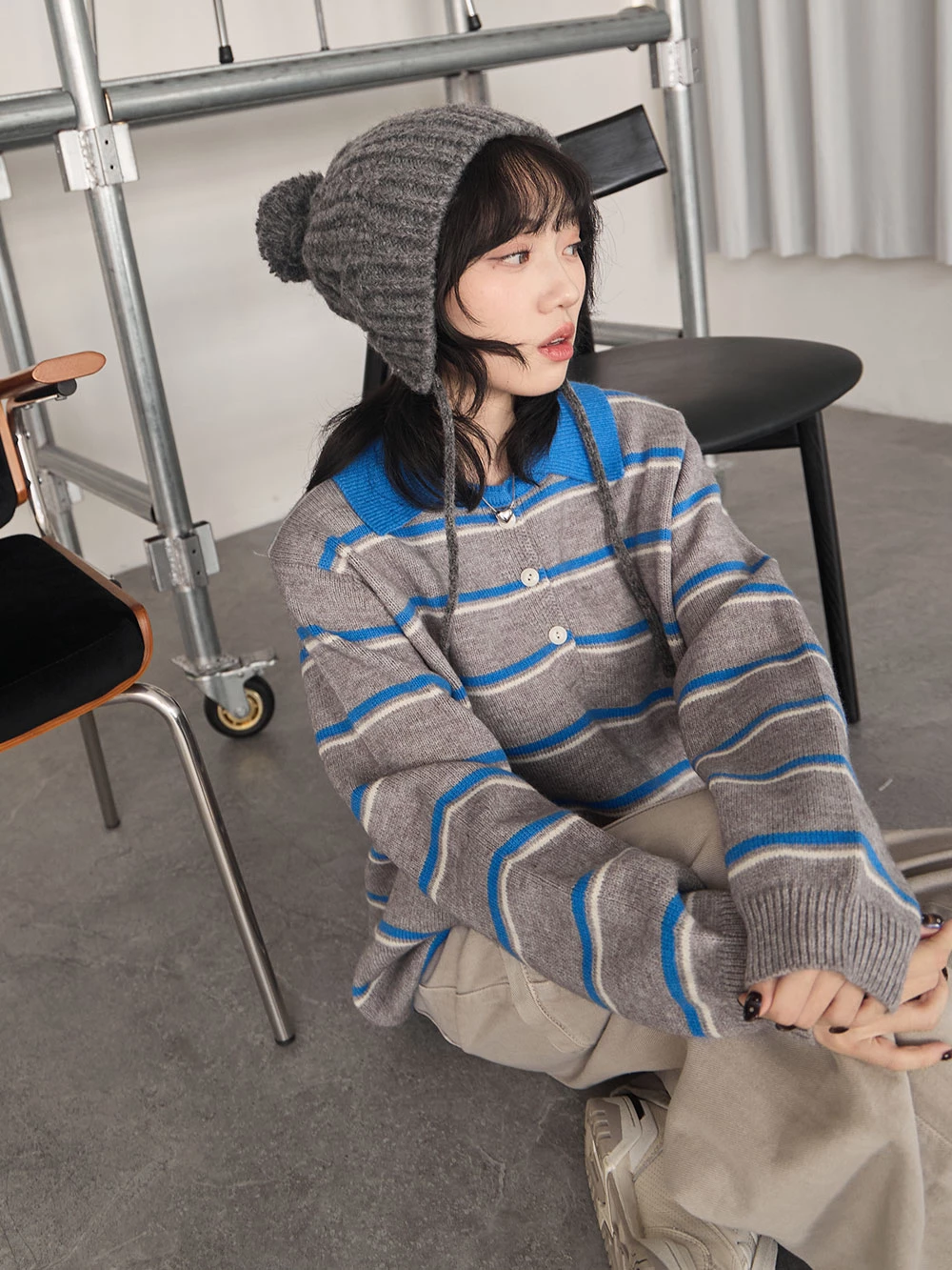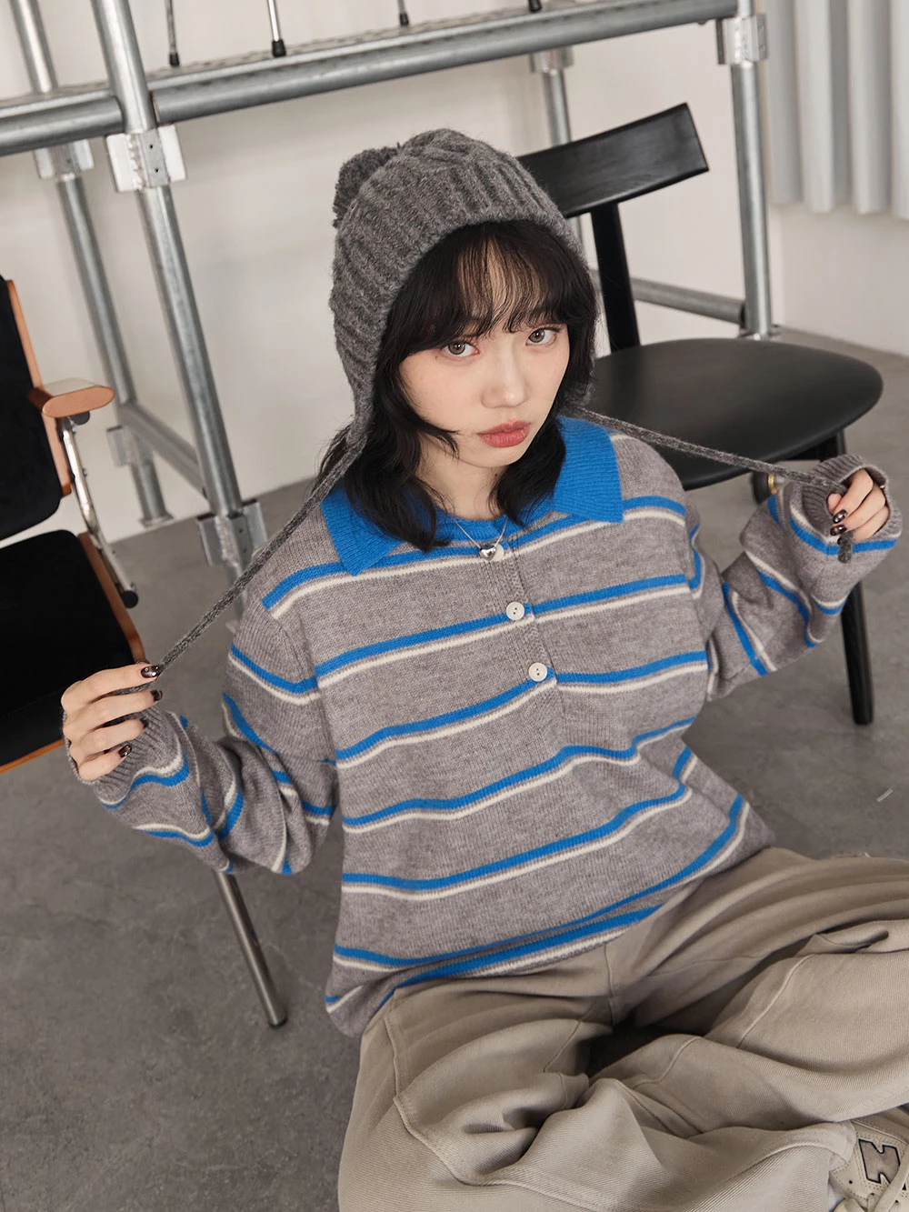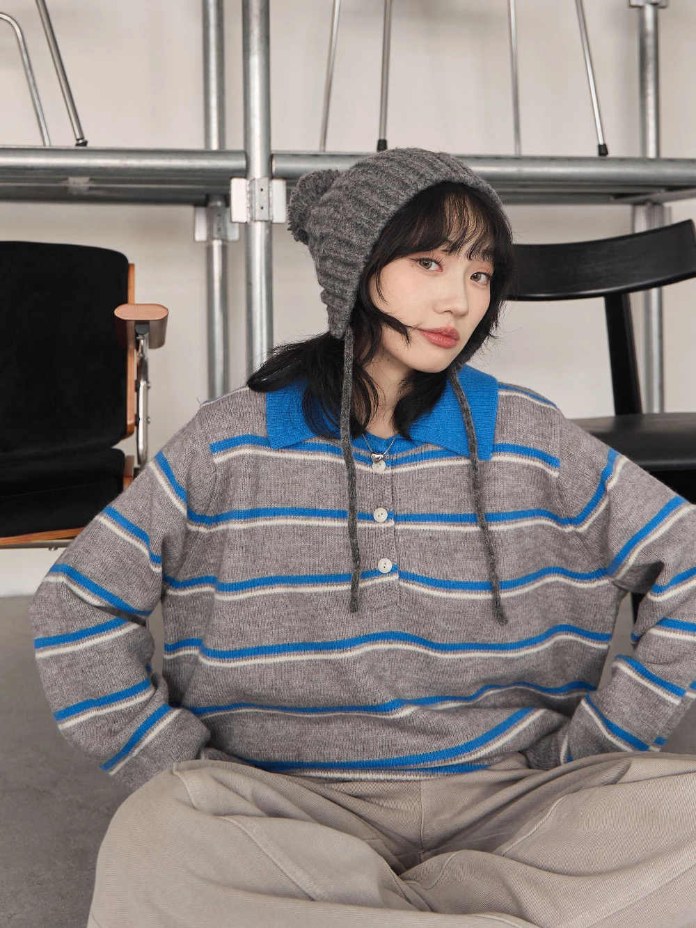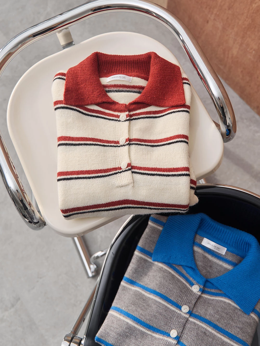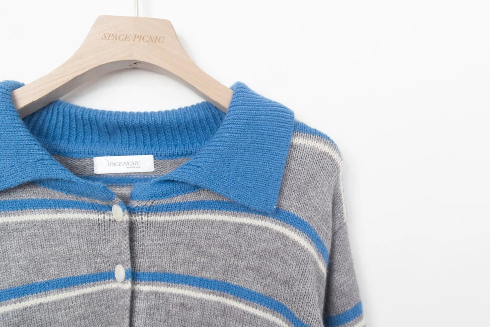 撞色翻領條紋針織上衣 | Space Picnic