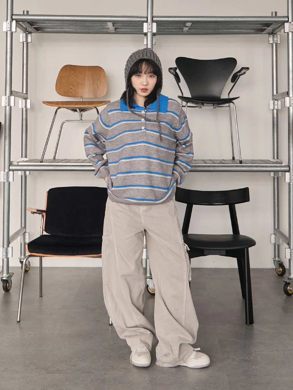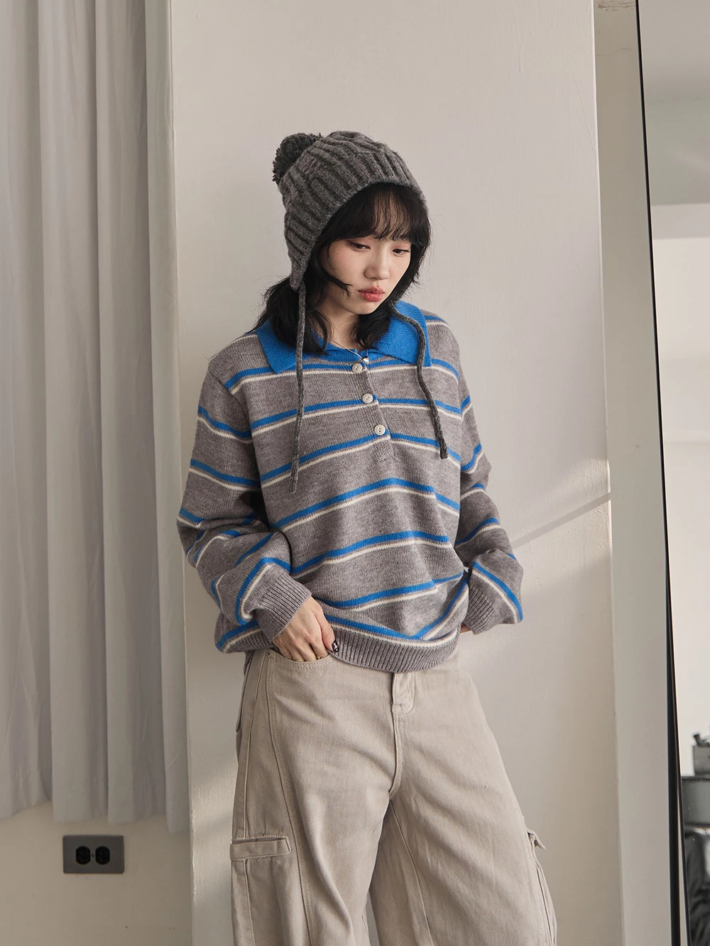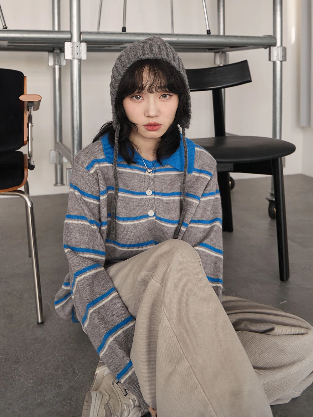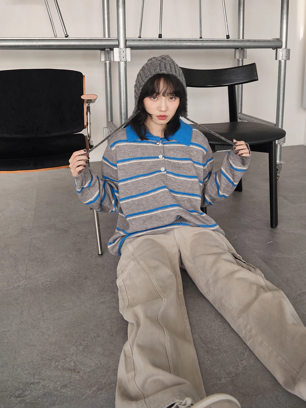 撞色翻領條紋針織上衣 | Space Picnic