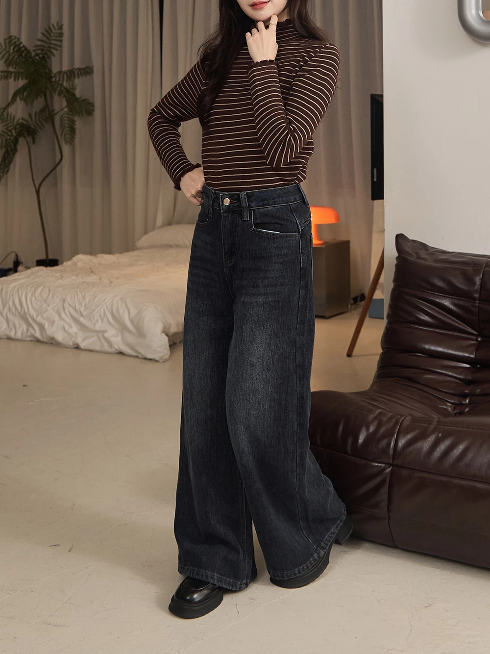 內磨毛水洗牛仔褲