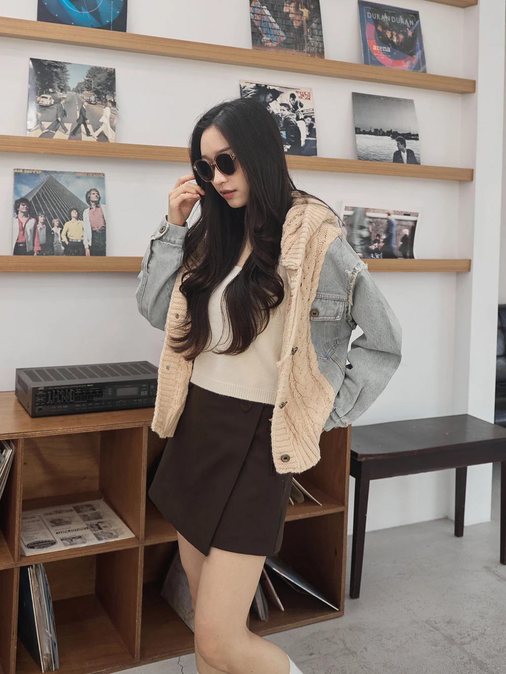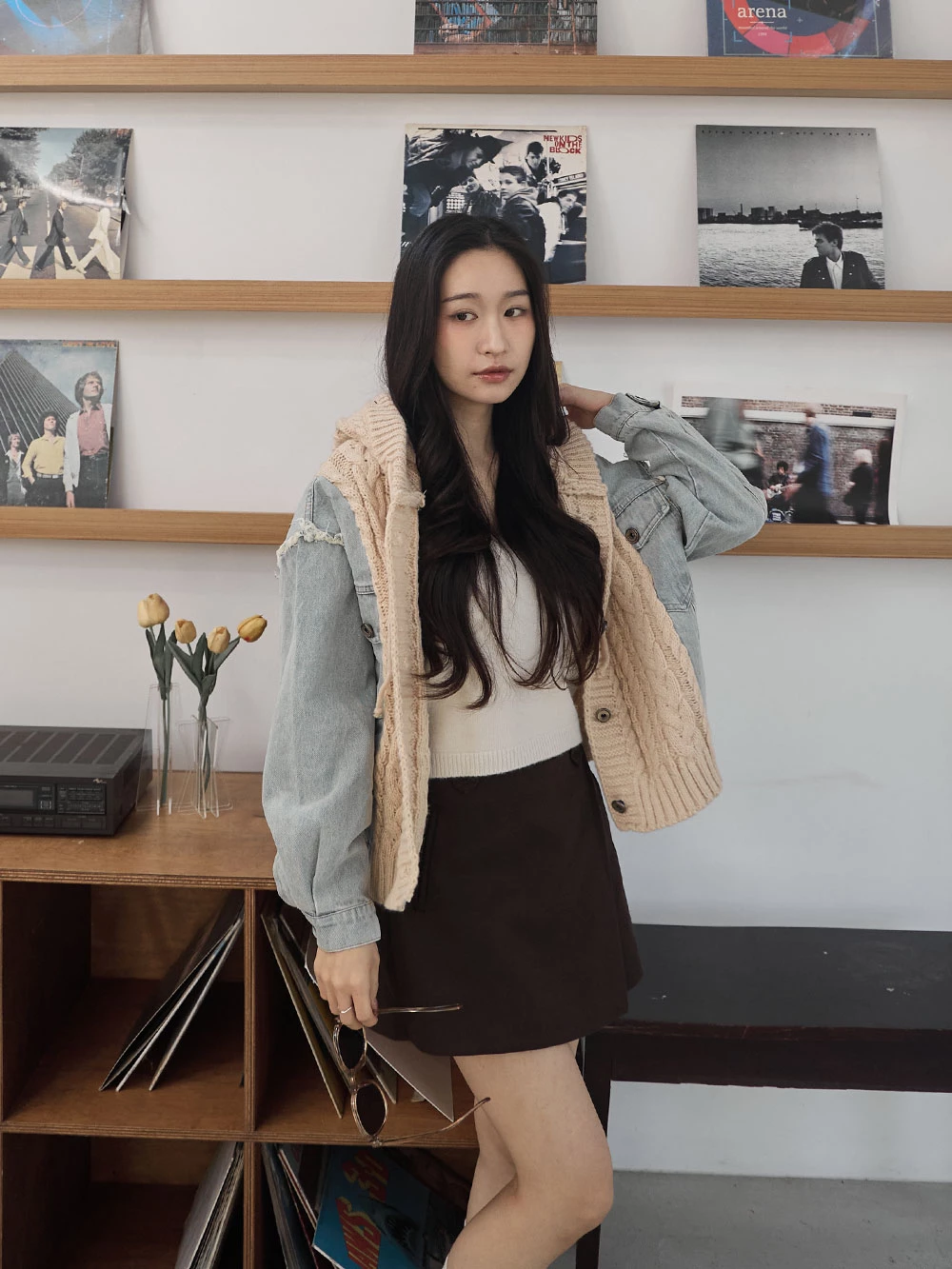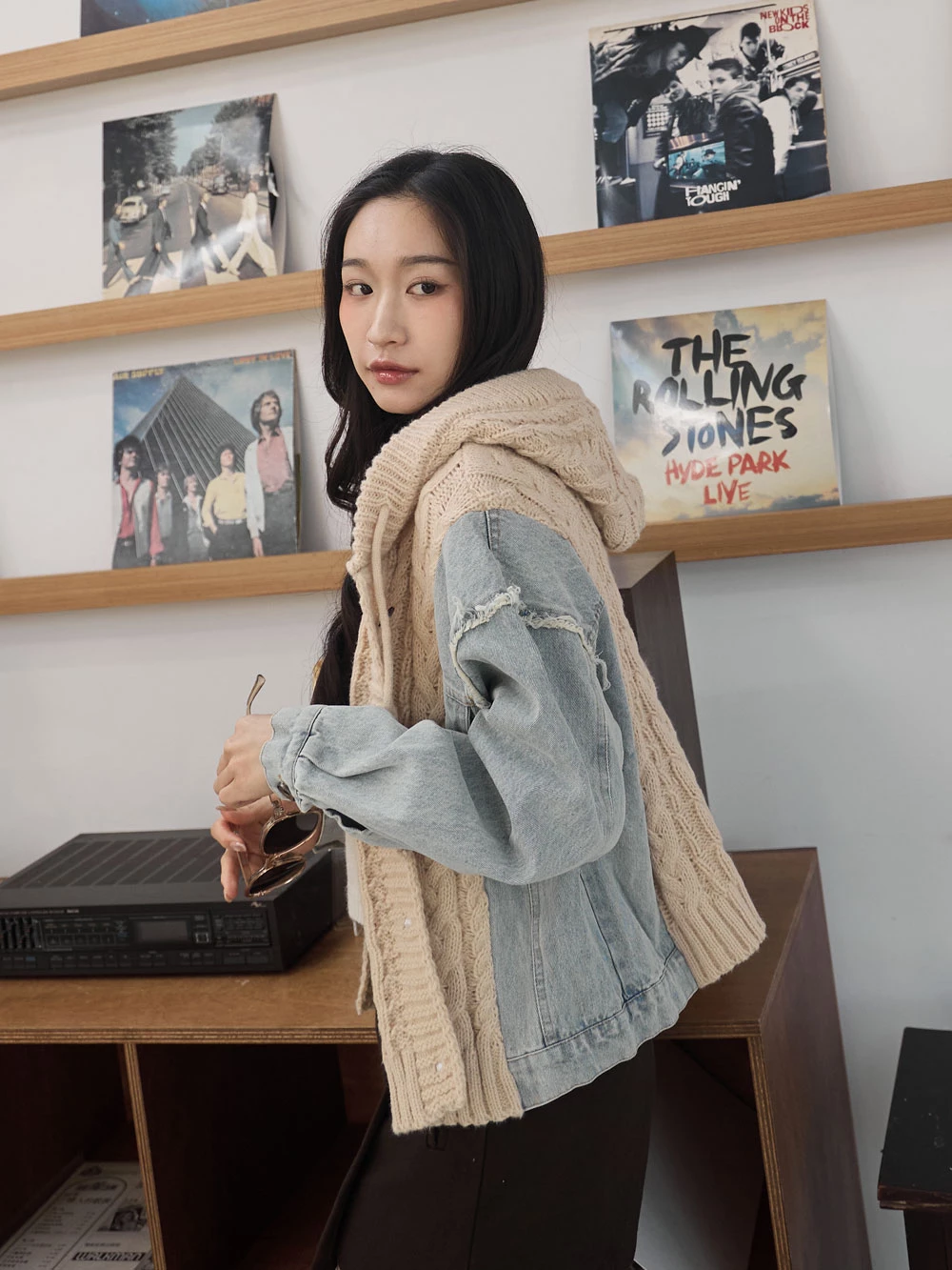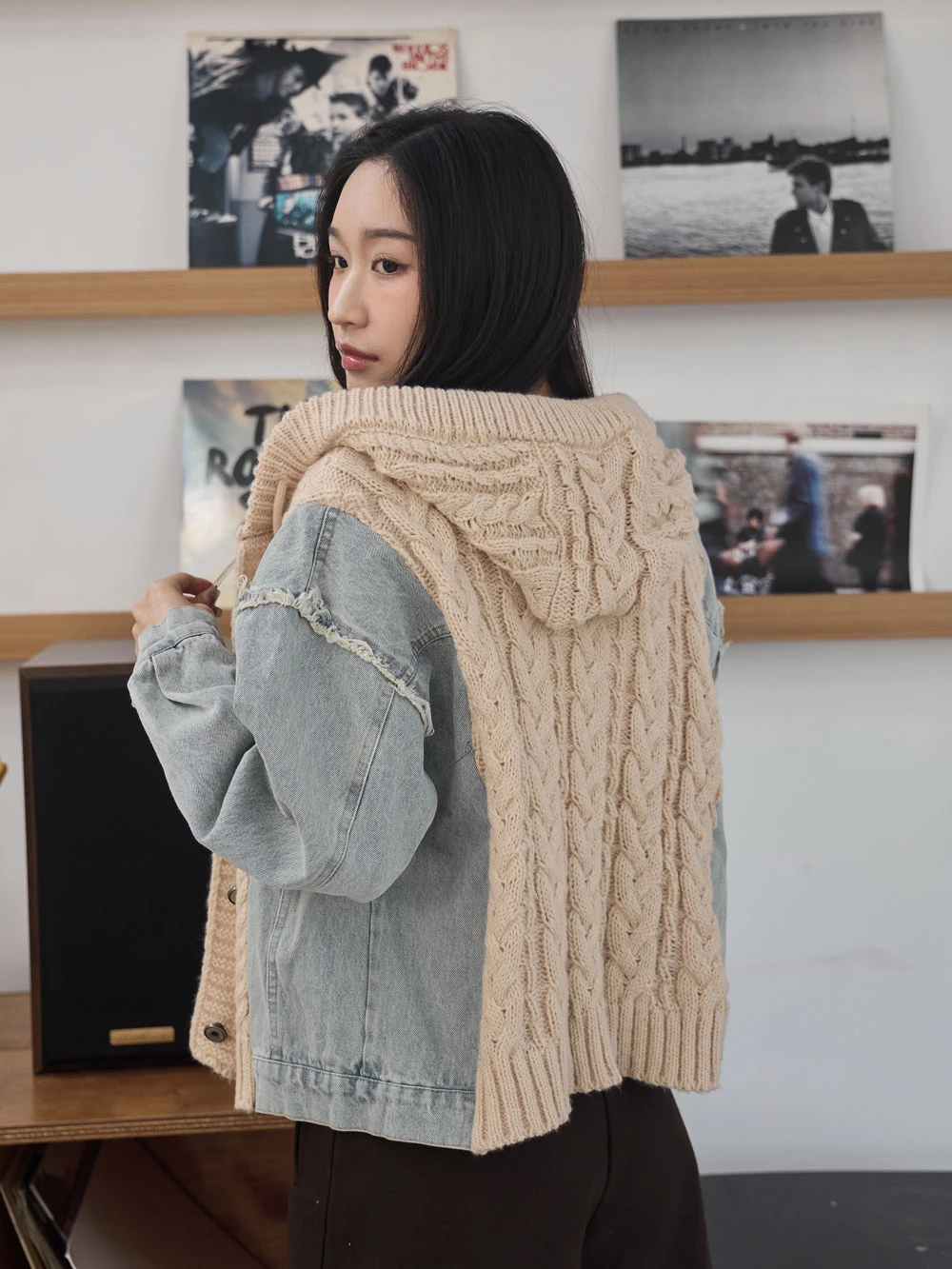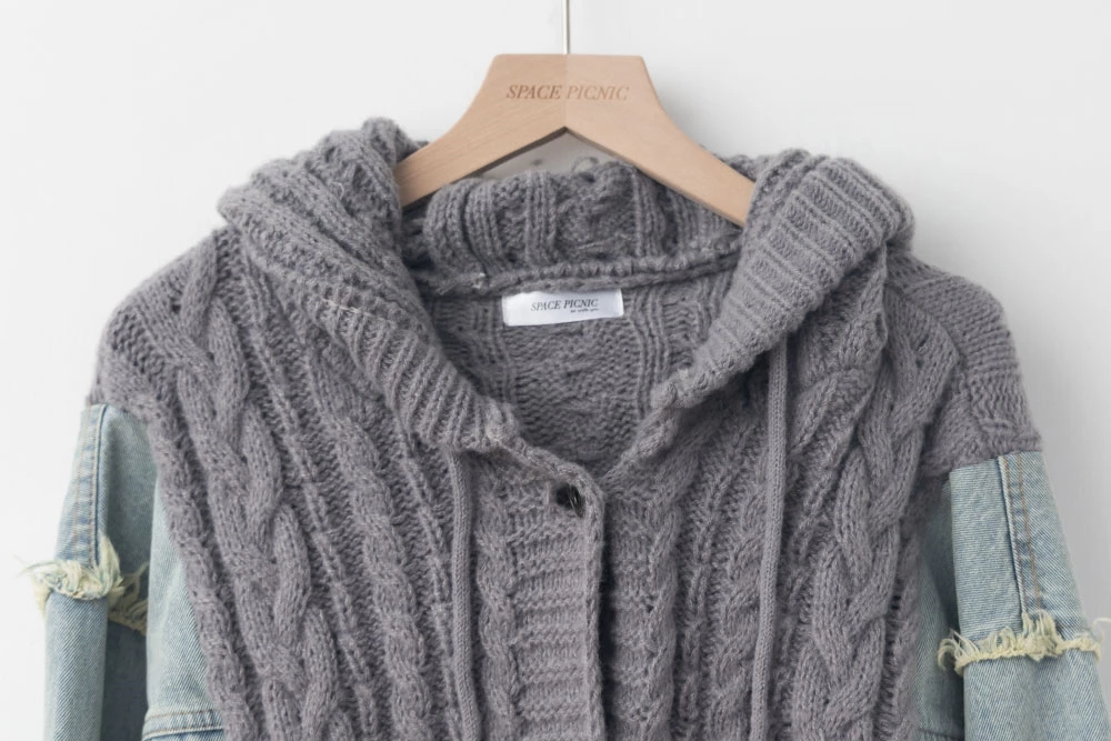 牛仔拼接針織連帽外套 | Space Picnic