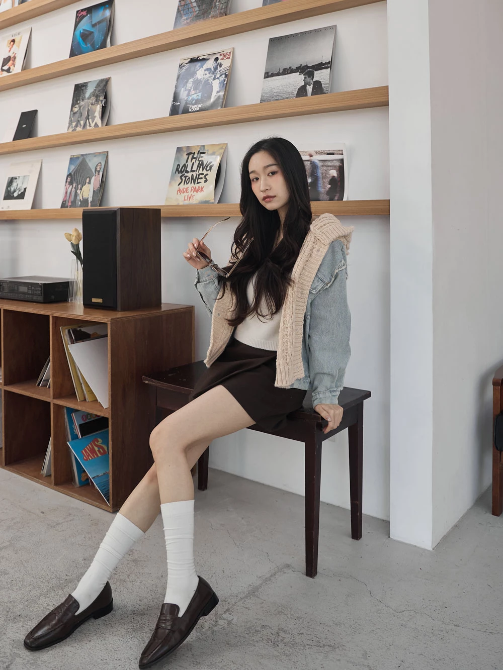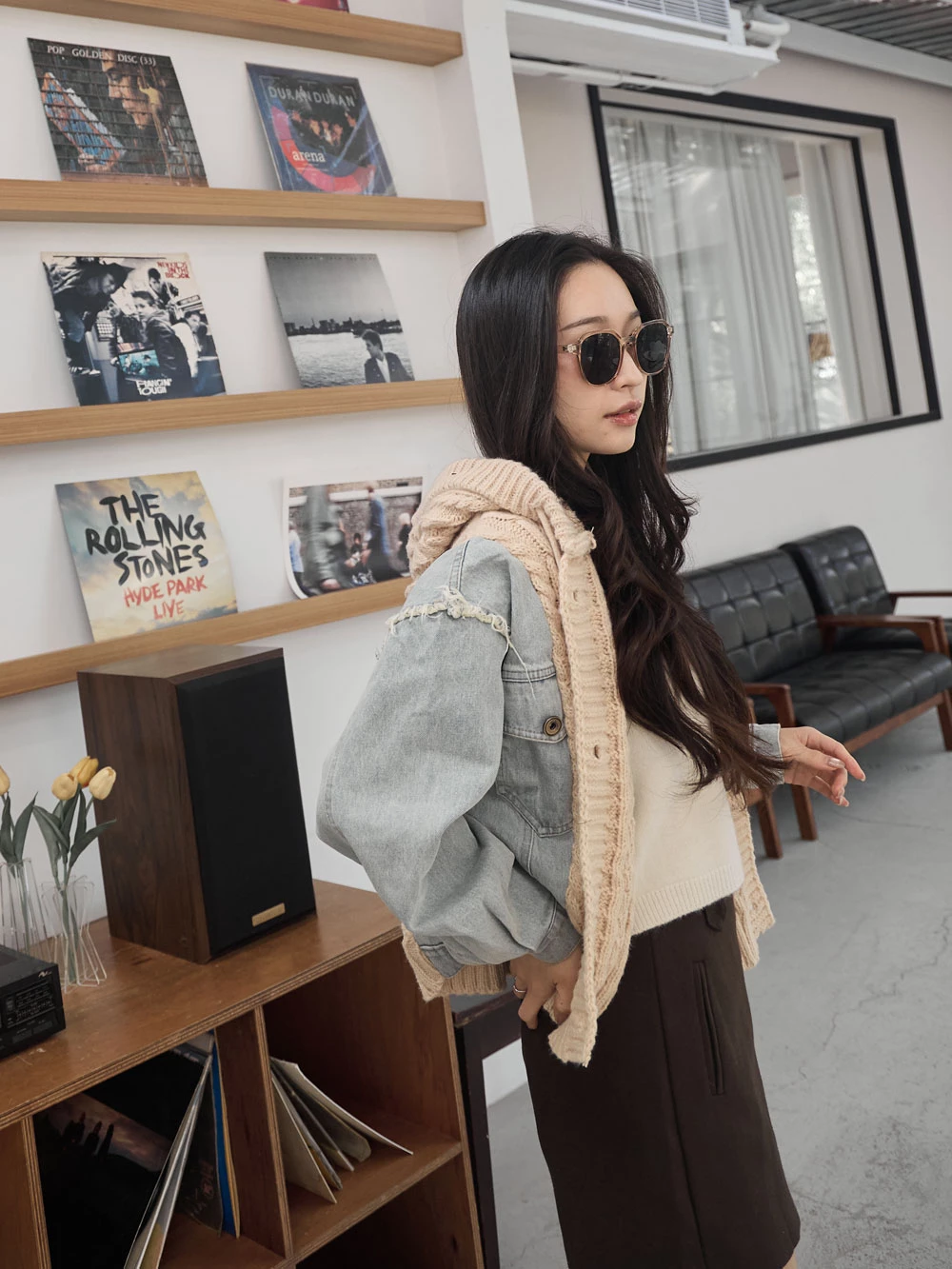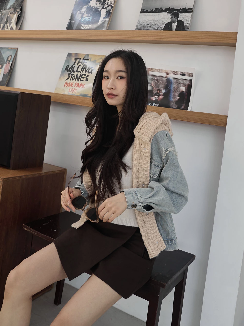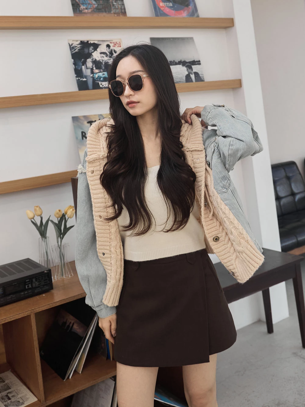 牛仔拼接針織連帽外套 | Space Picnic