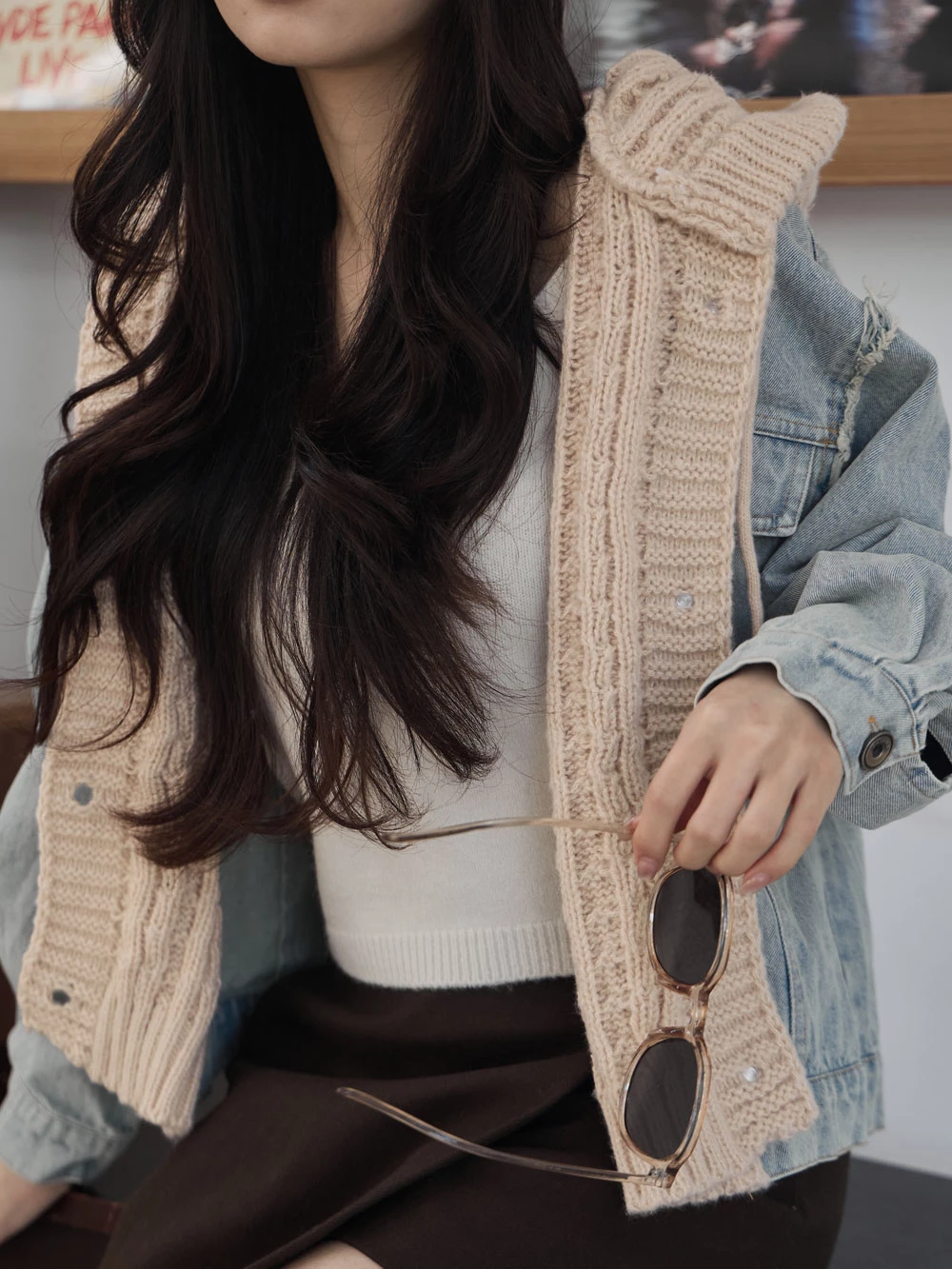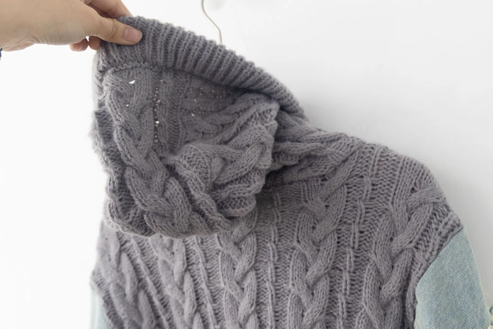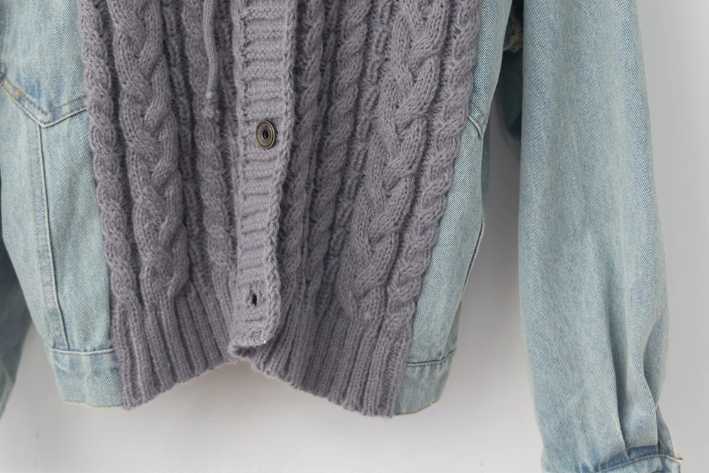 牛仔拼接針織連帽外套