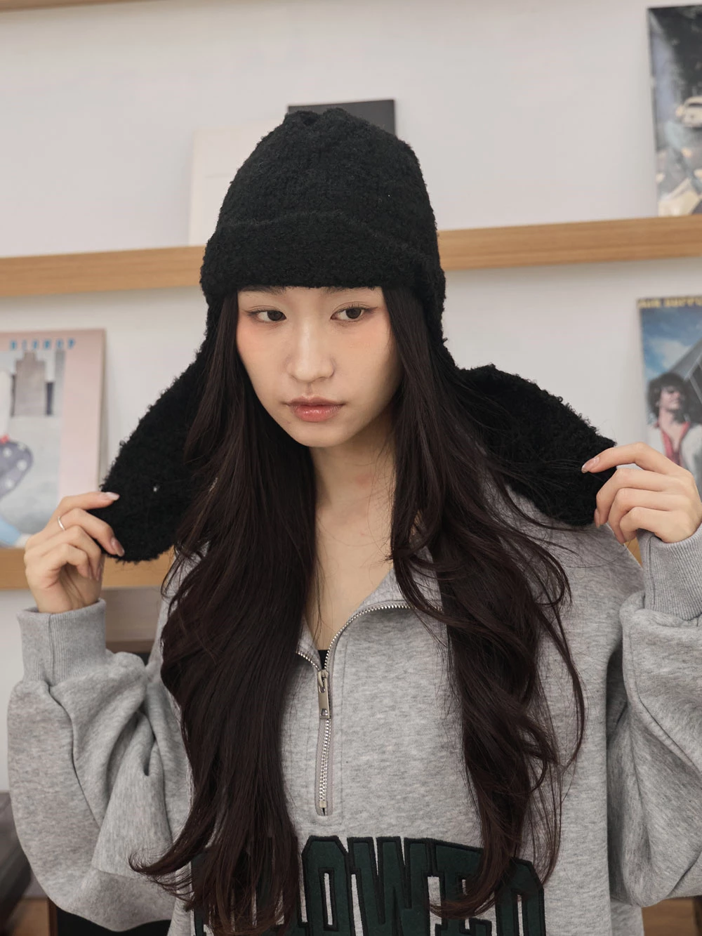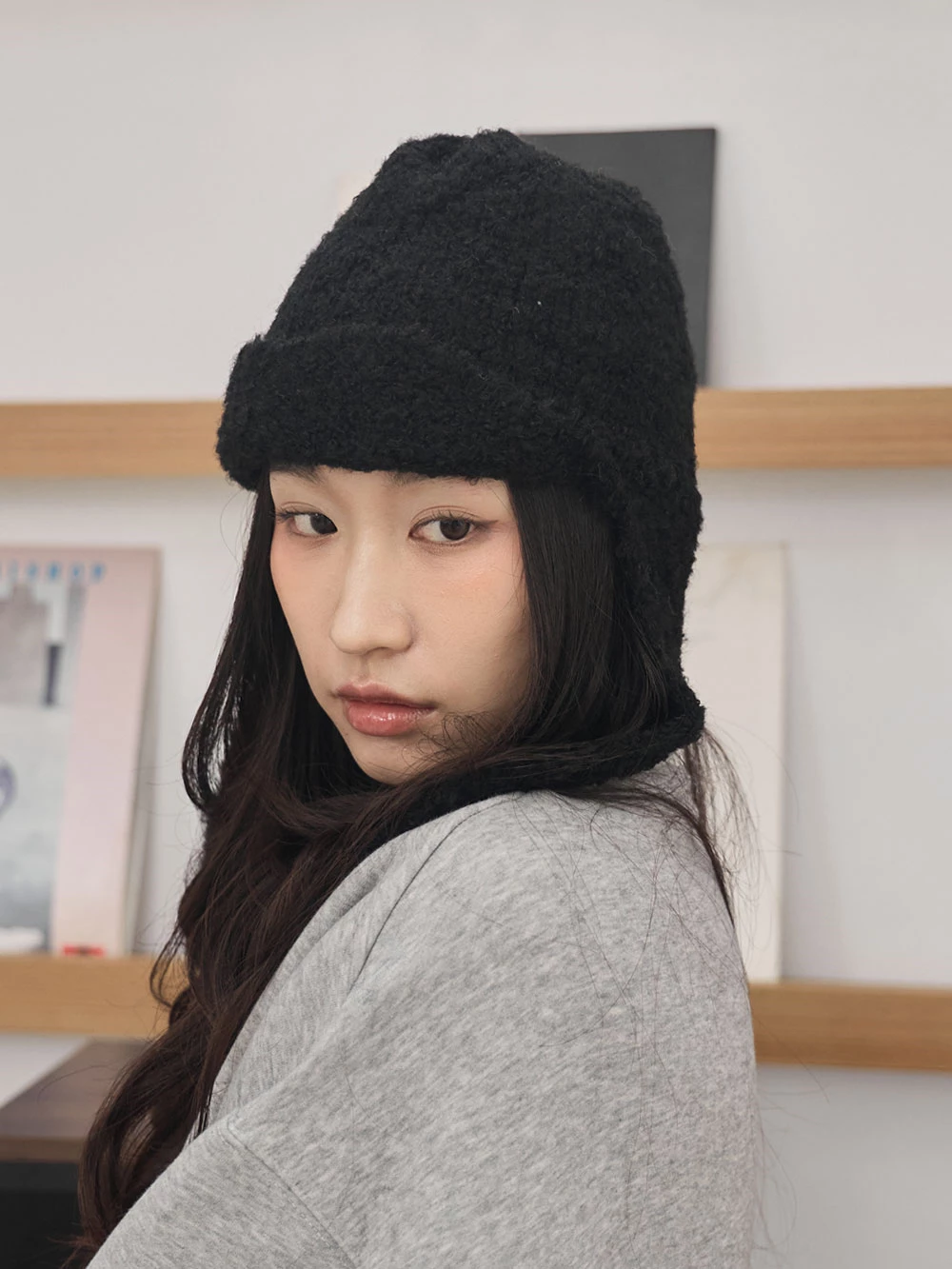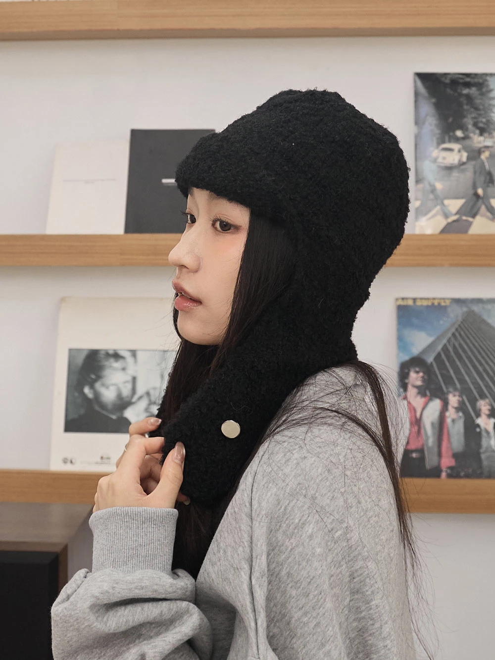 羊毛感針織護耳飛行帽