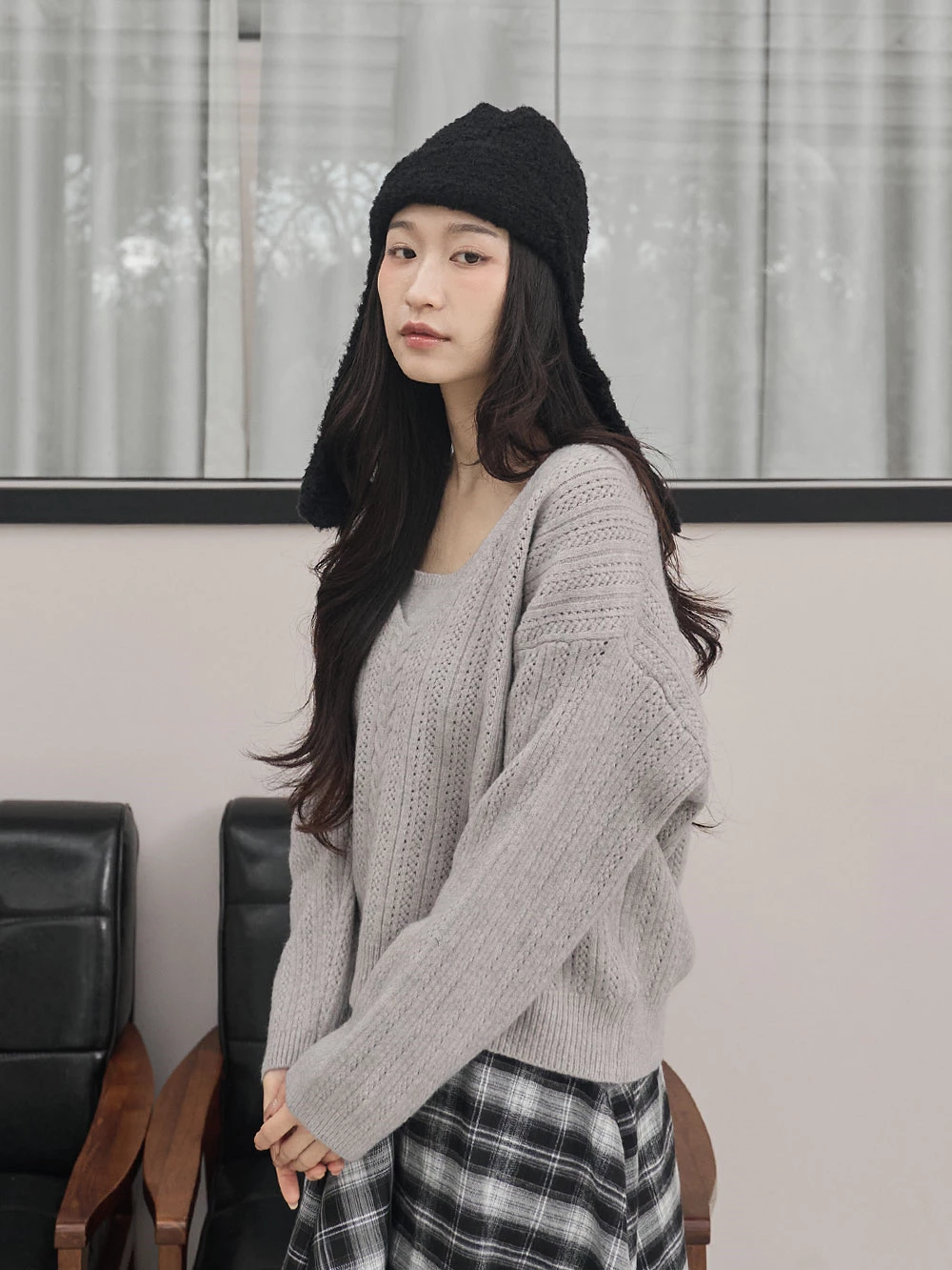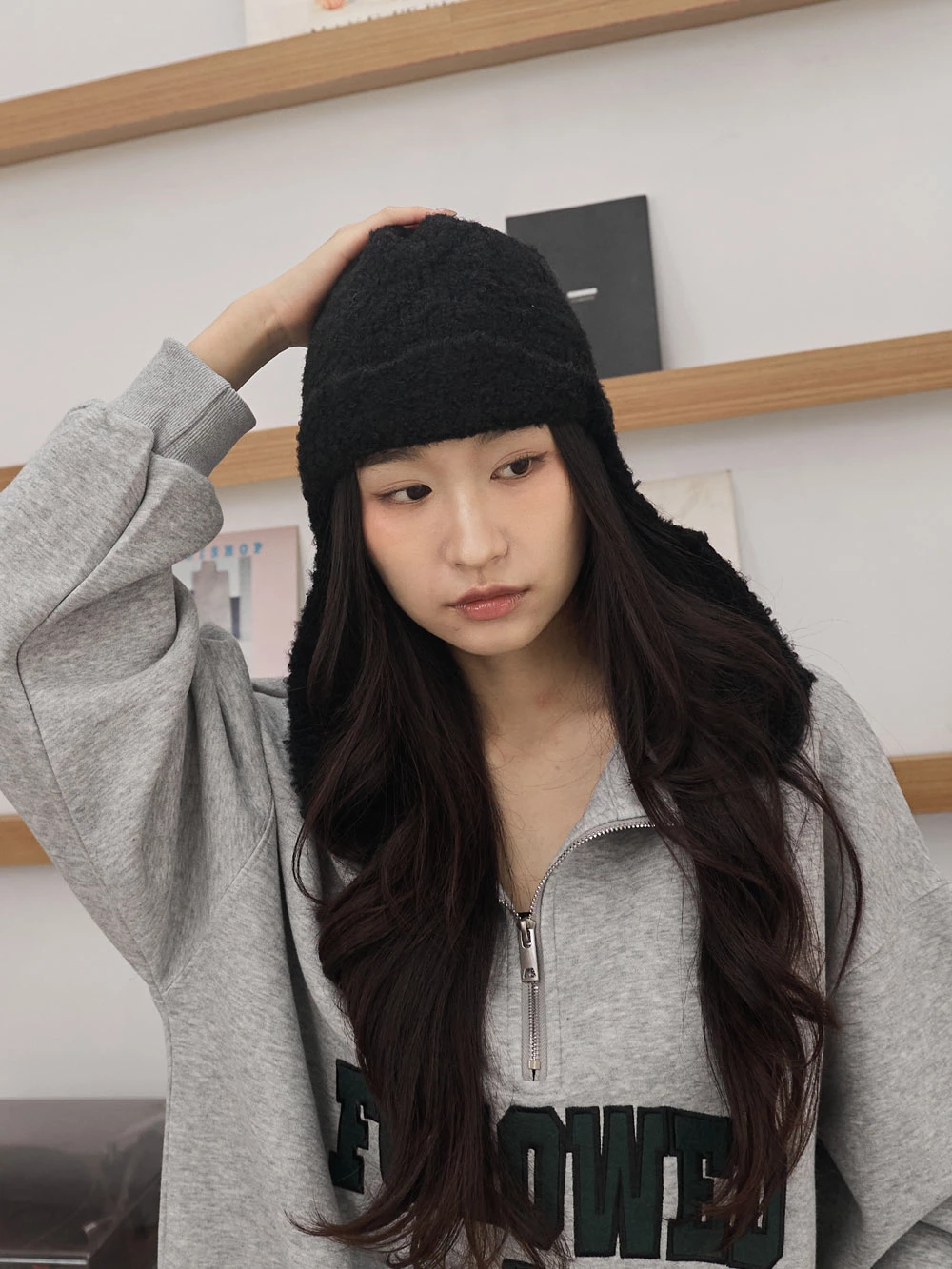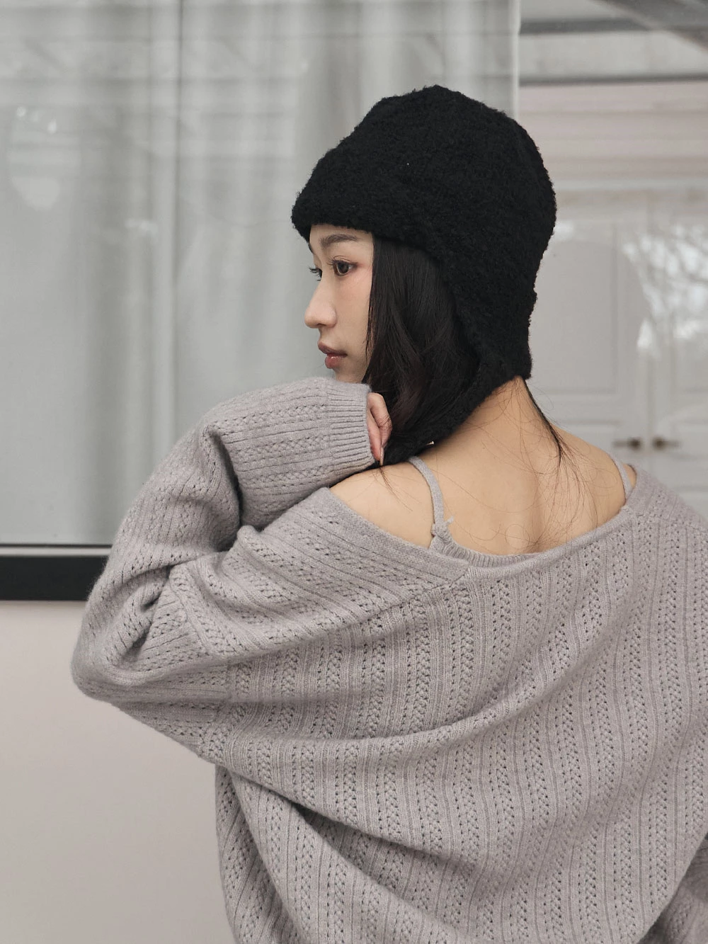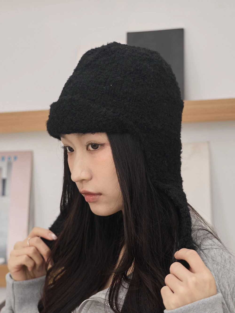 羊毛感針織護耳飛行帽