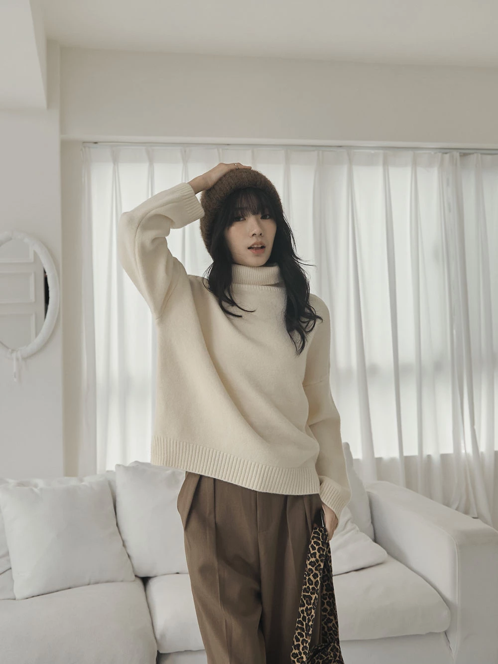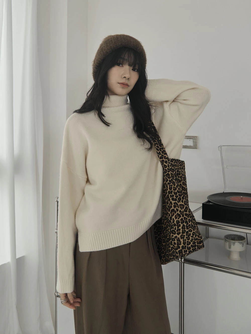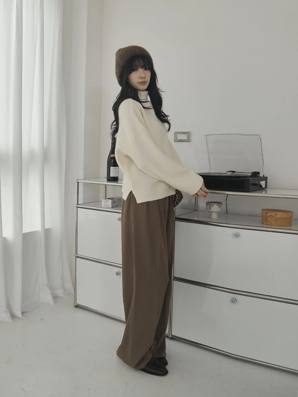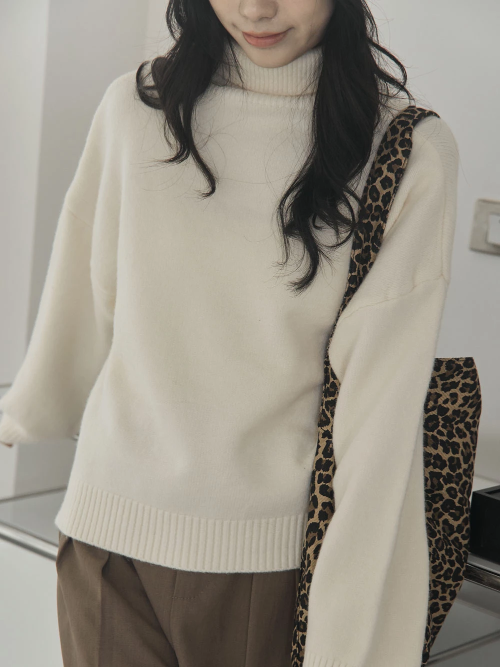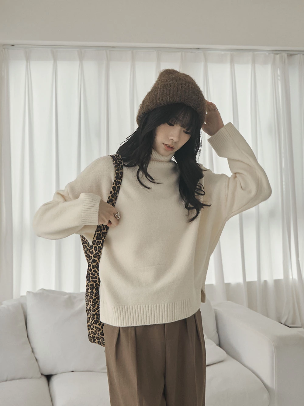 側開岔高領針織上衣