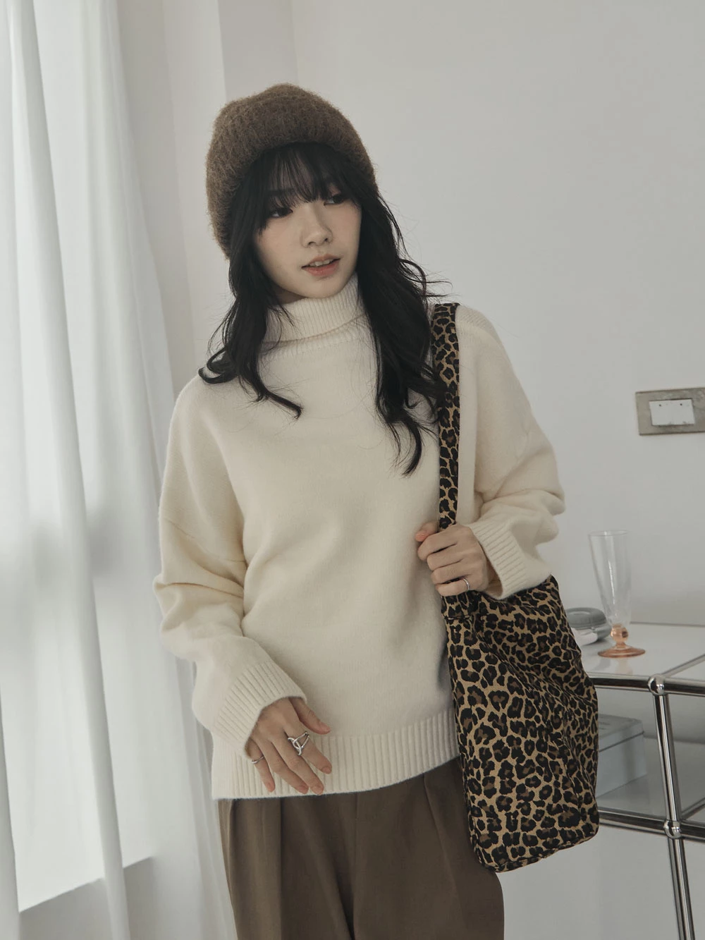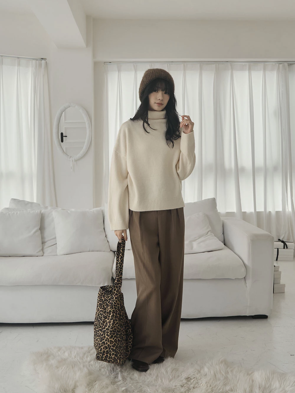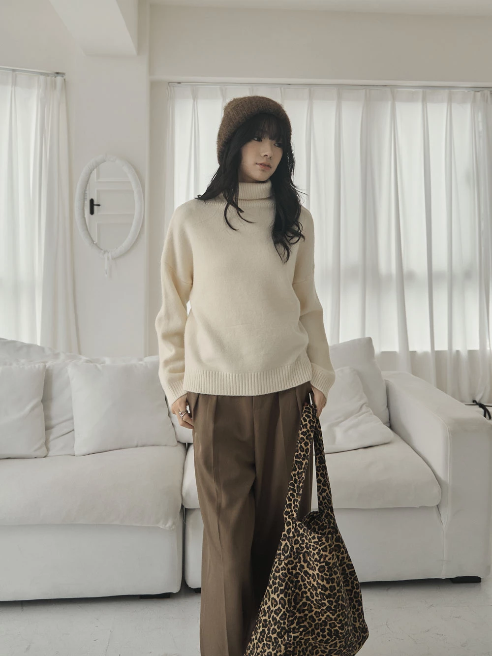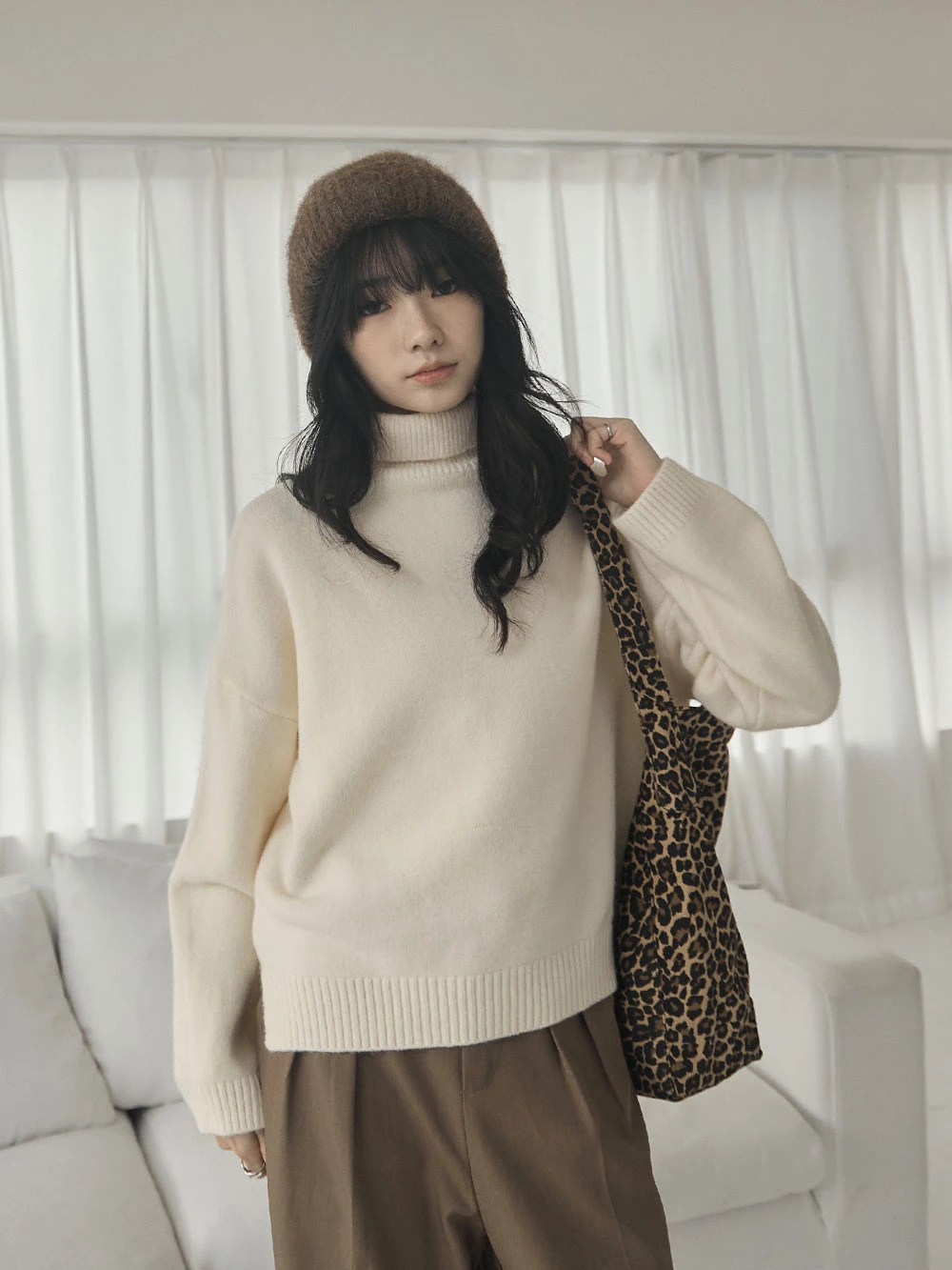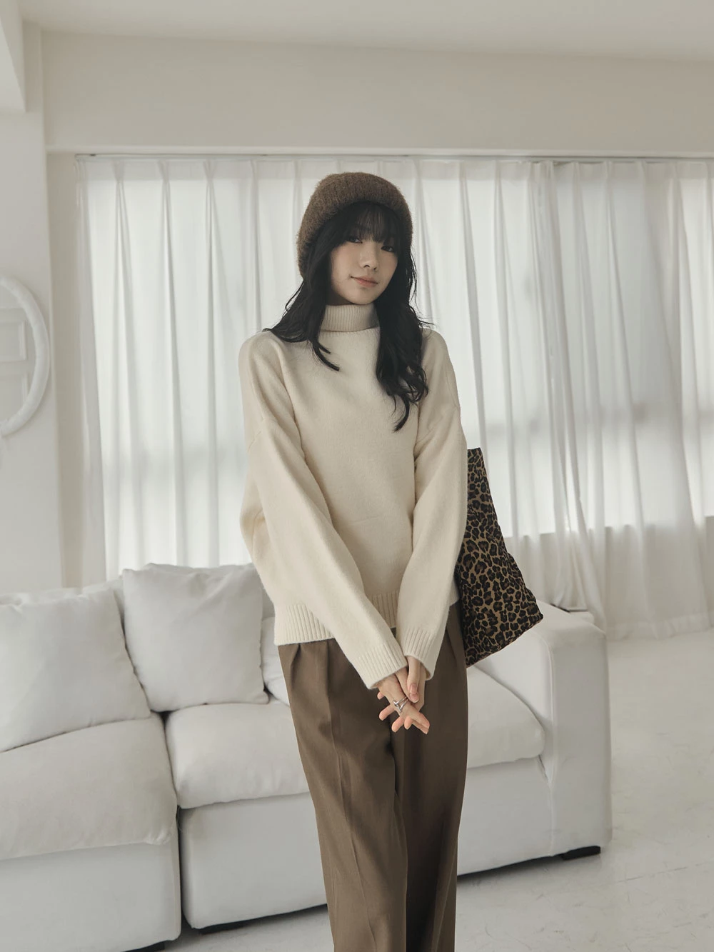 側開岔高領針織上衣