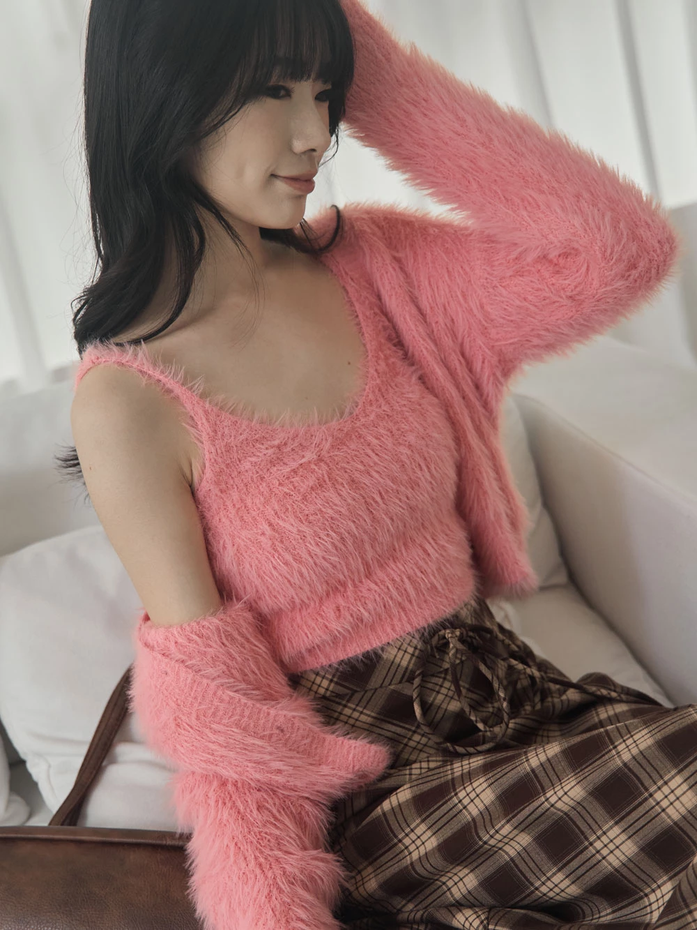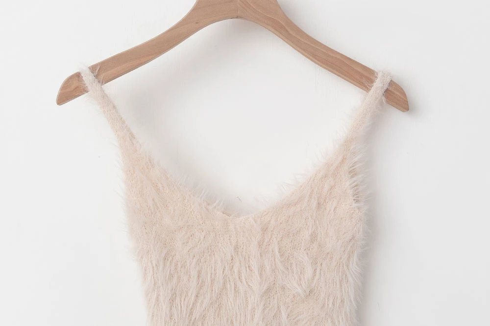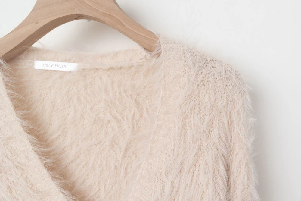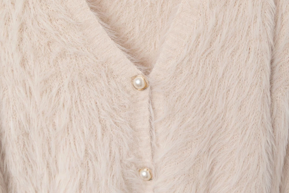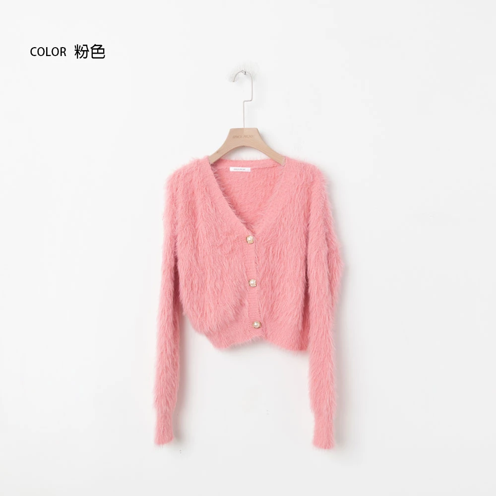 兩件式-水貂毛針織背心+珍珠釦外套