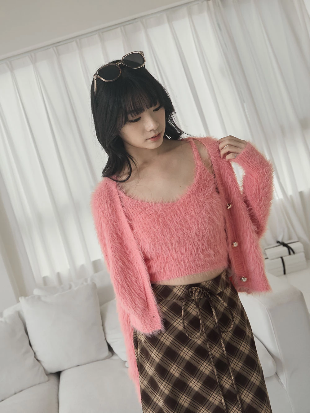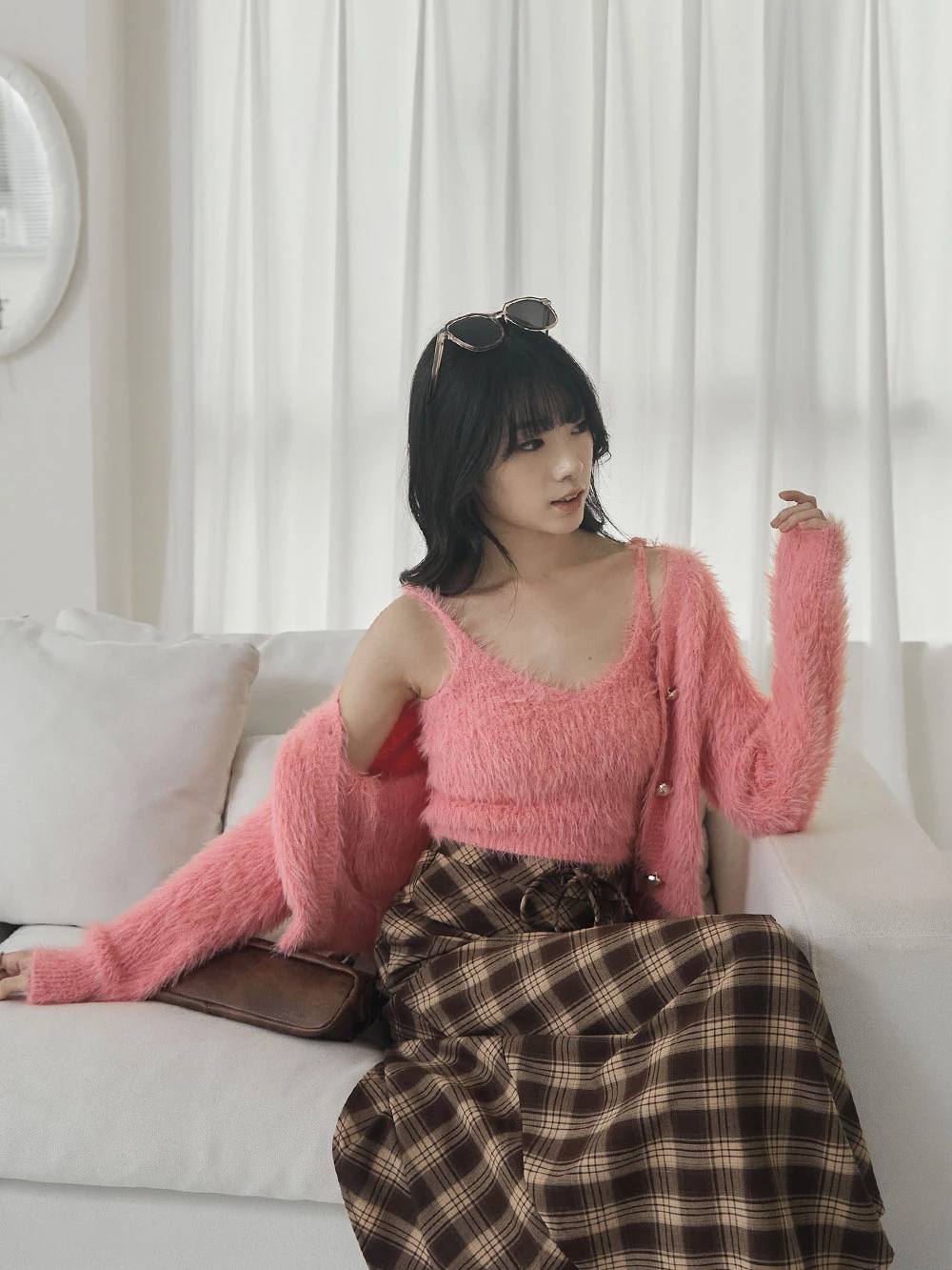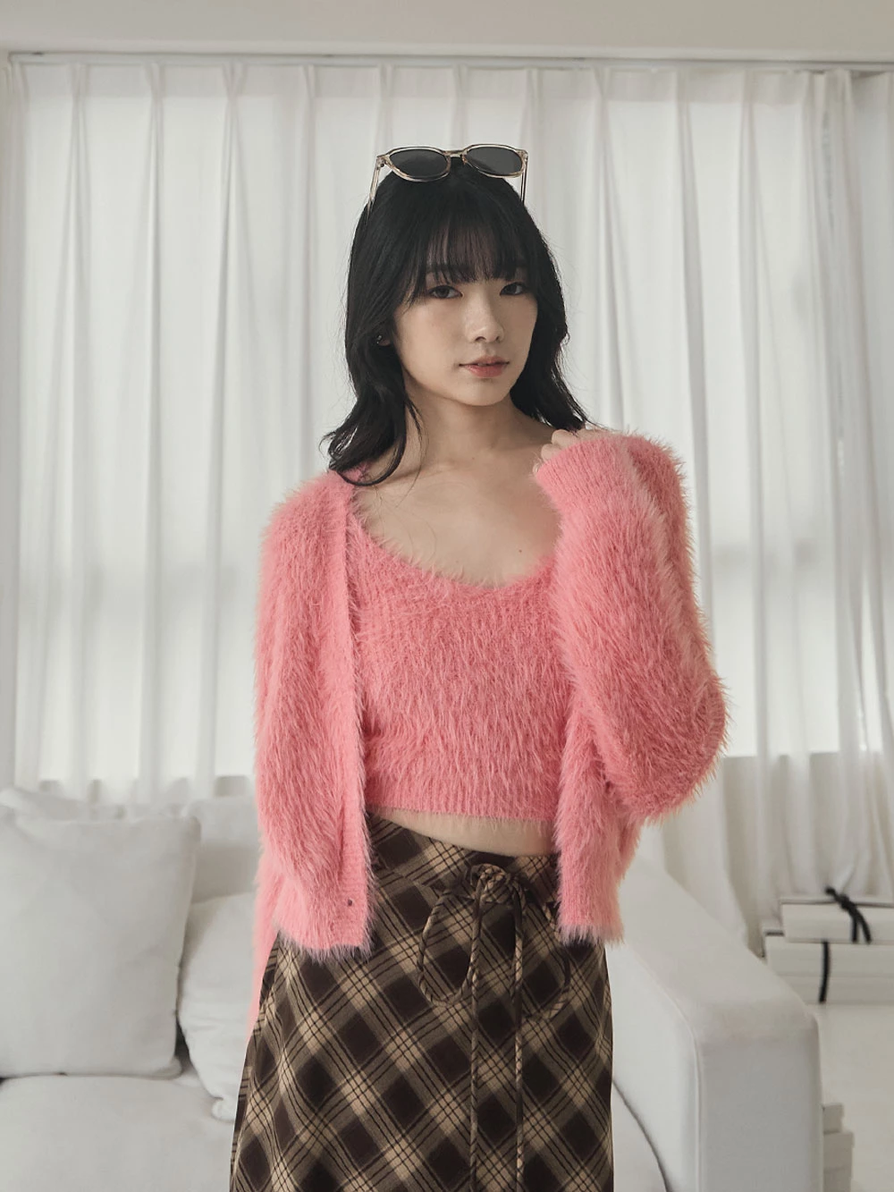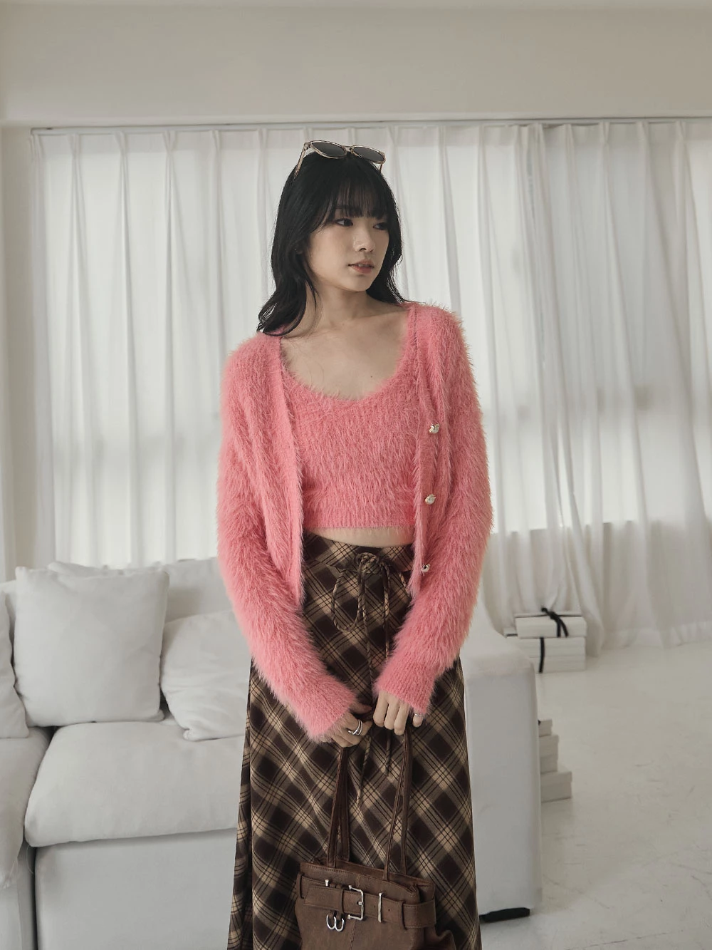 兩件式-水貂毛針織背心+珍珠釦外套