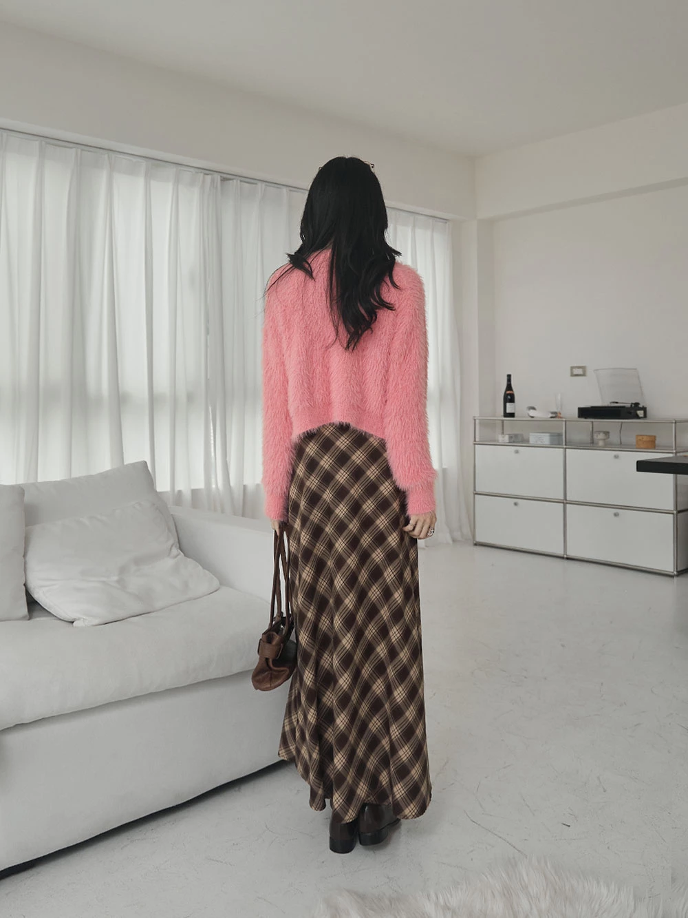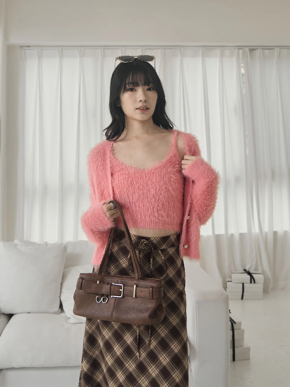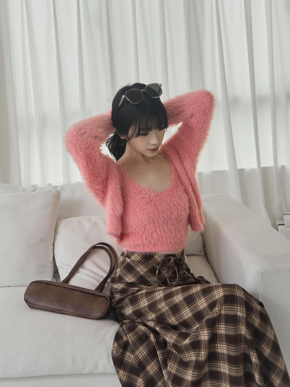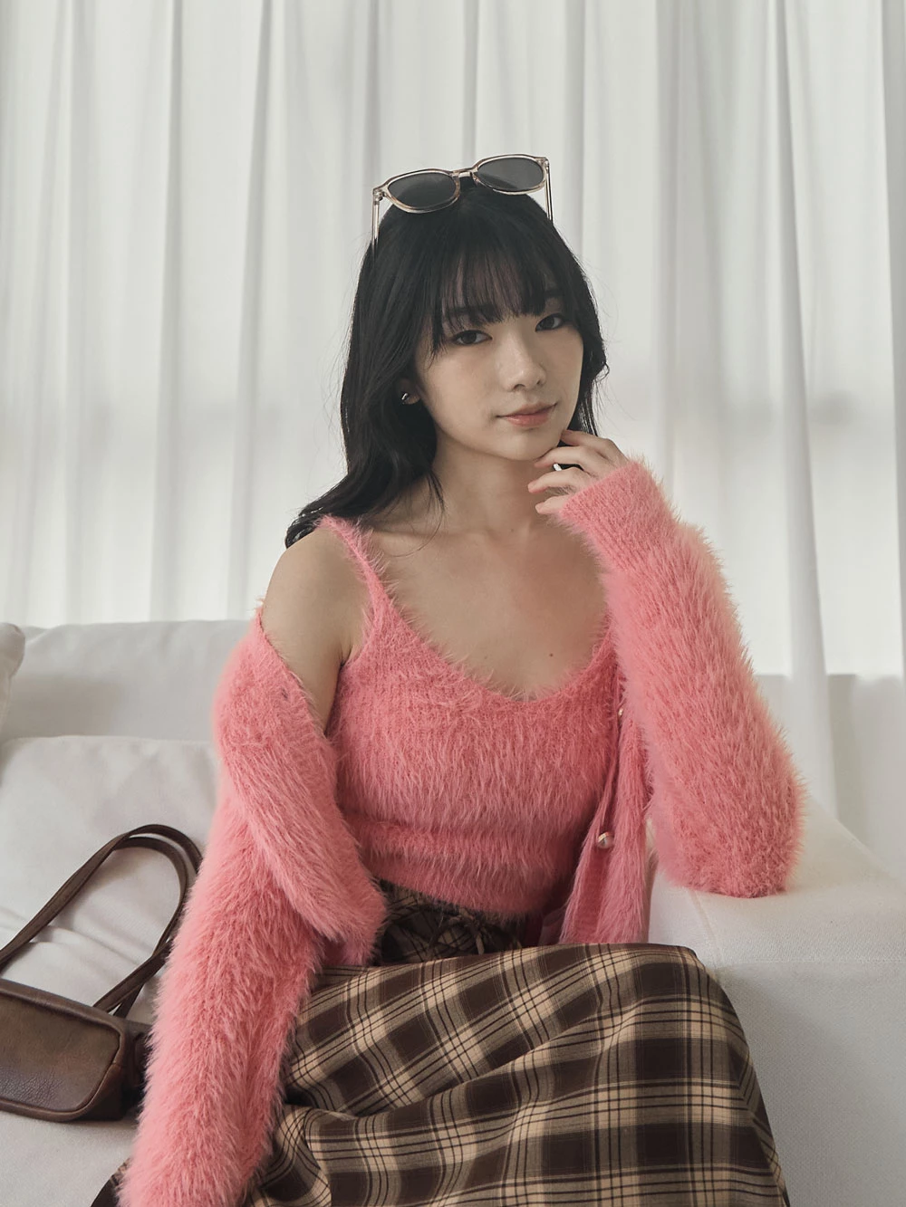 兩件式-水貂毛針織背心+珍珠釦外套