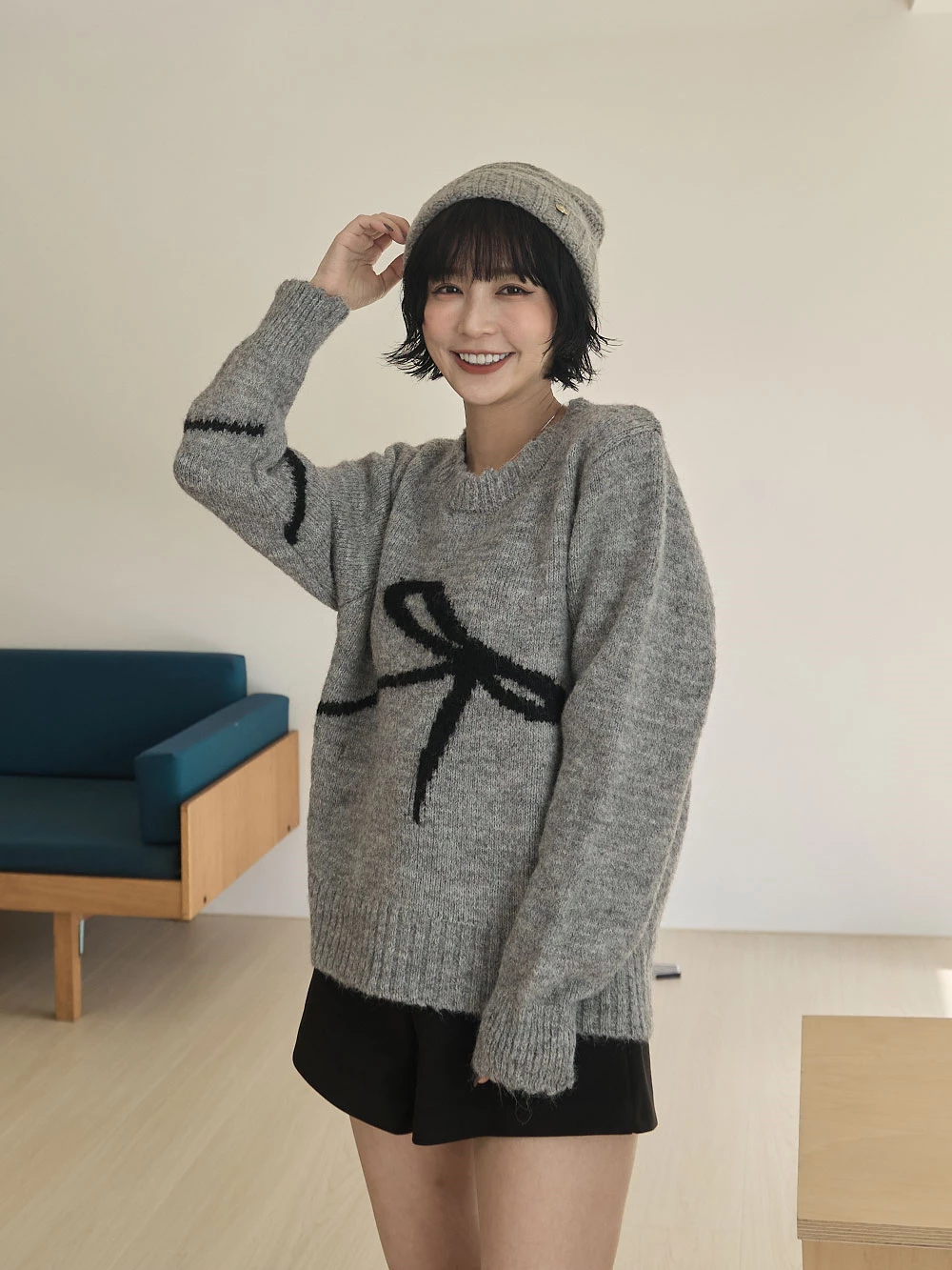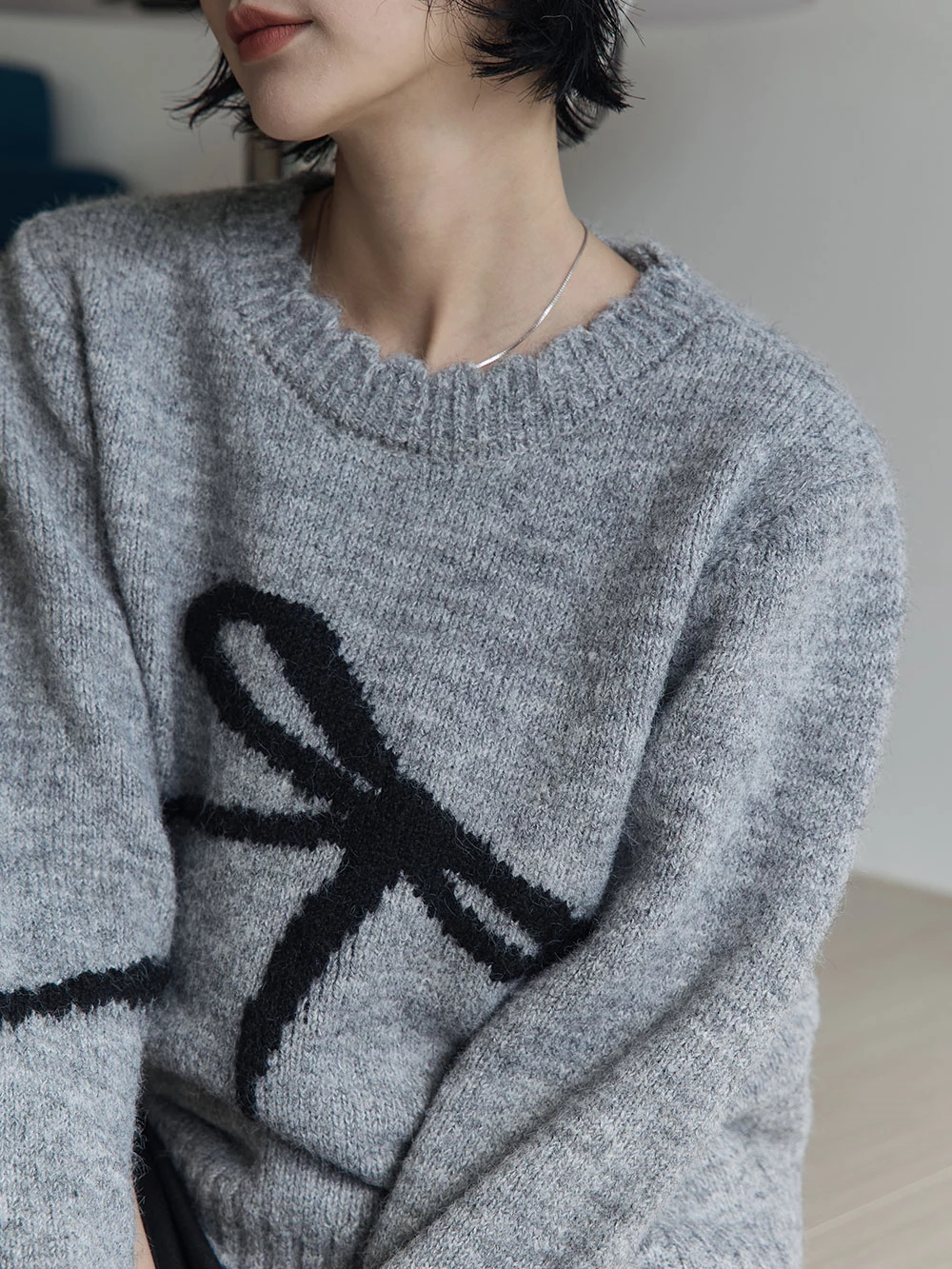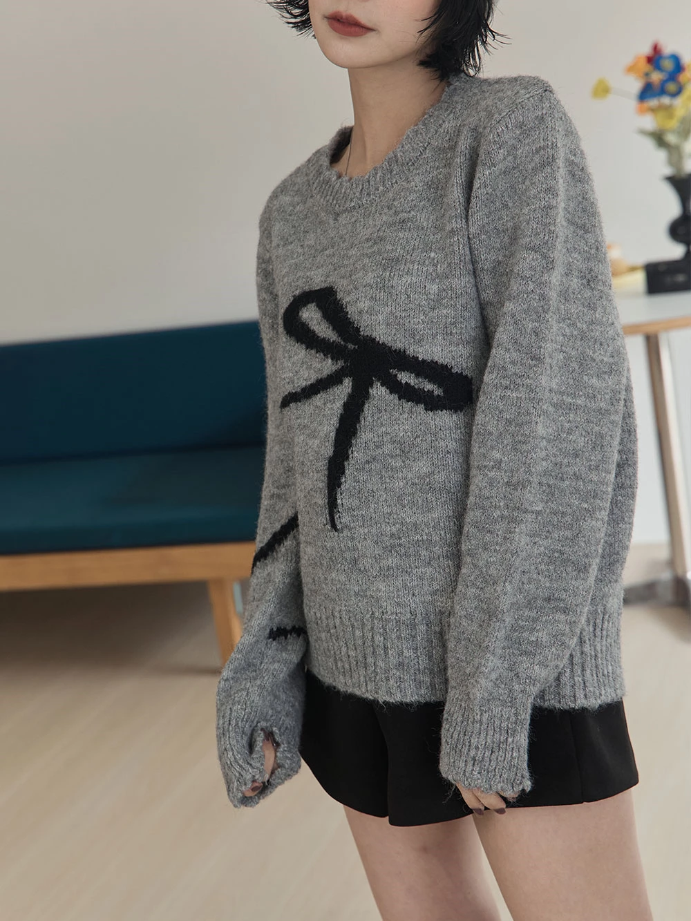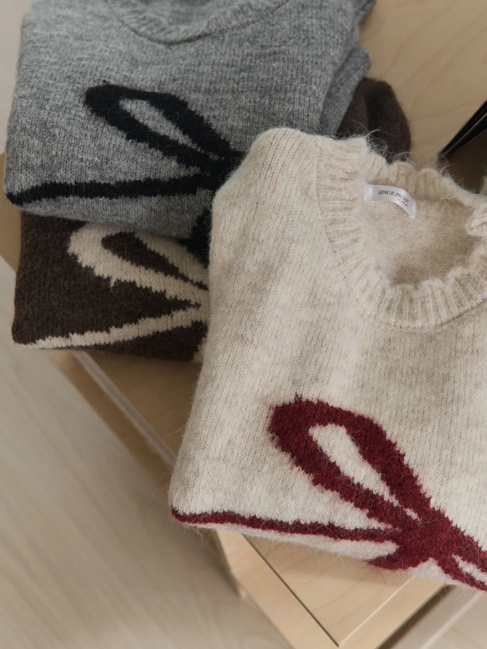蝴蝶結印圖針織上衣