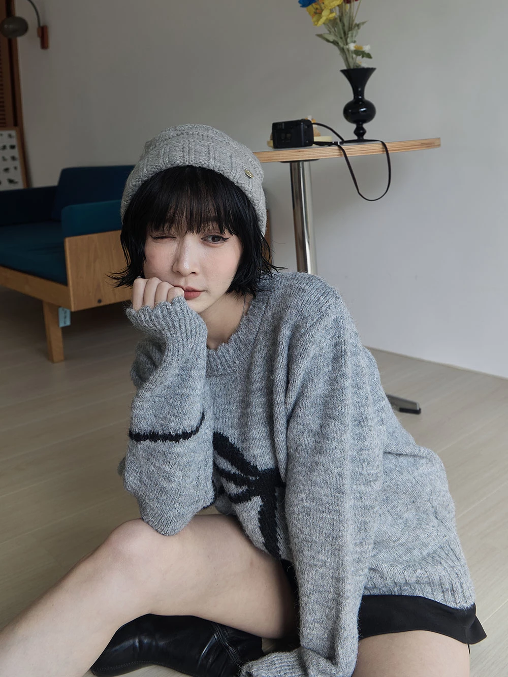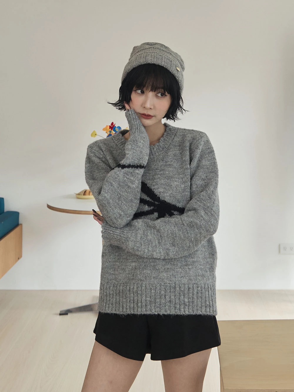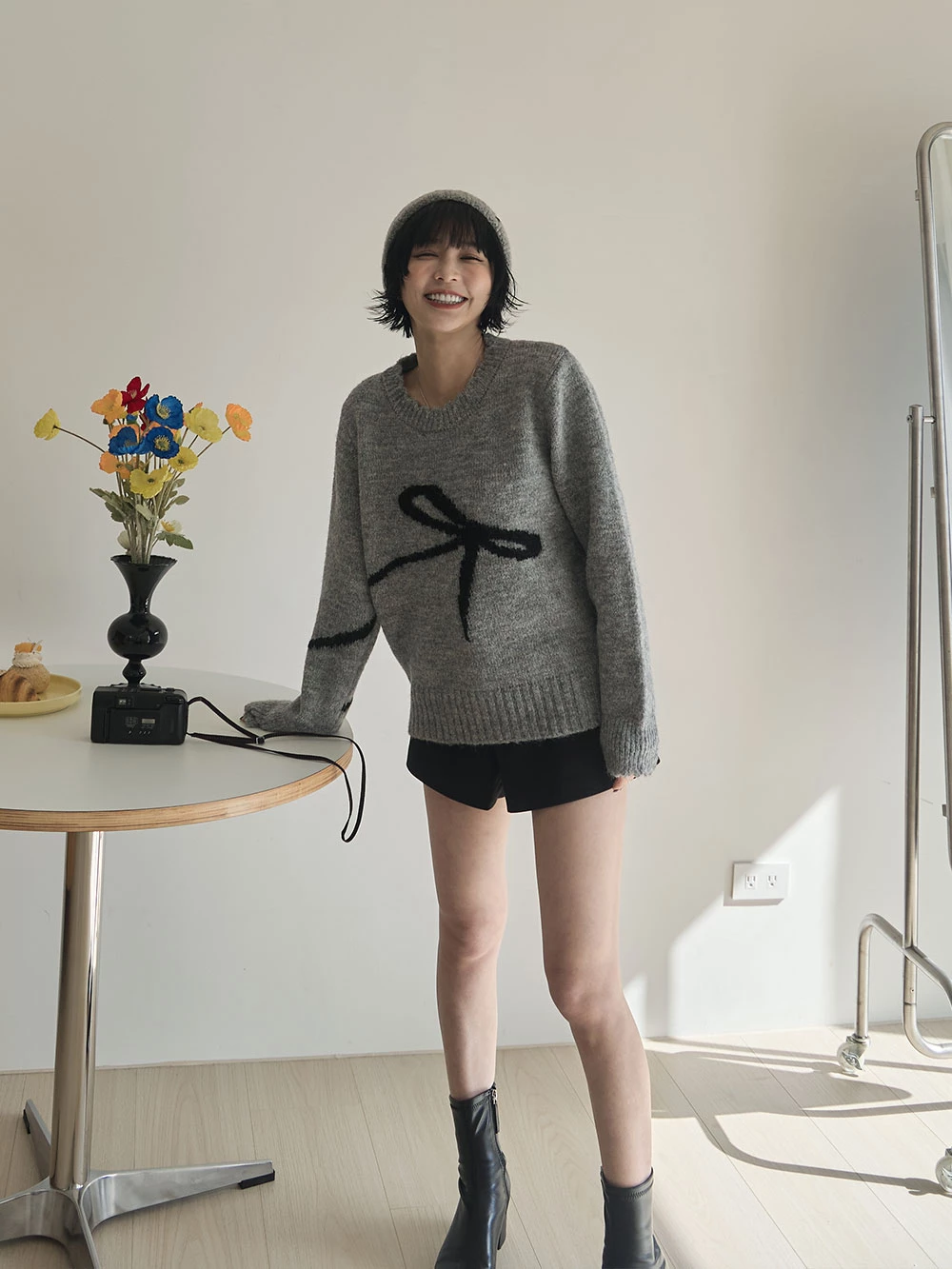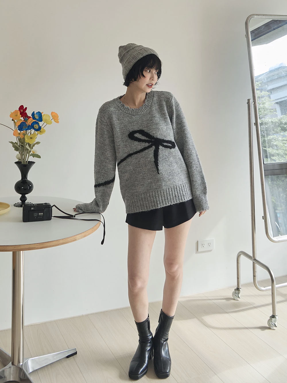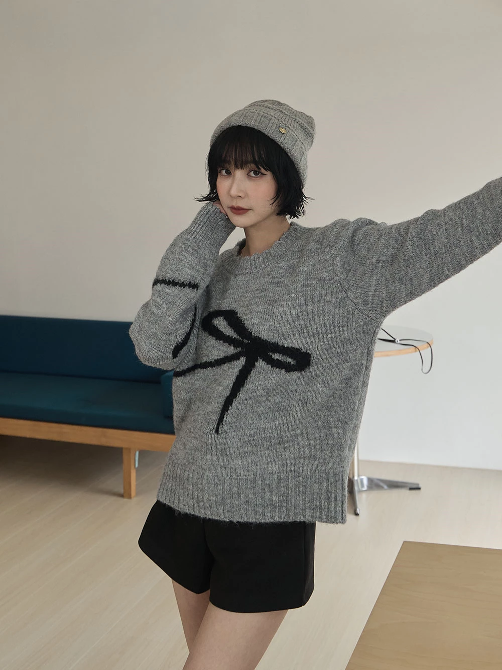 蝴蝶結印圖針織上衣
