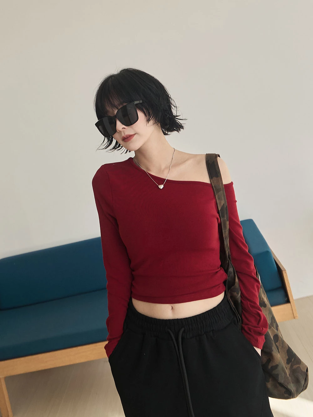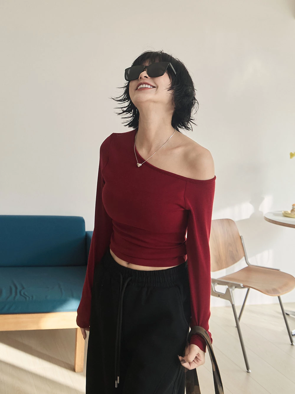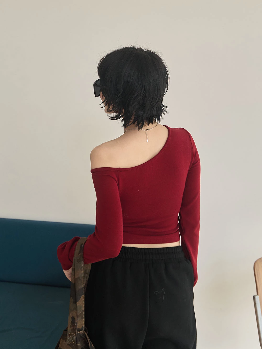 不對稱斜肩極彈胸墊上衣 | Space Picnic