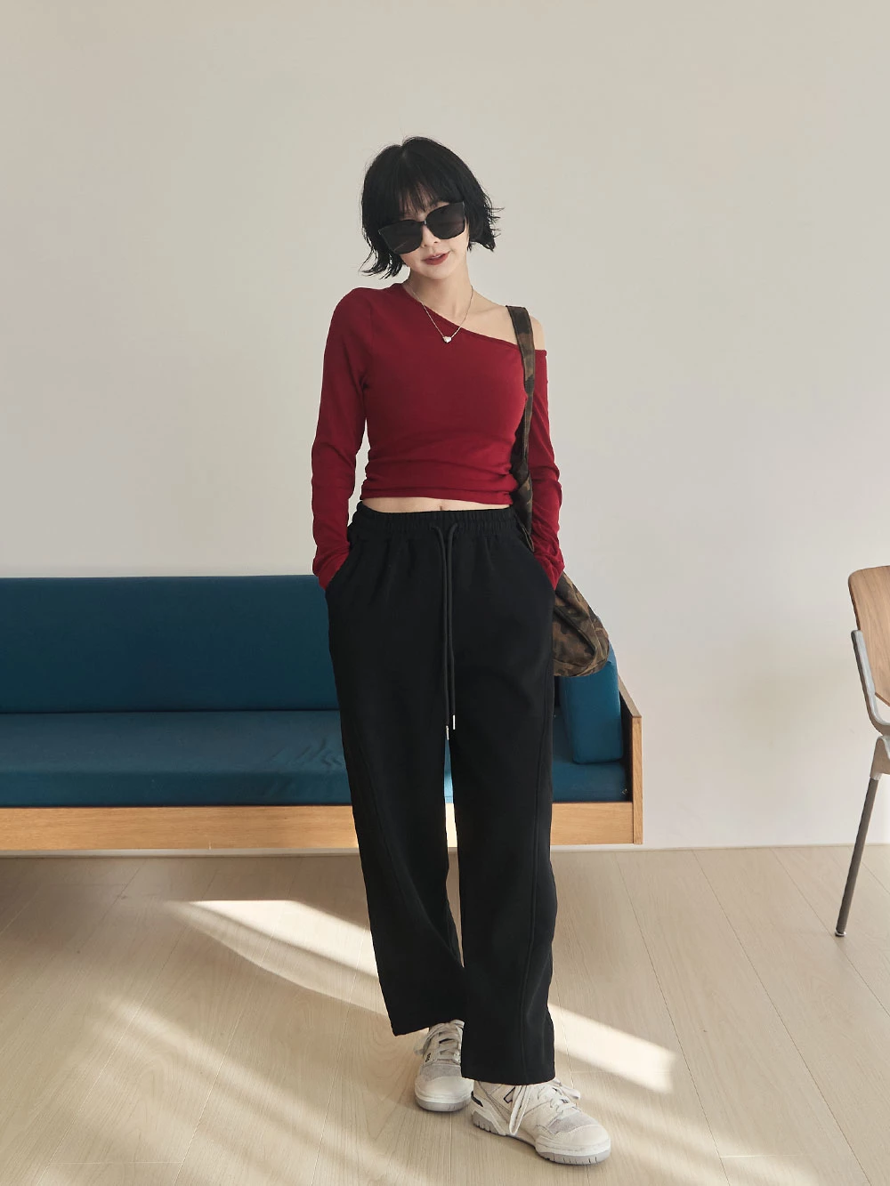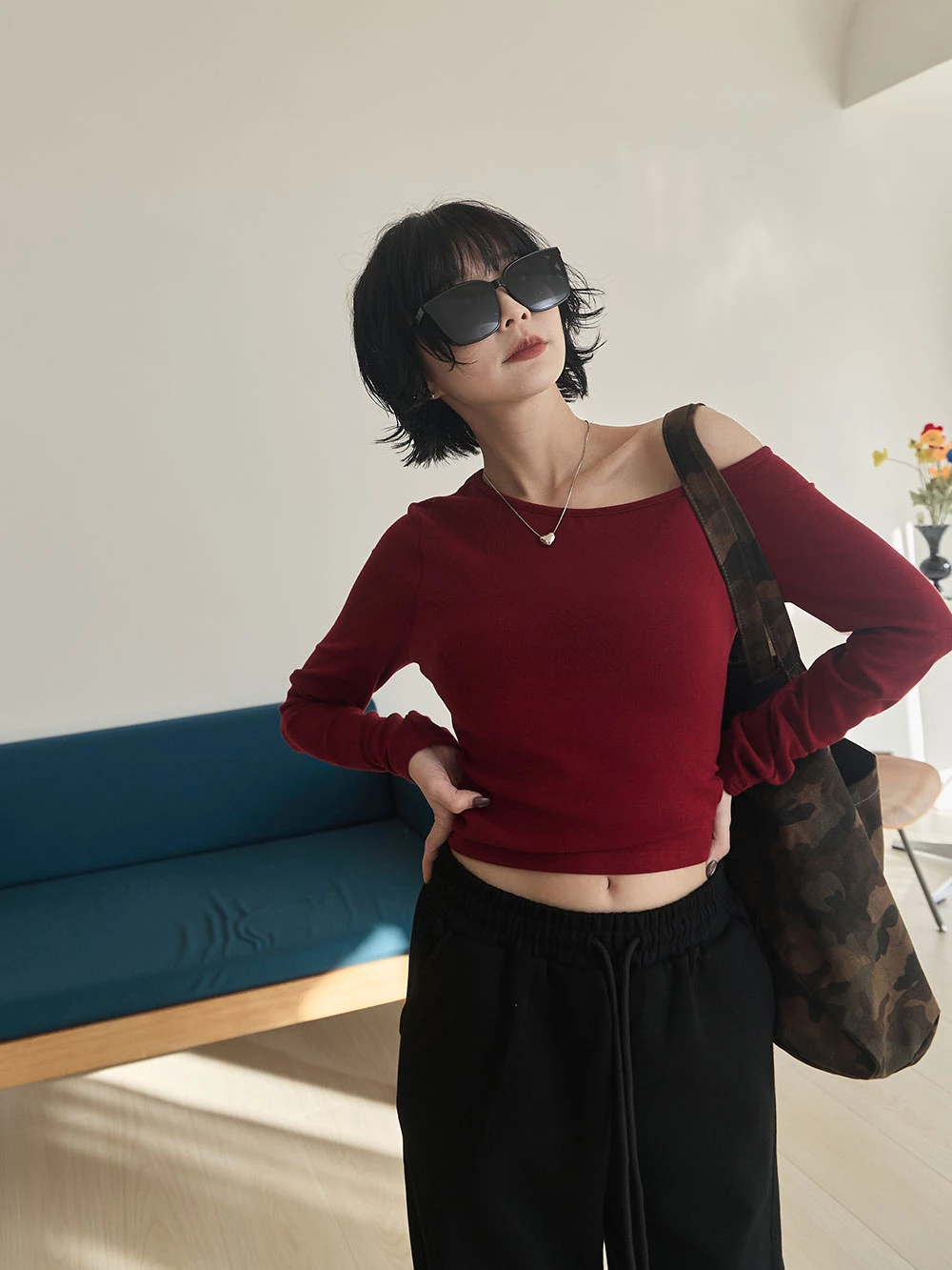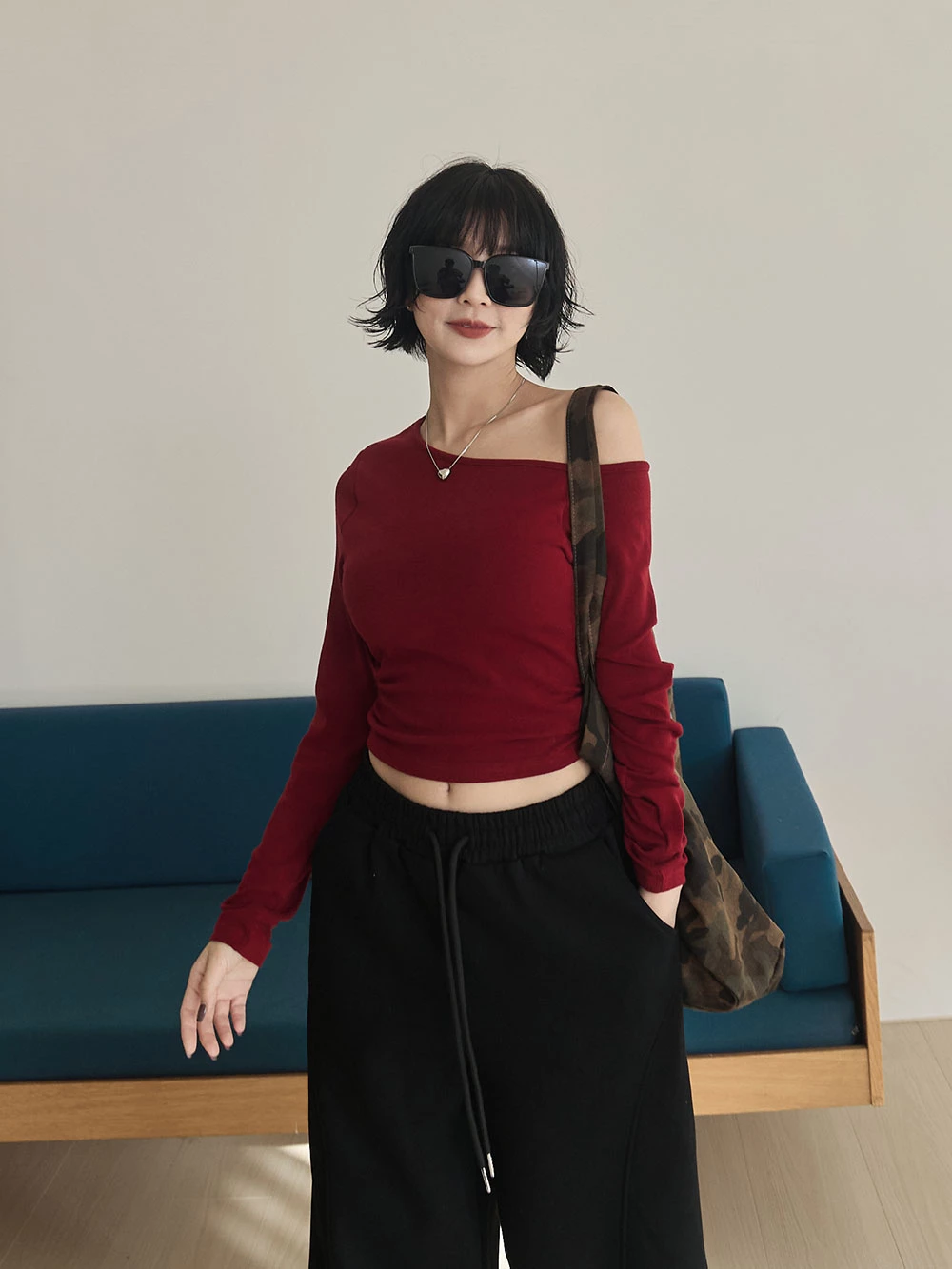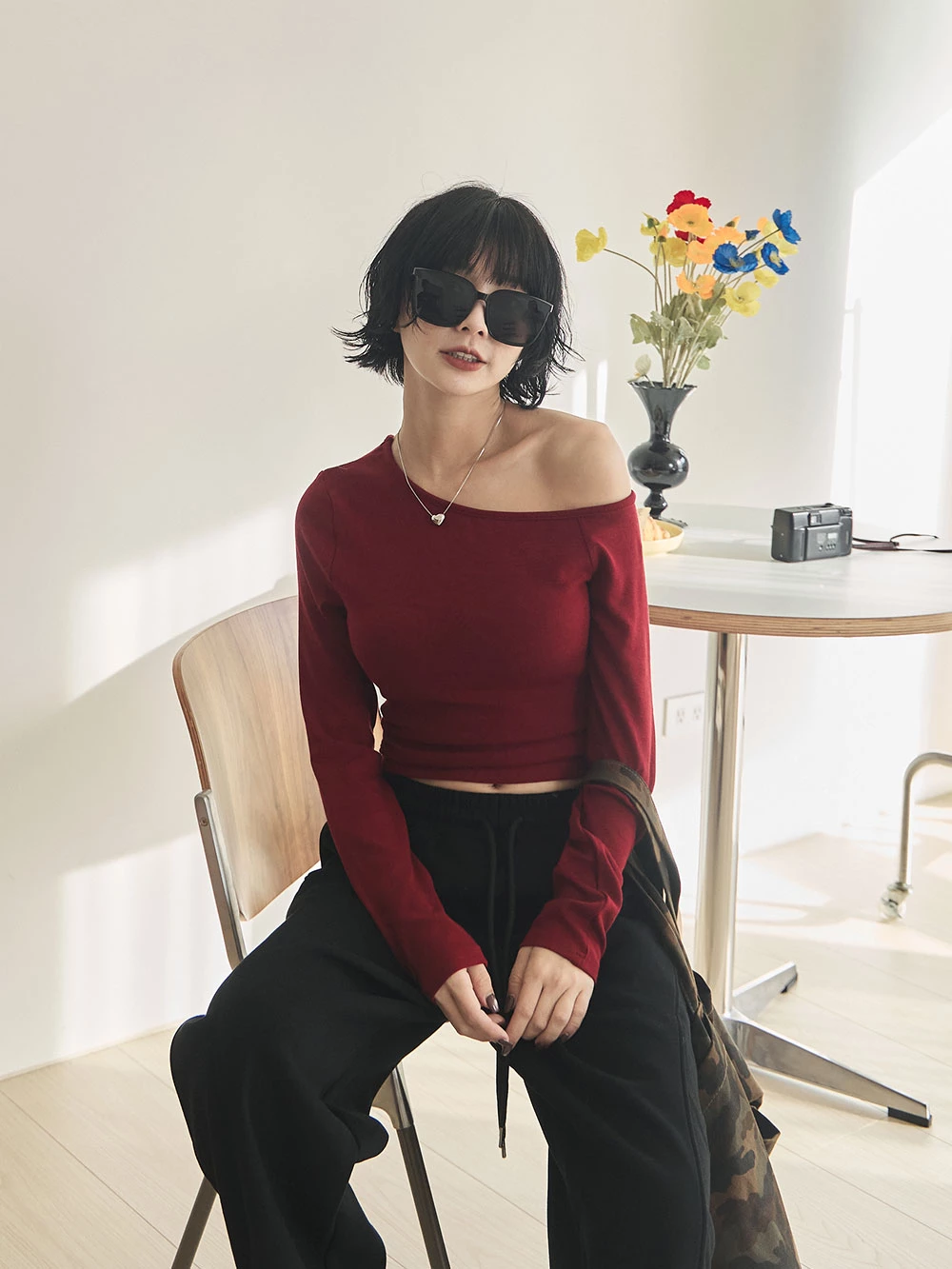 不對稱斜肩極彈胸墊上衣 | Space Picnic