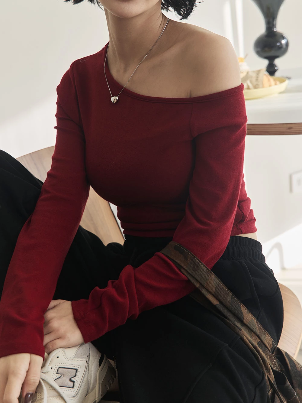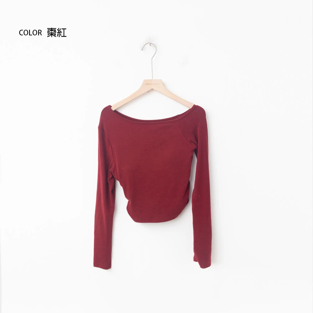 不對稱斜肩極彈胸墊上衣