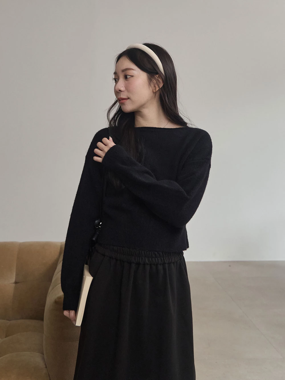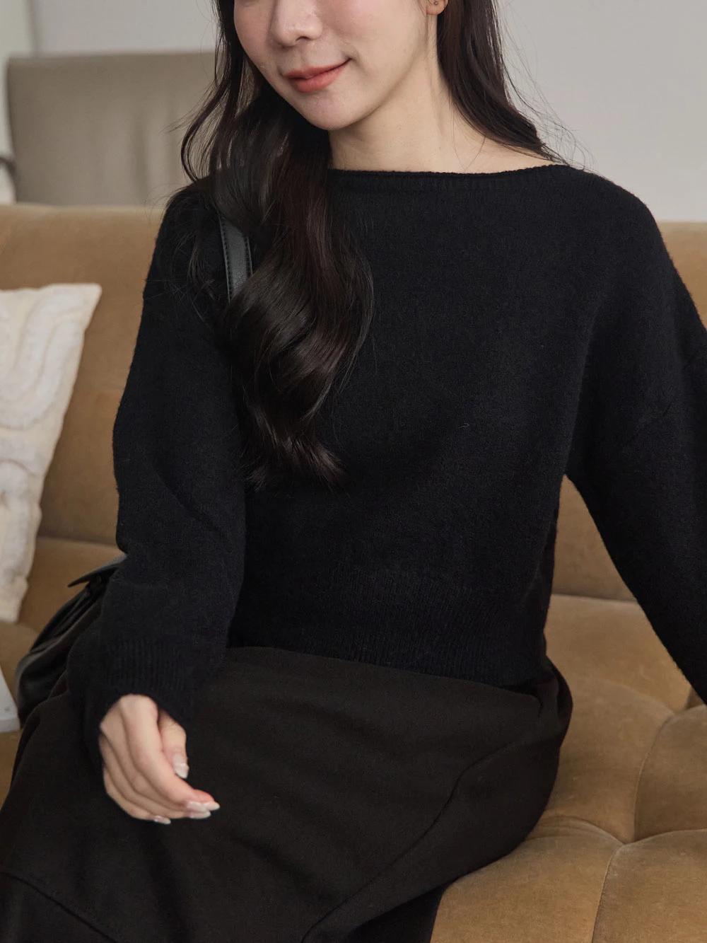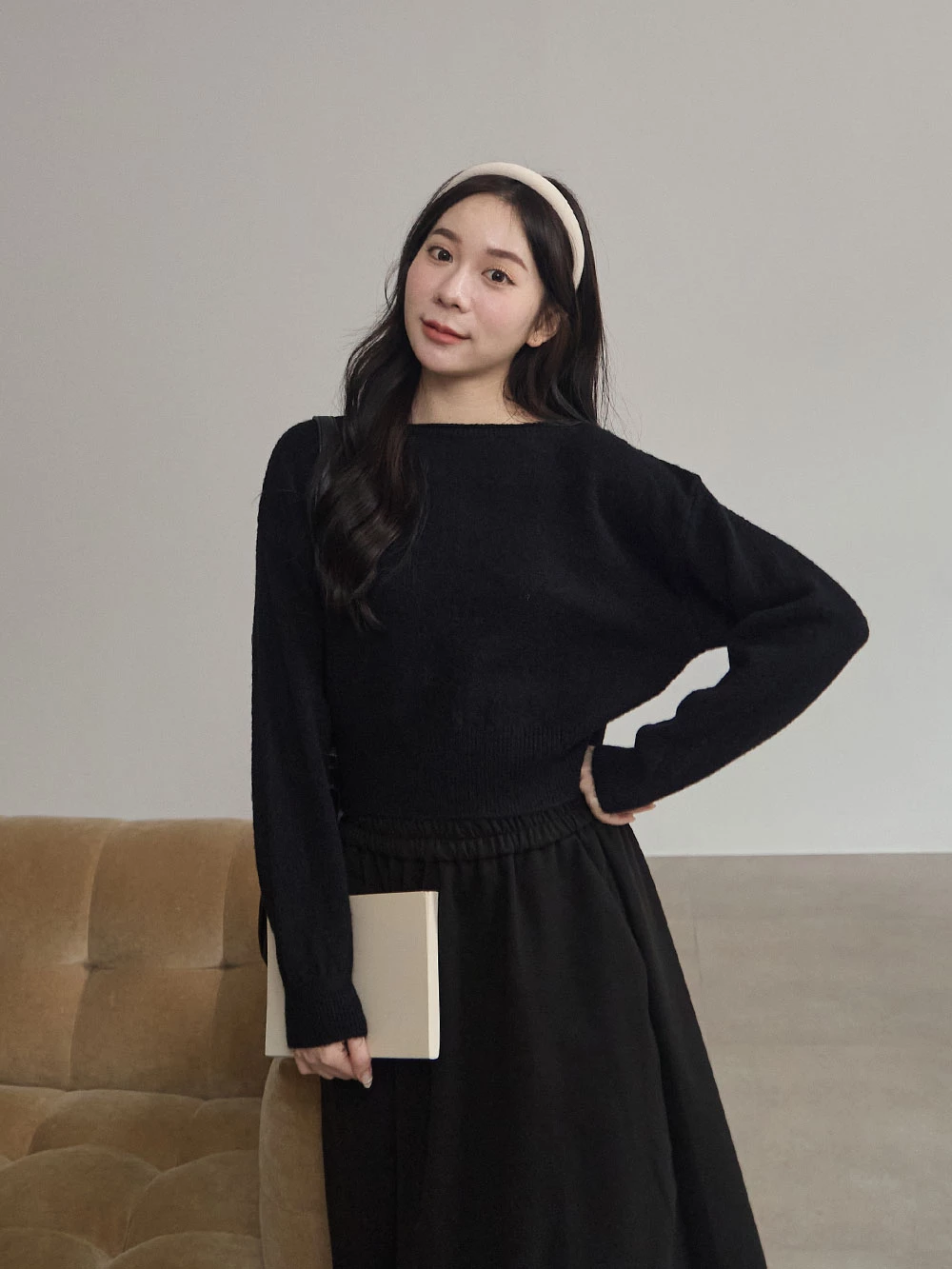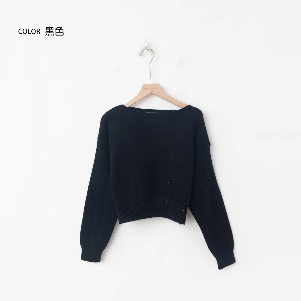寬領縮腰針織上衣