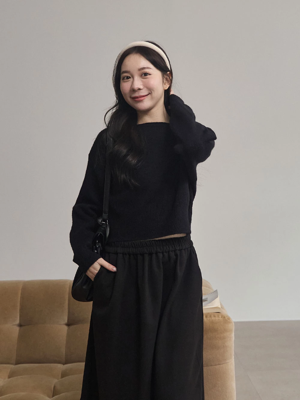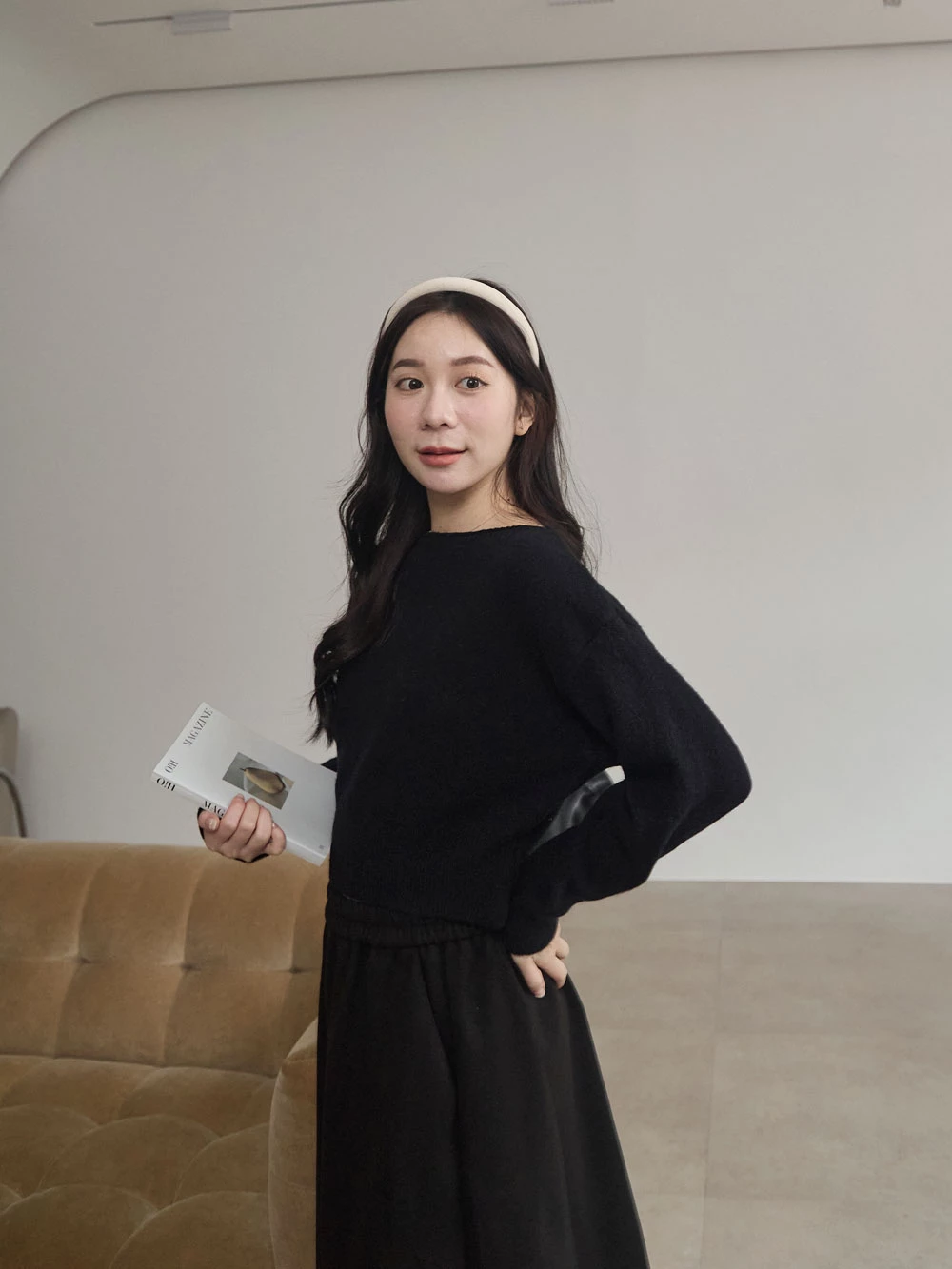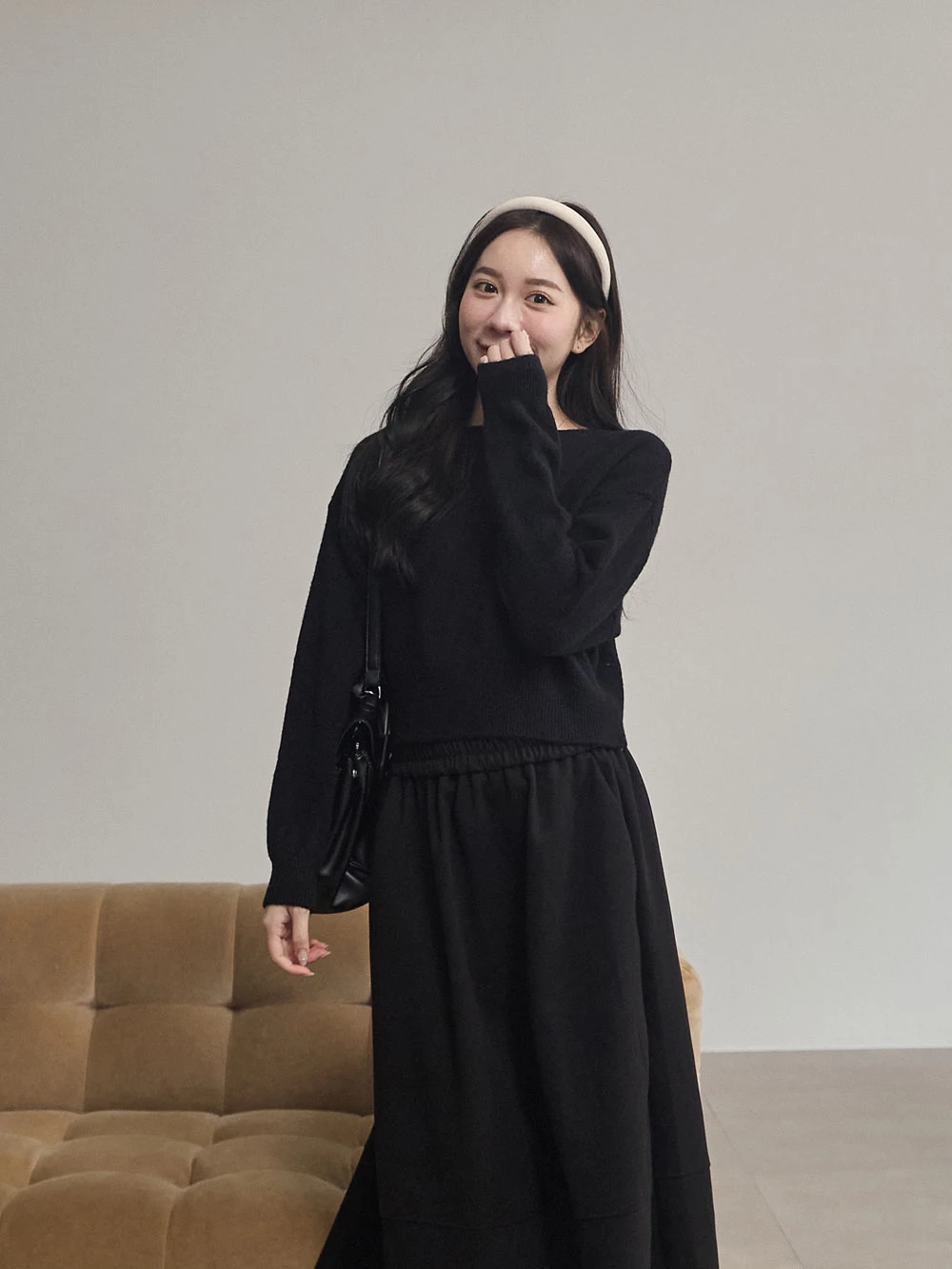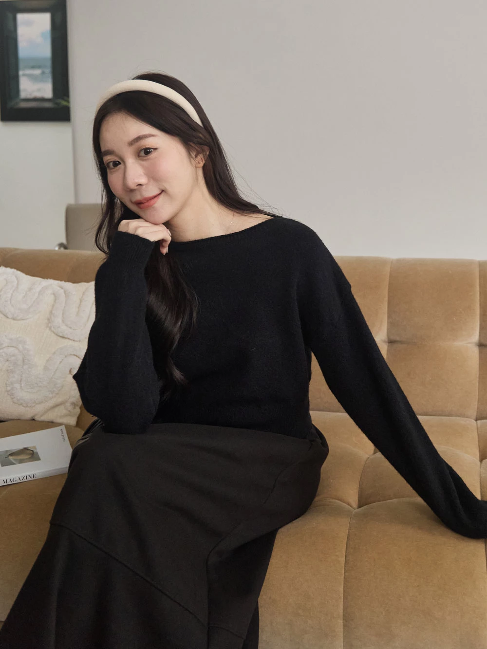 寬領縮腰針織上衣