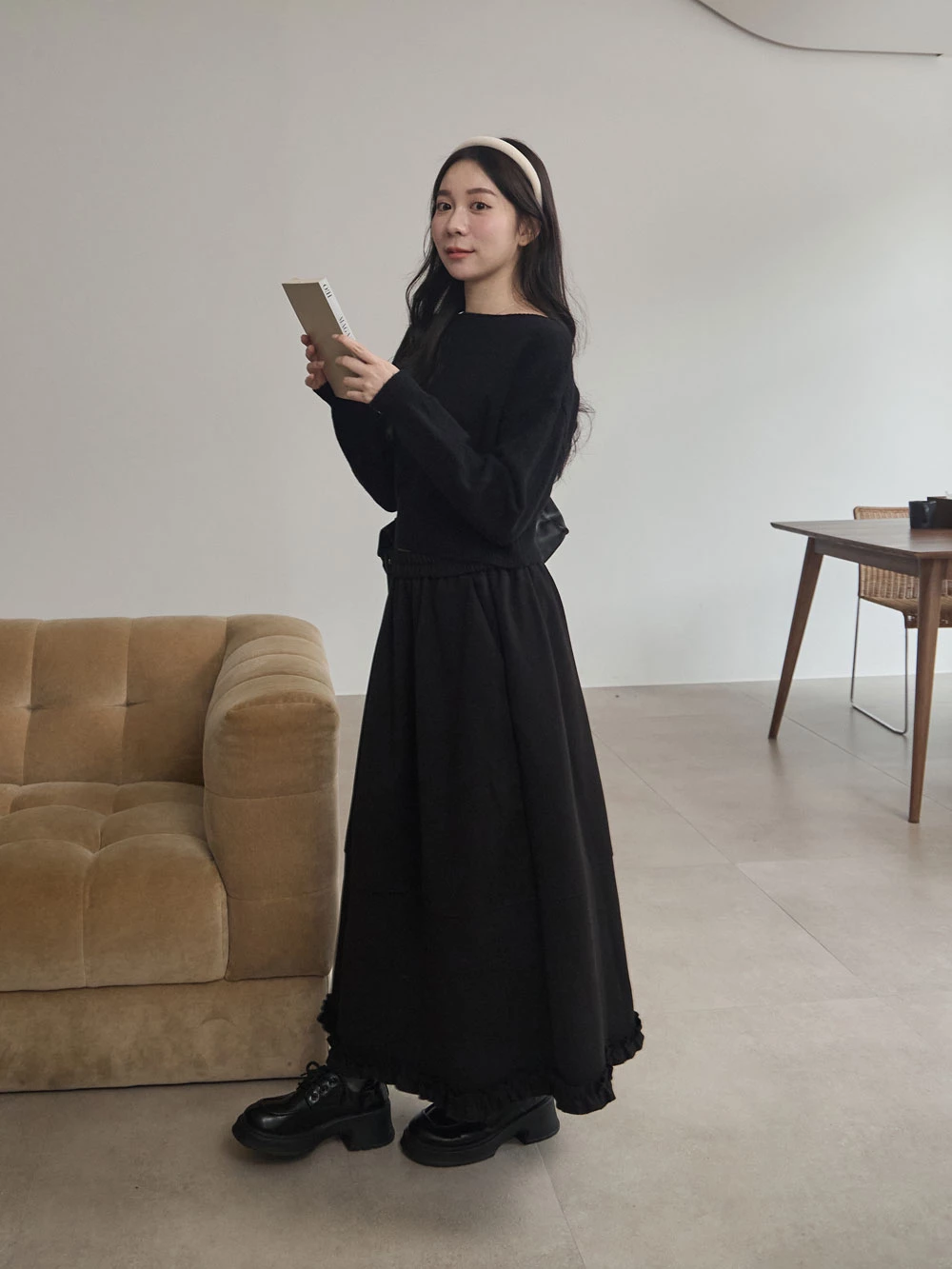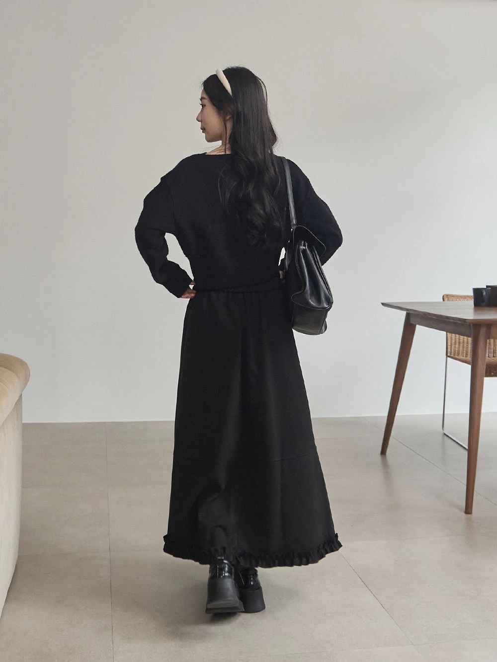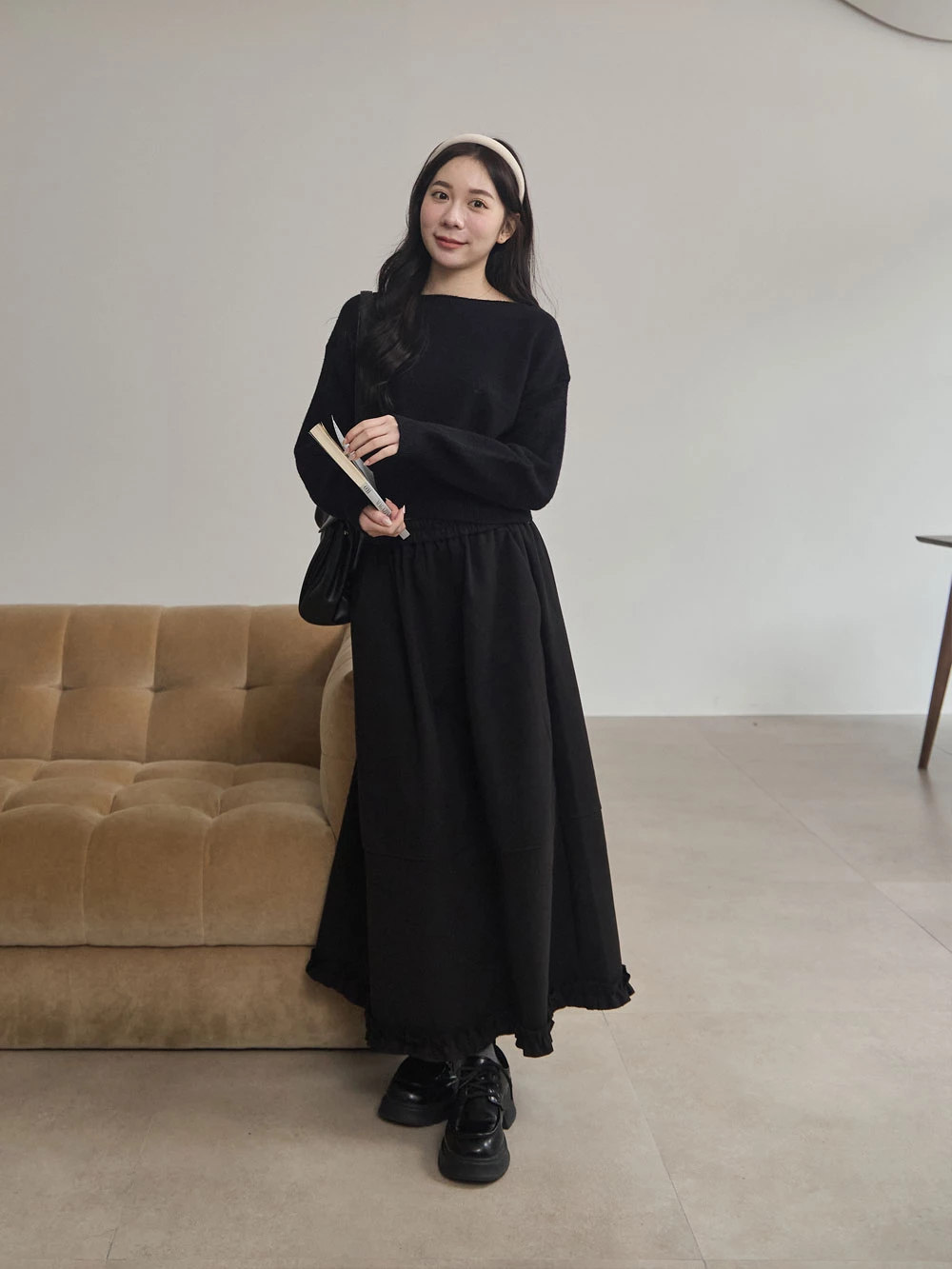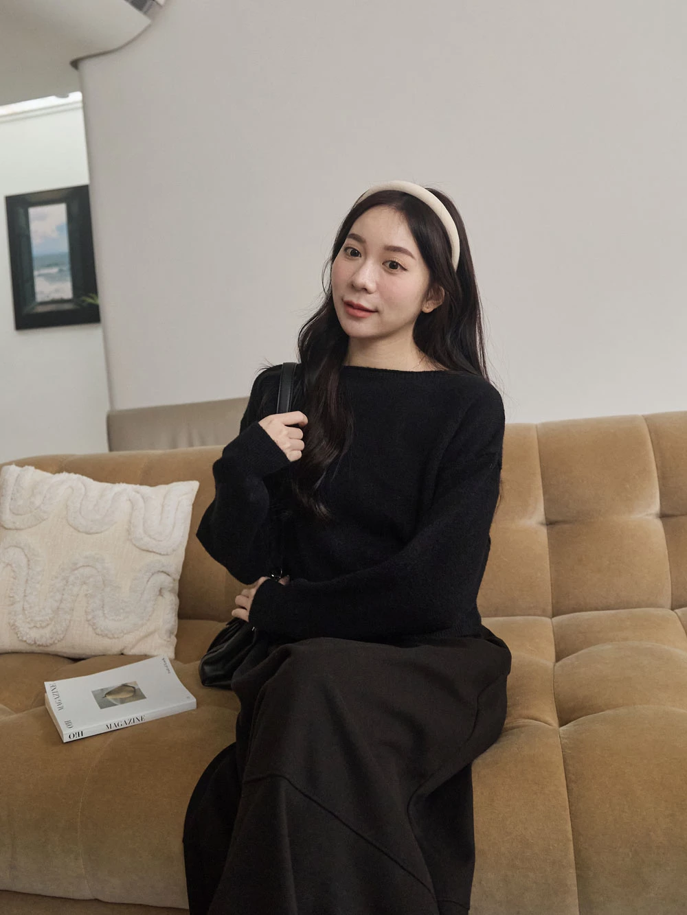 寬領縮腰針織上衣