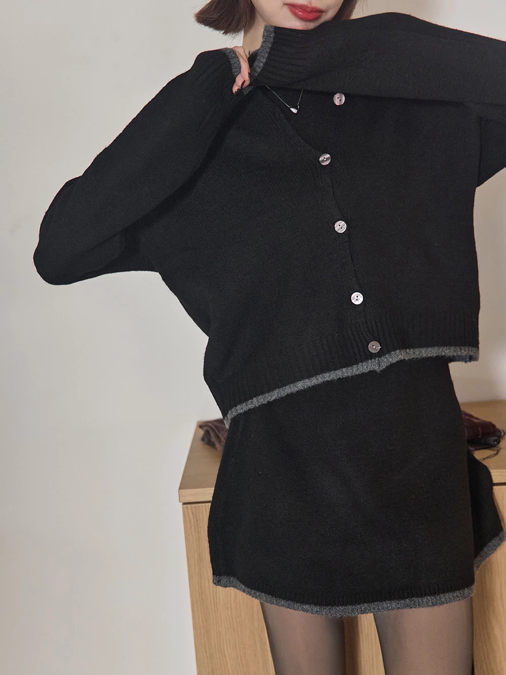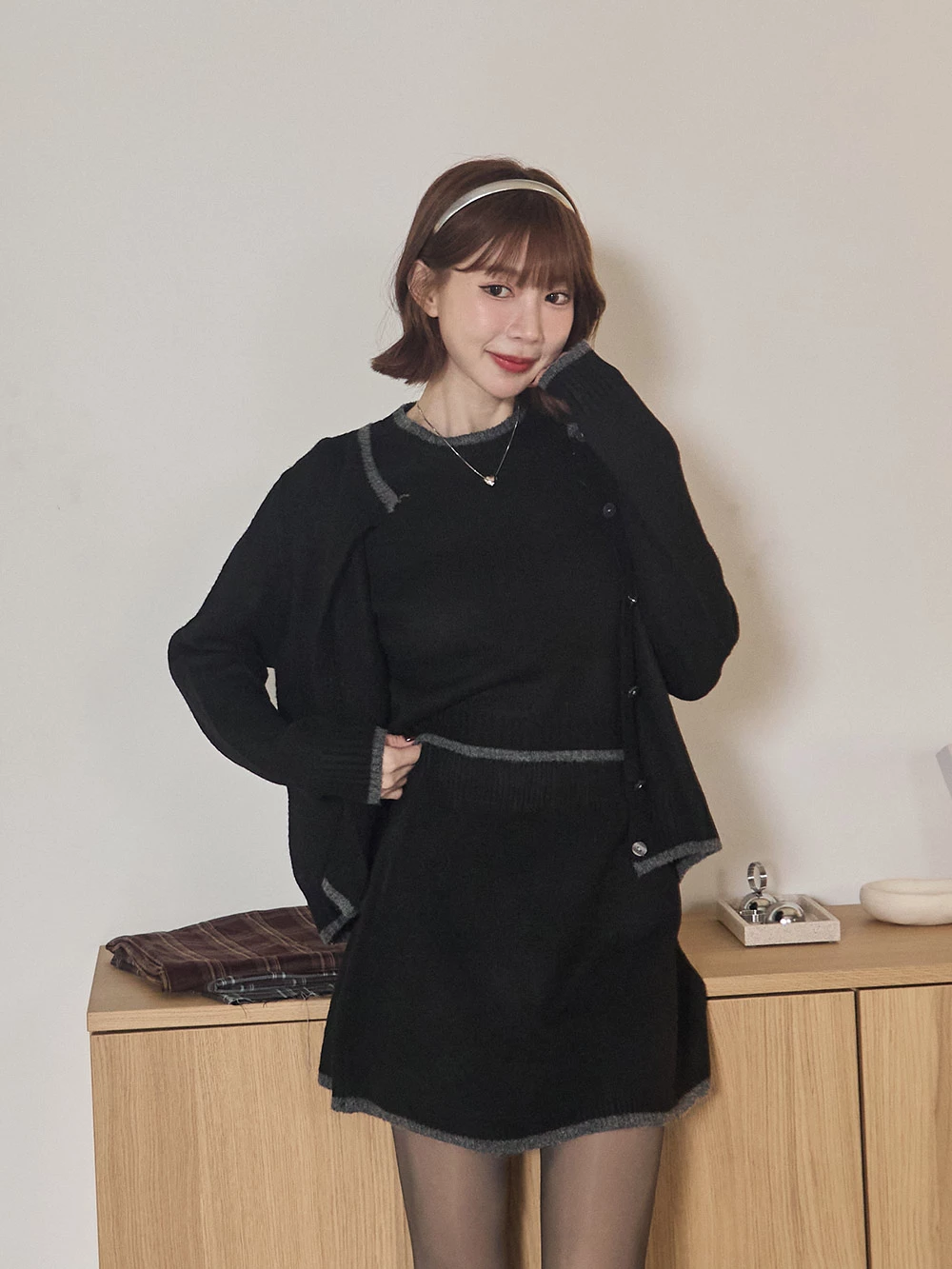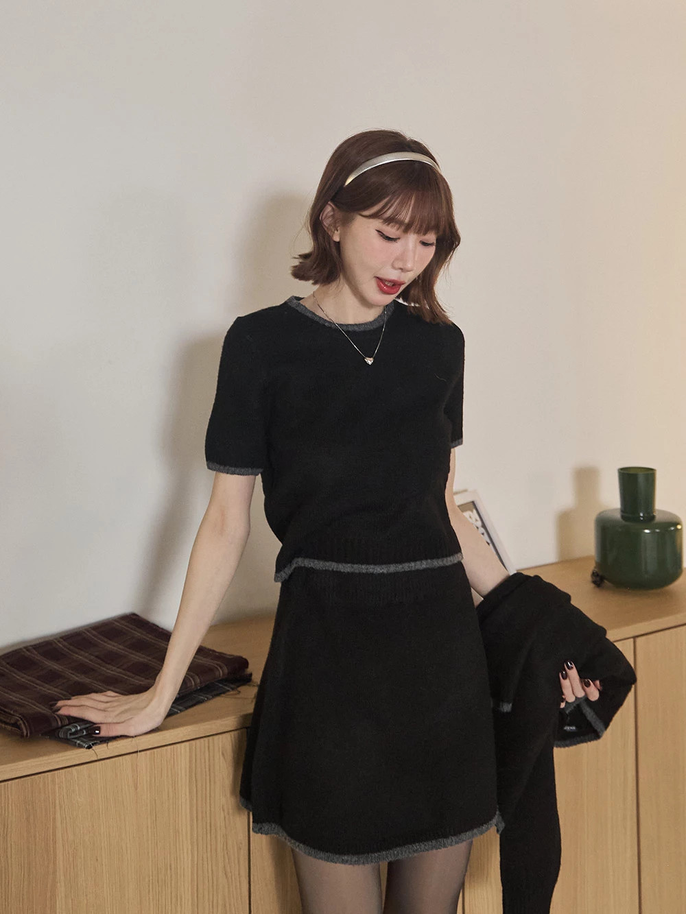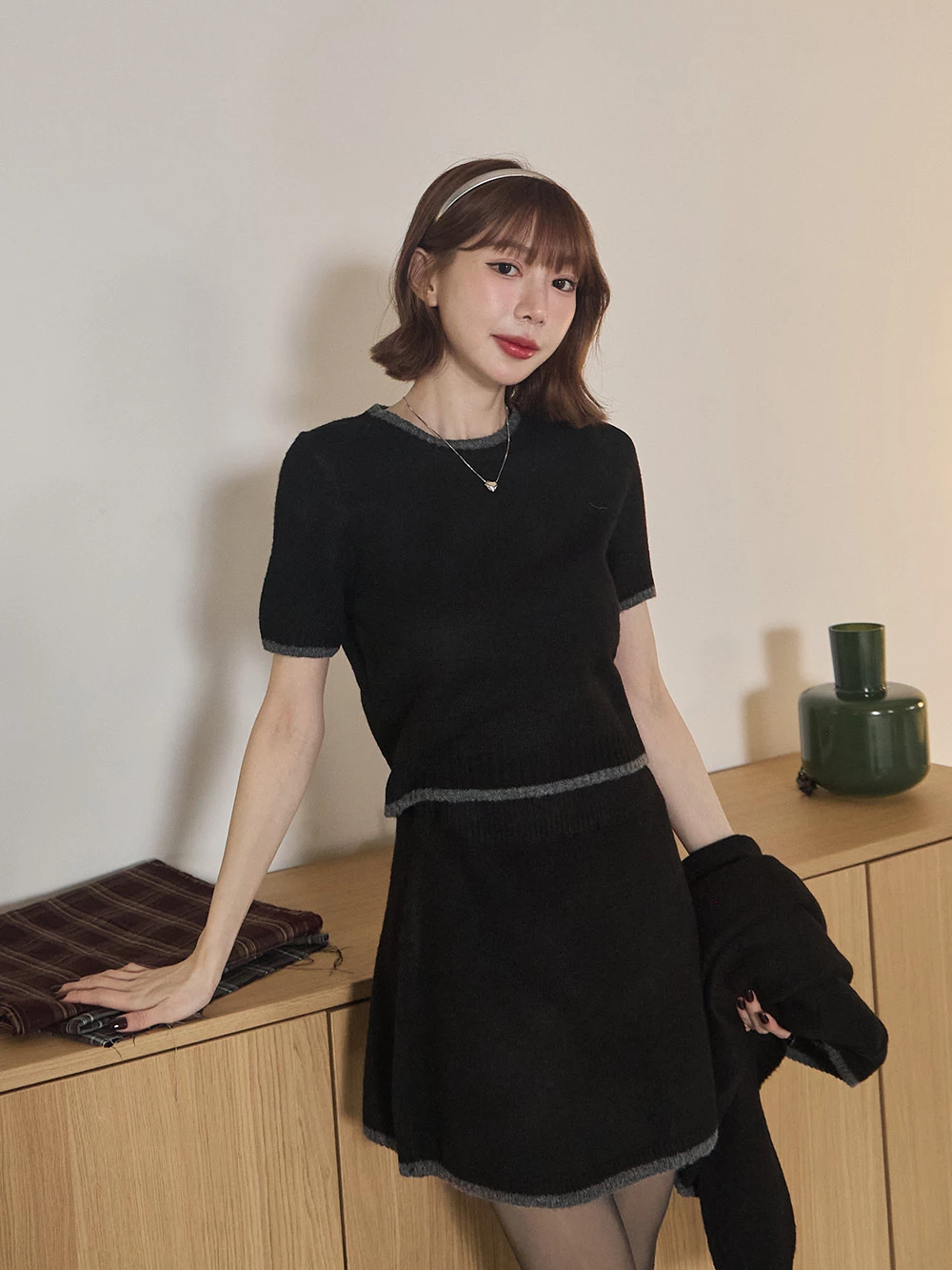 三件式-撞色針織短裙套裝 | Space Picnic