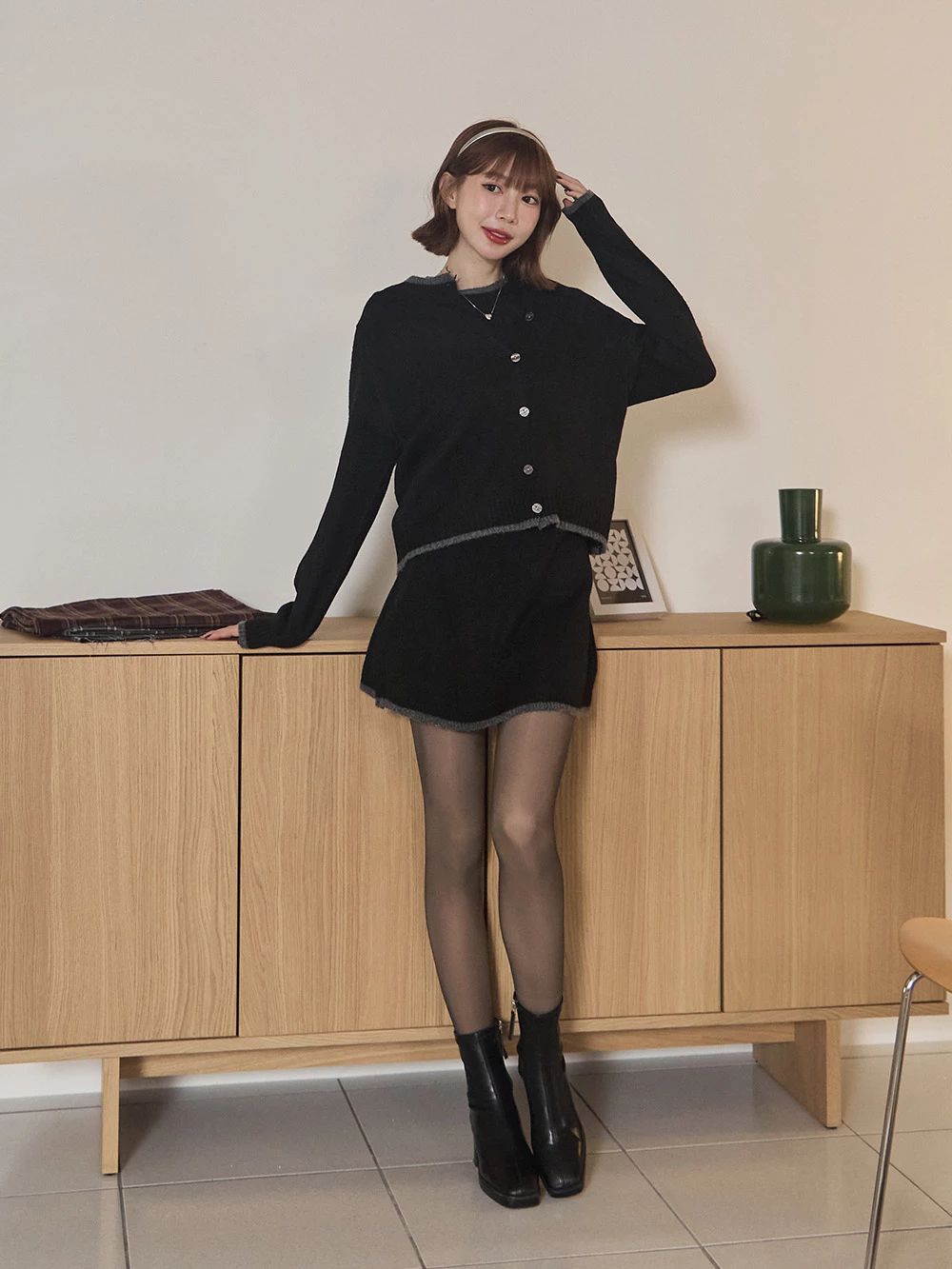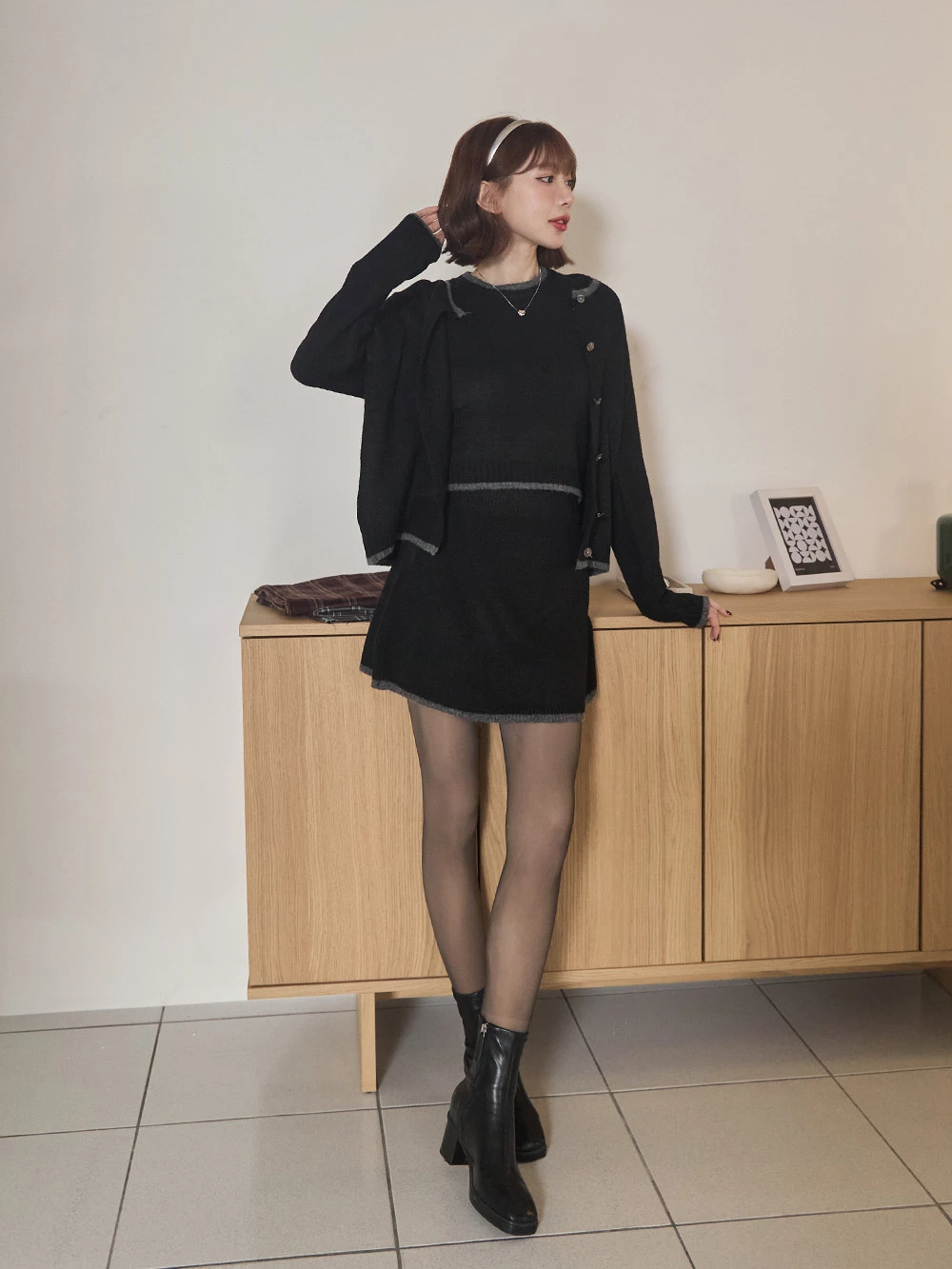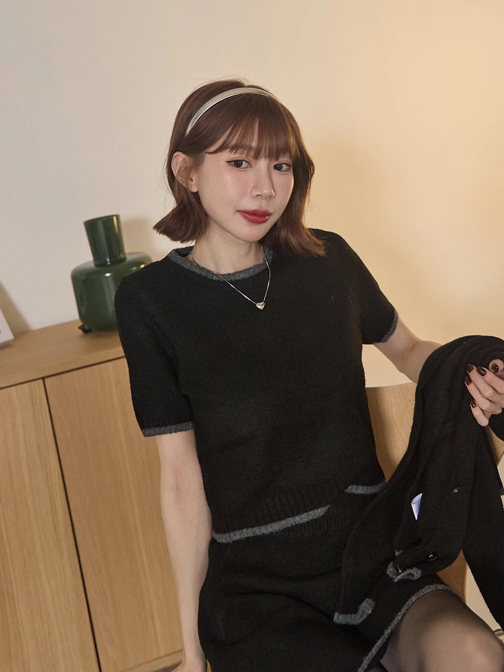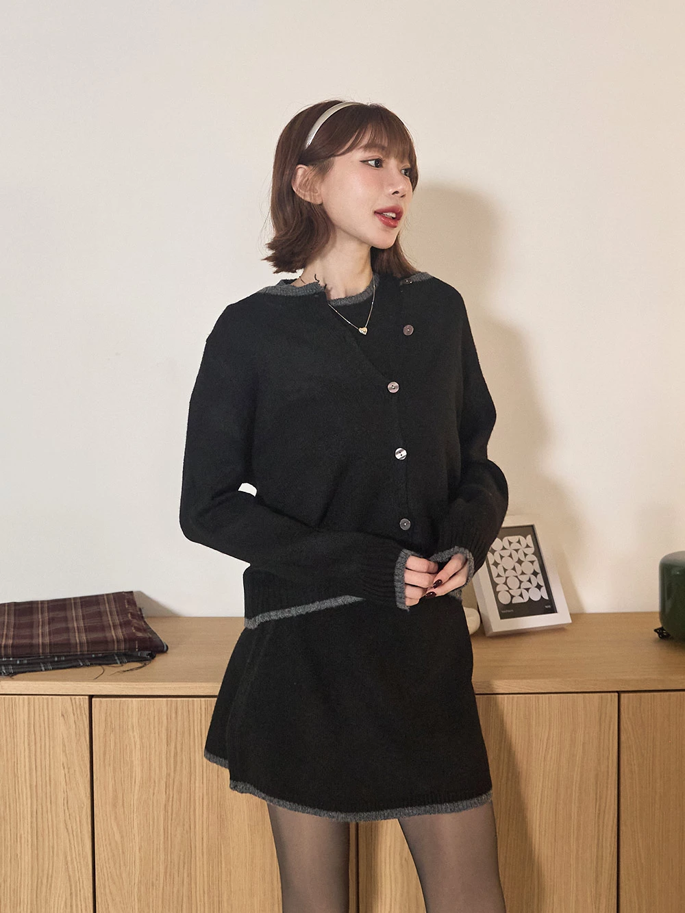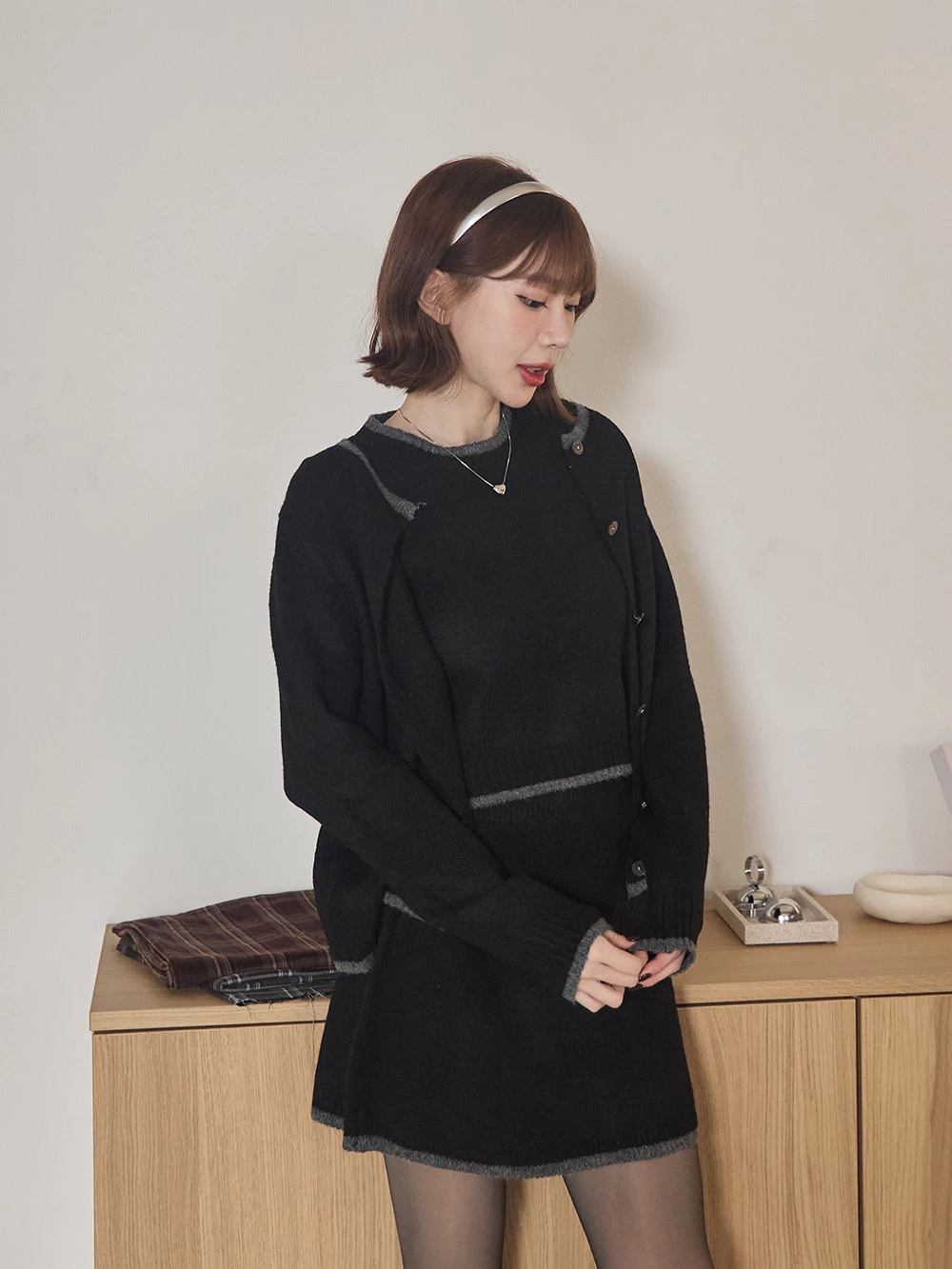 三件式-撞色針織短裙套裝 | Space Picnic