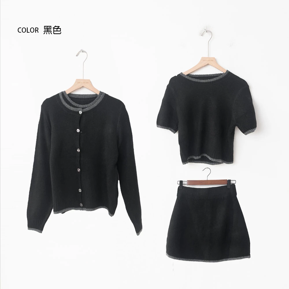 三件式-撞色針織短裙套裝