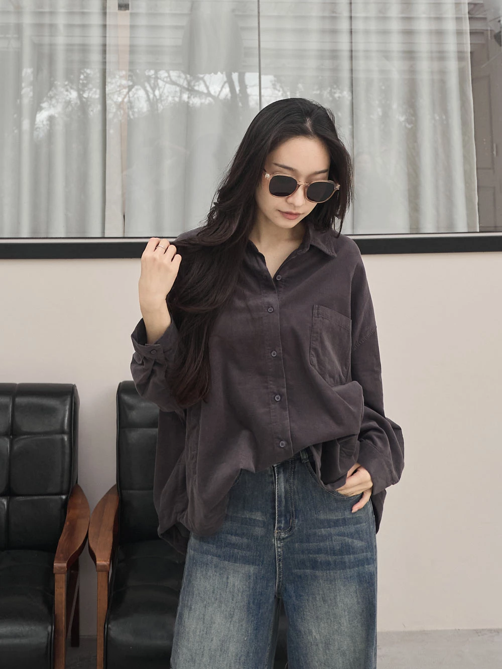 薄料燈芯絨寬版襯衫