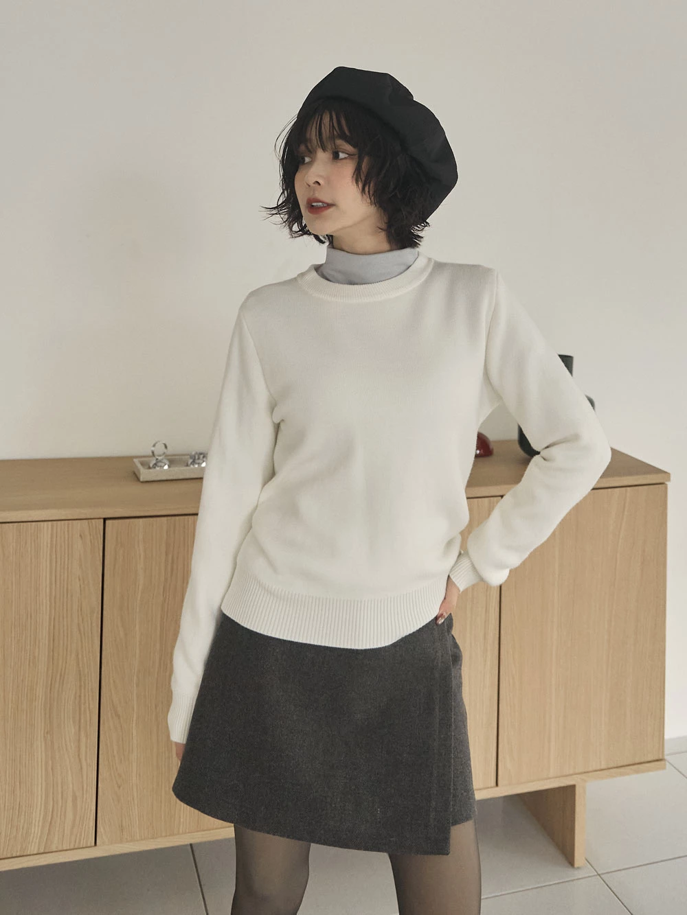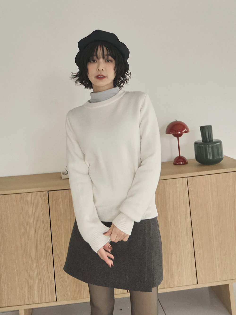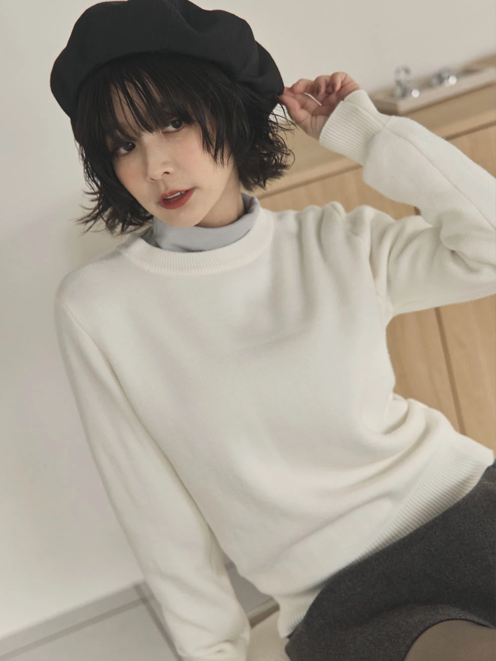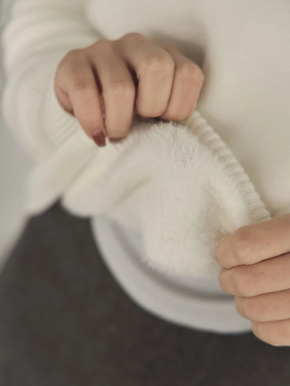 羅紋圓領內刷毛針織上衣