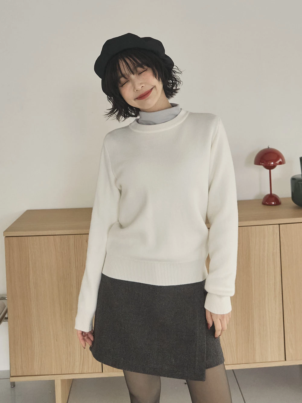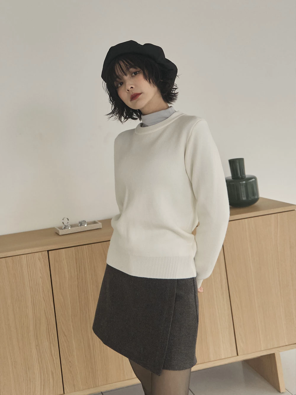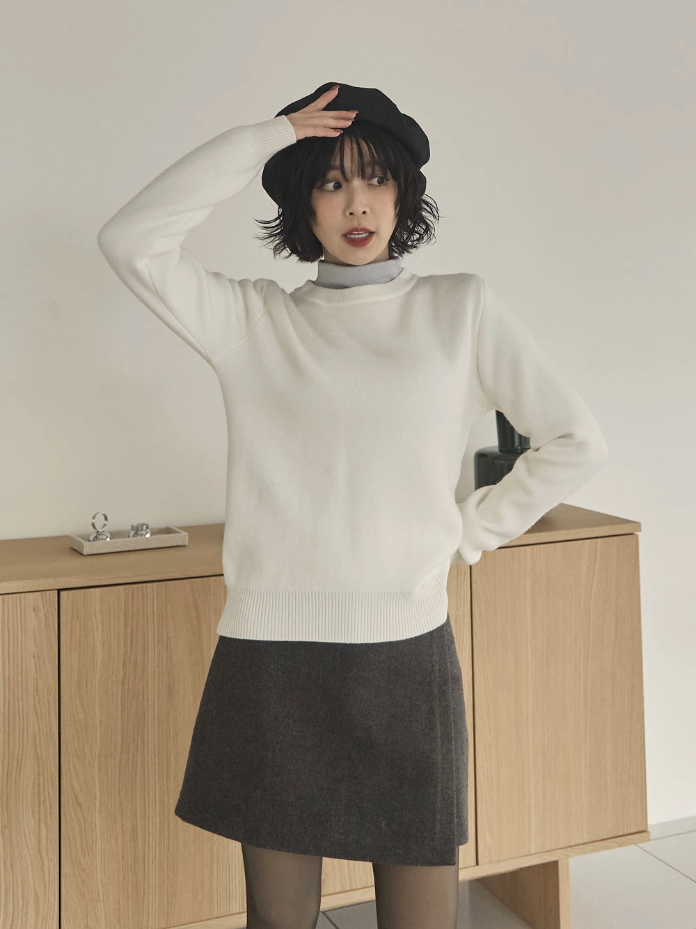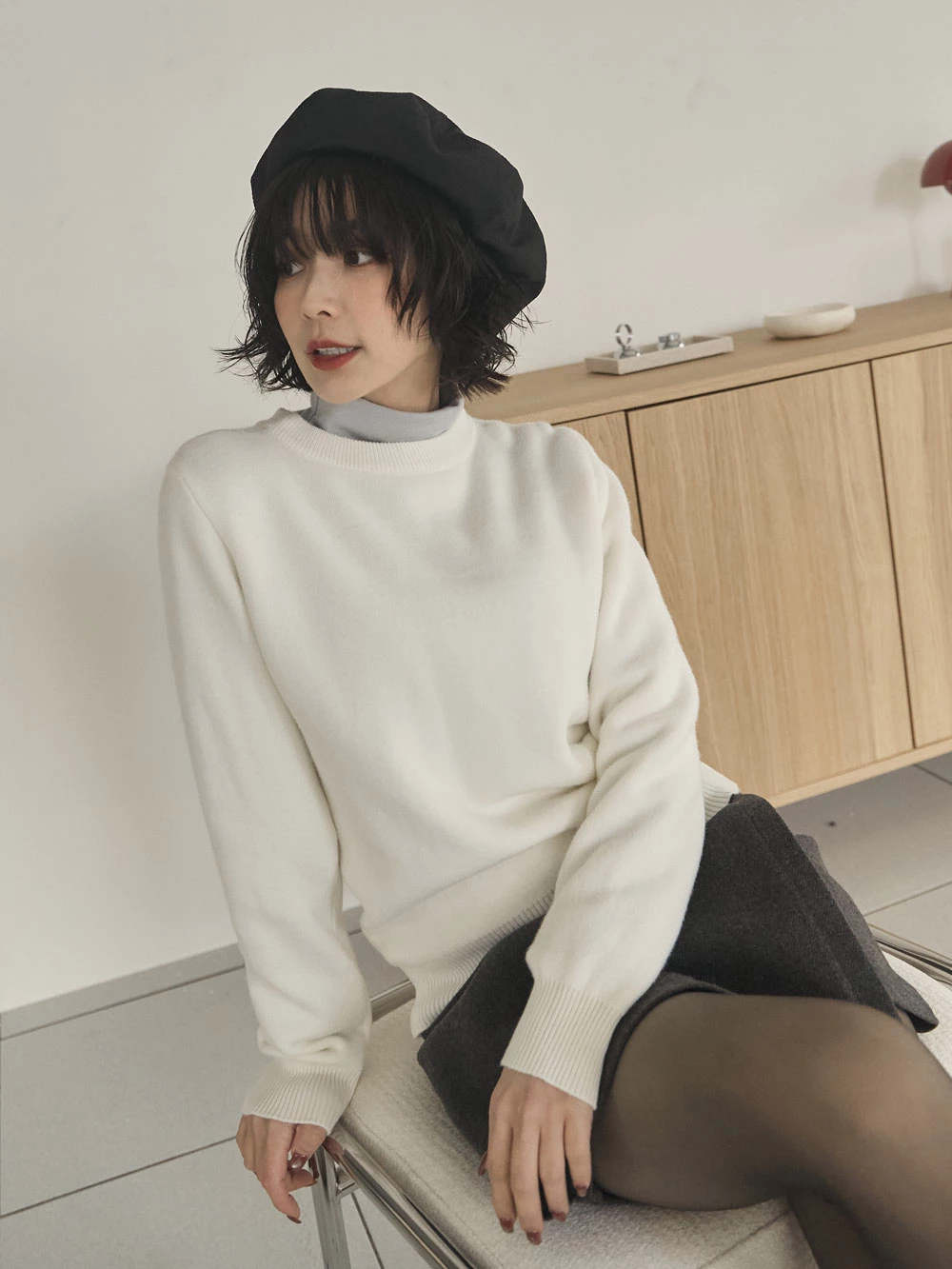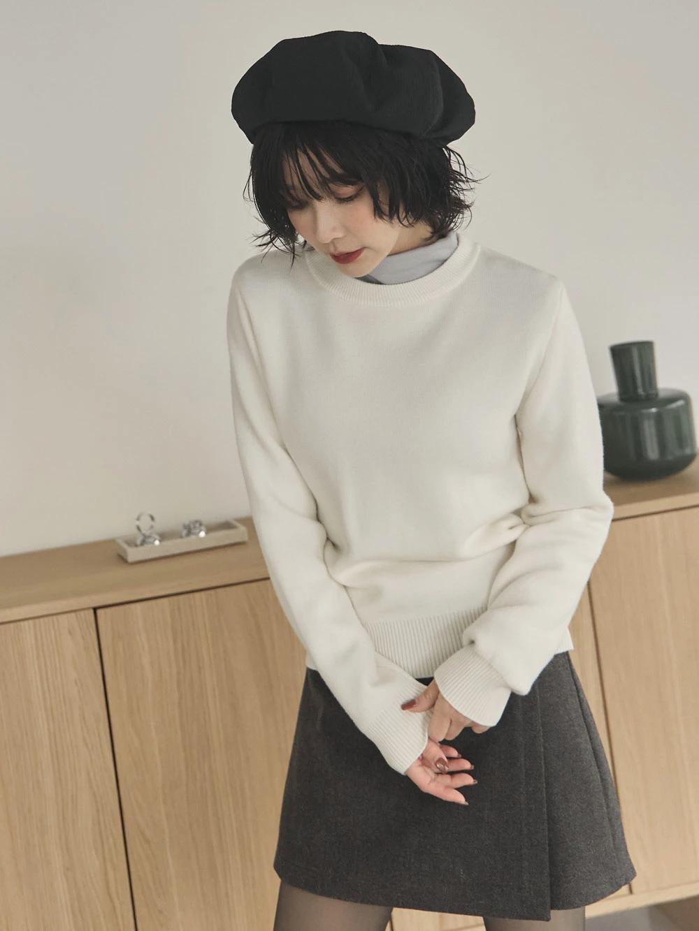 羅紋圓領內刷毛針織上衣