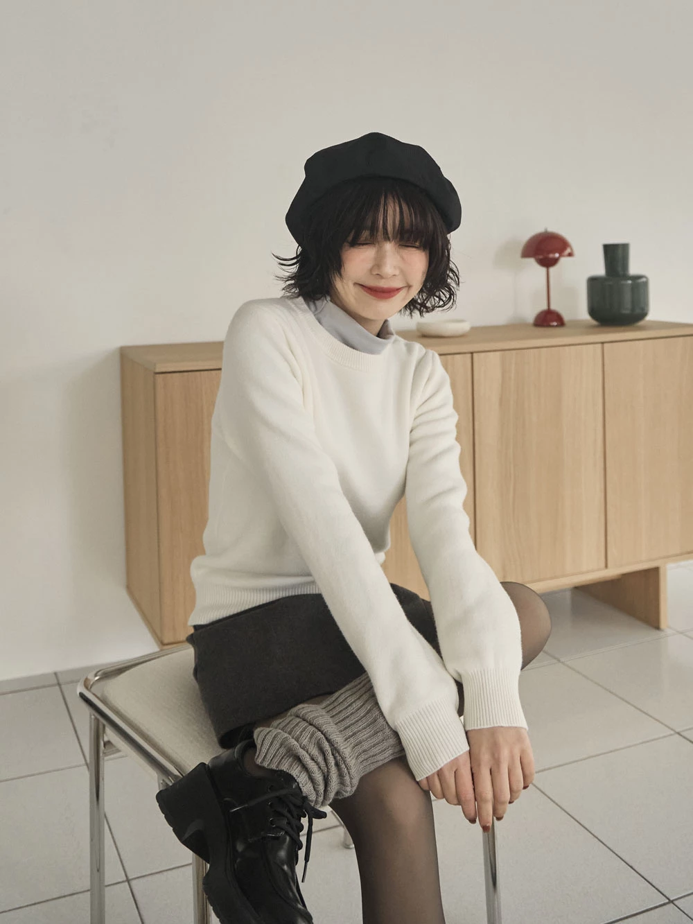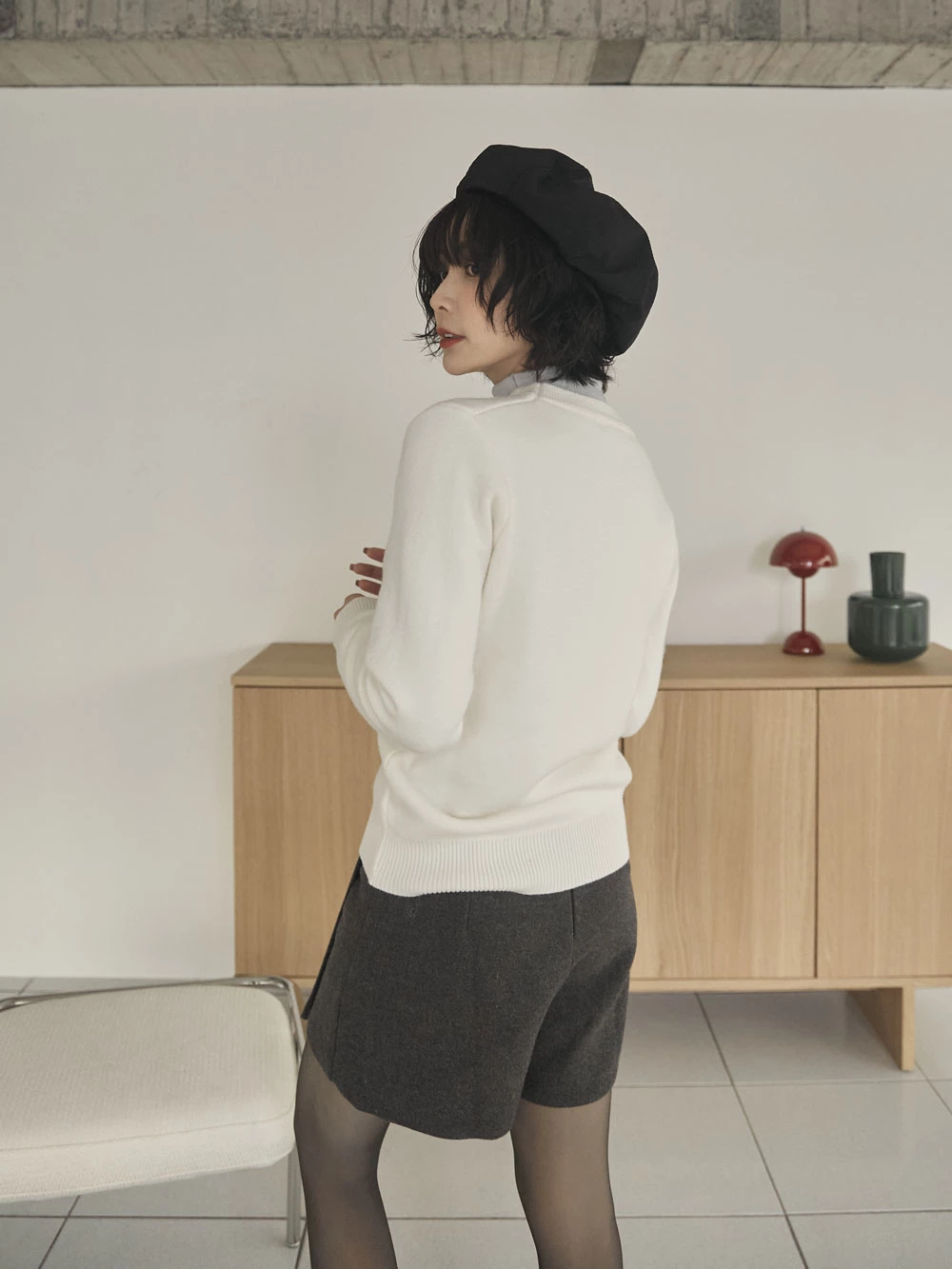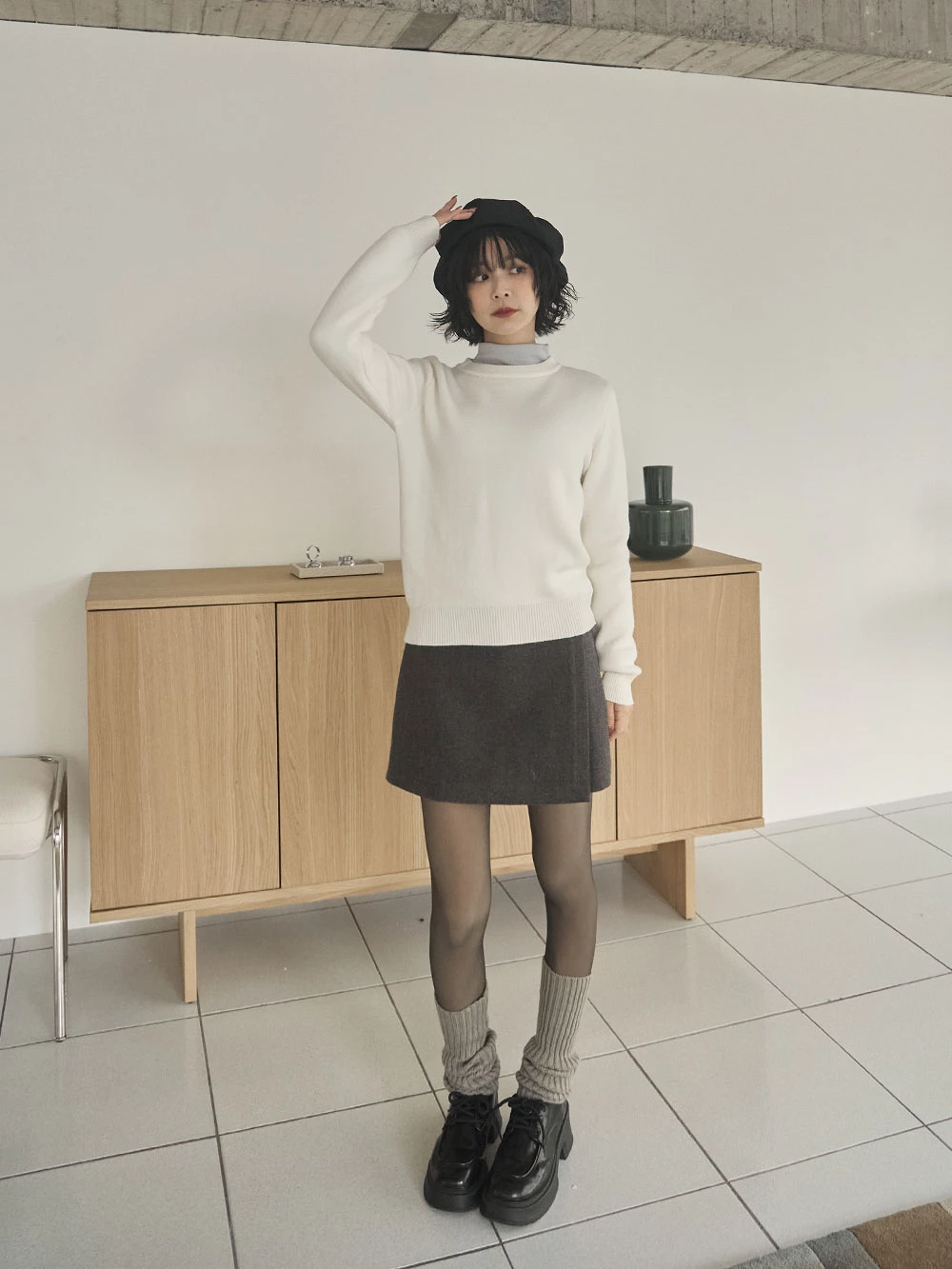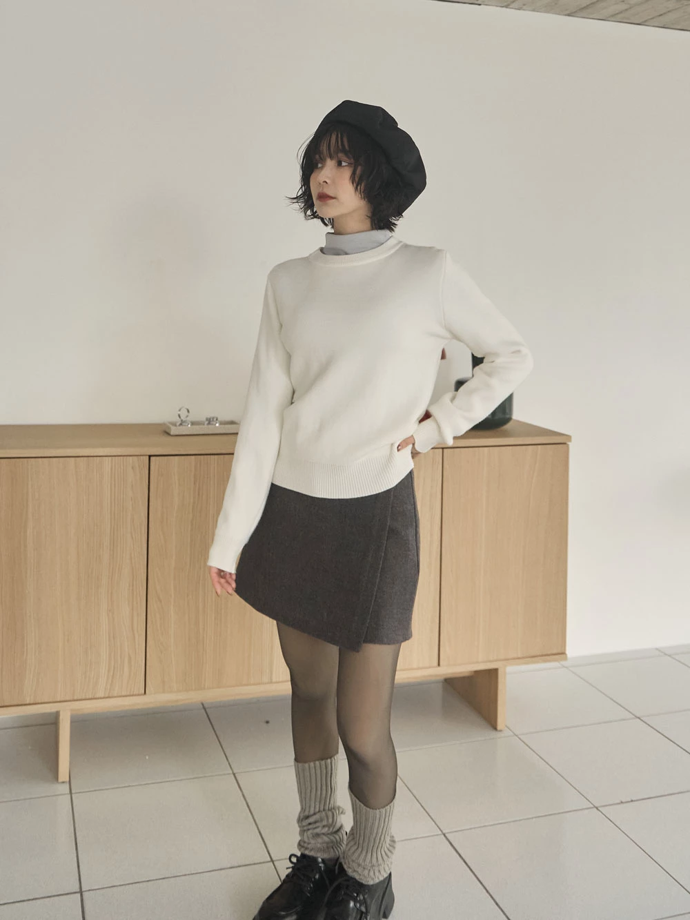 羅紋圓領內刷毛針織上衣