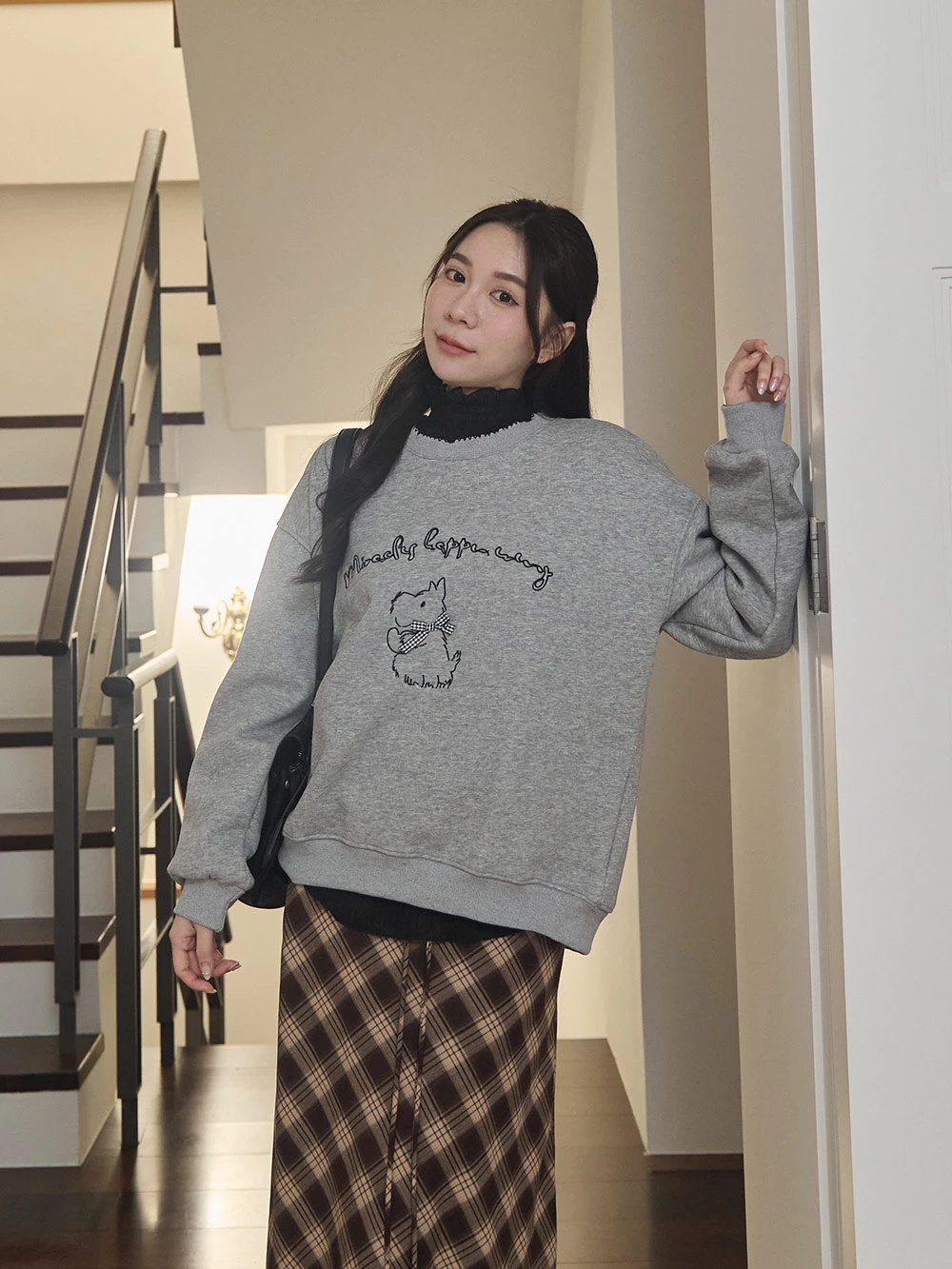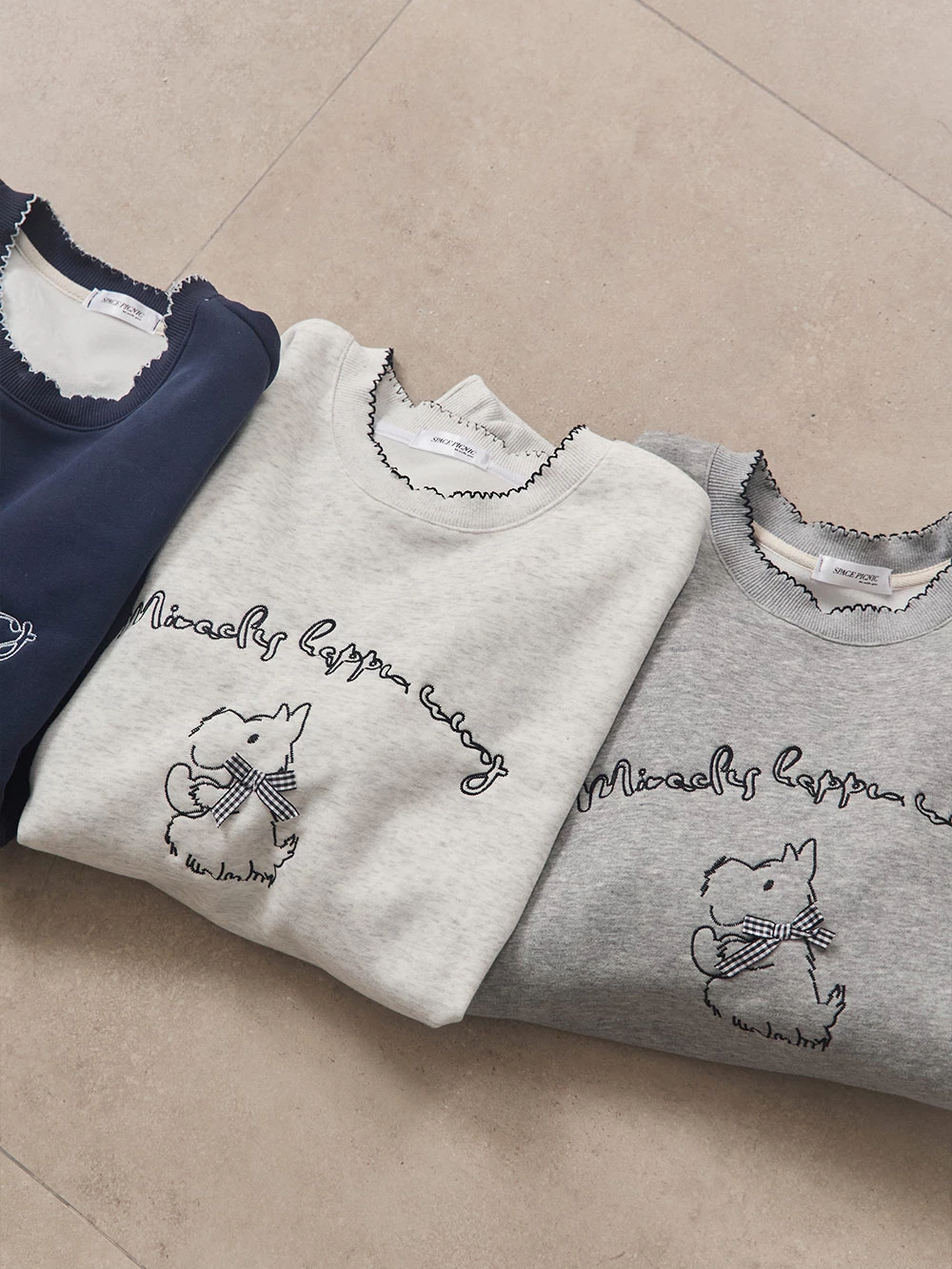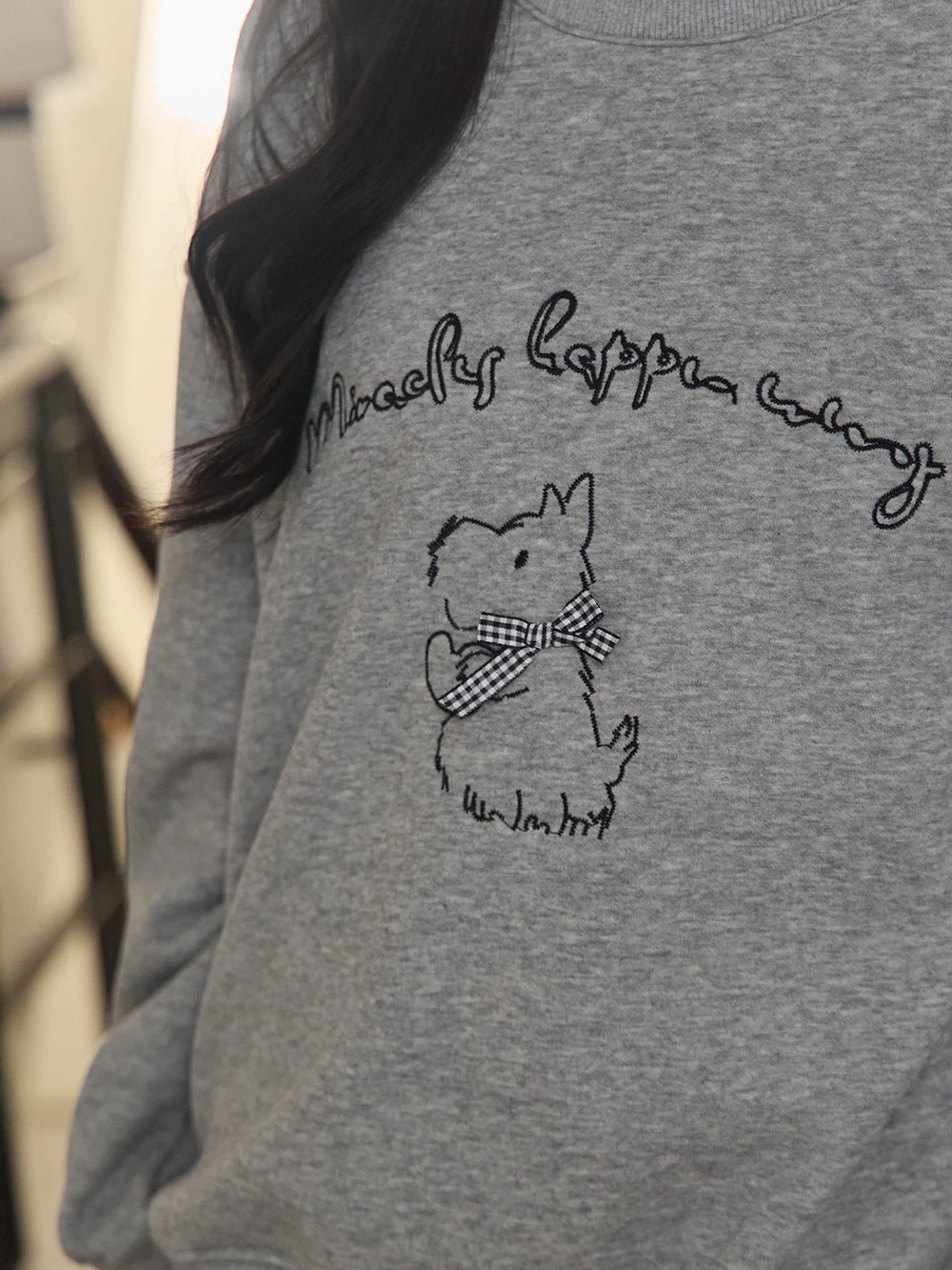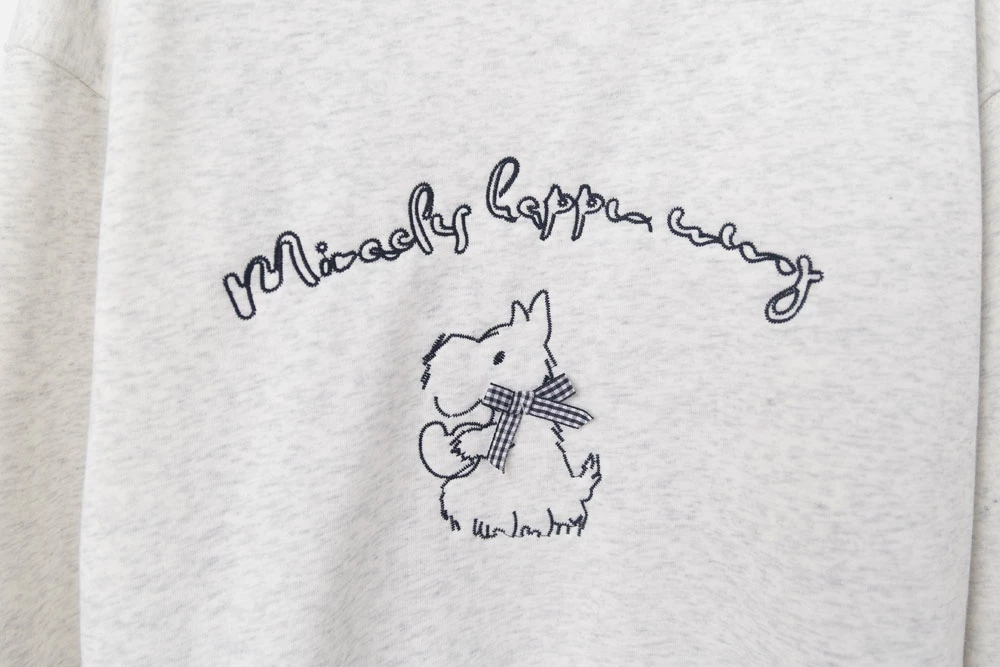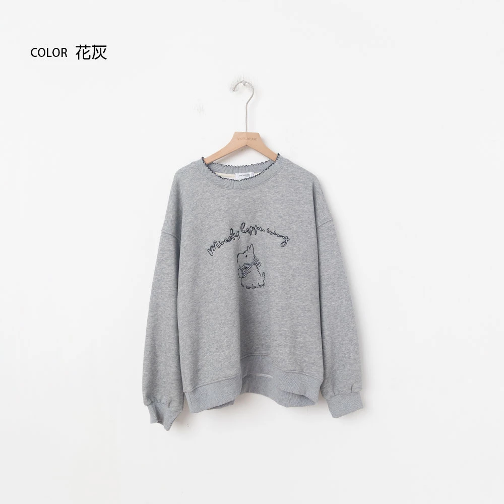 線條狗狗印圖刷絨大學T