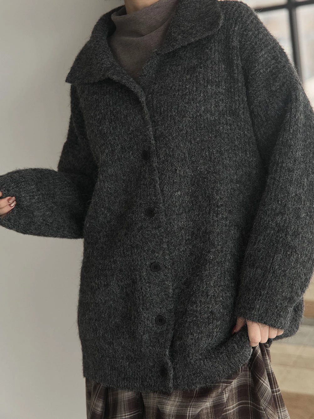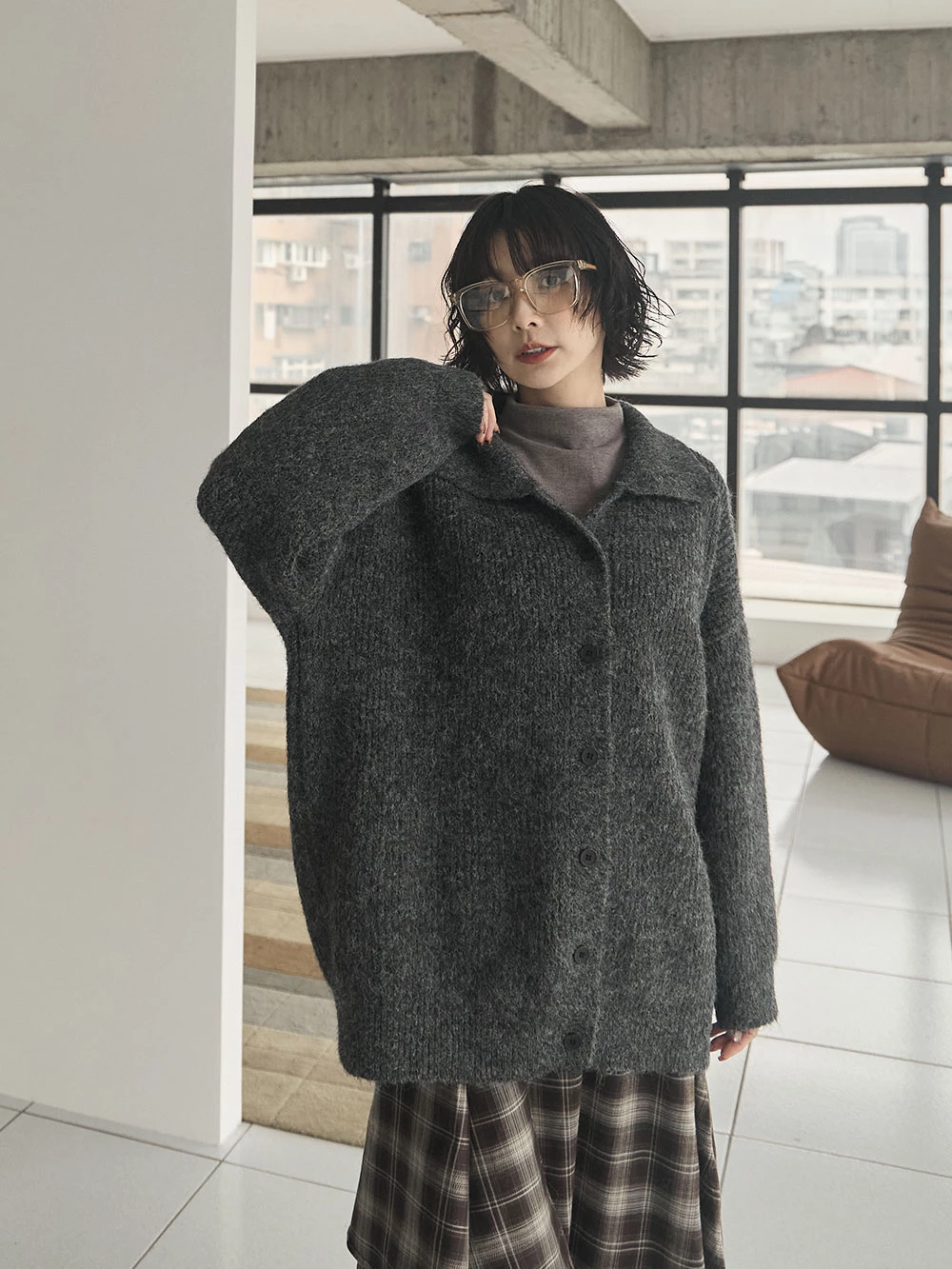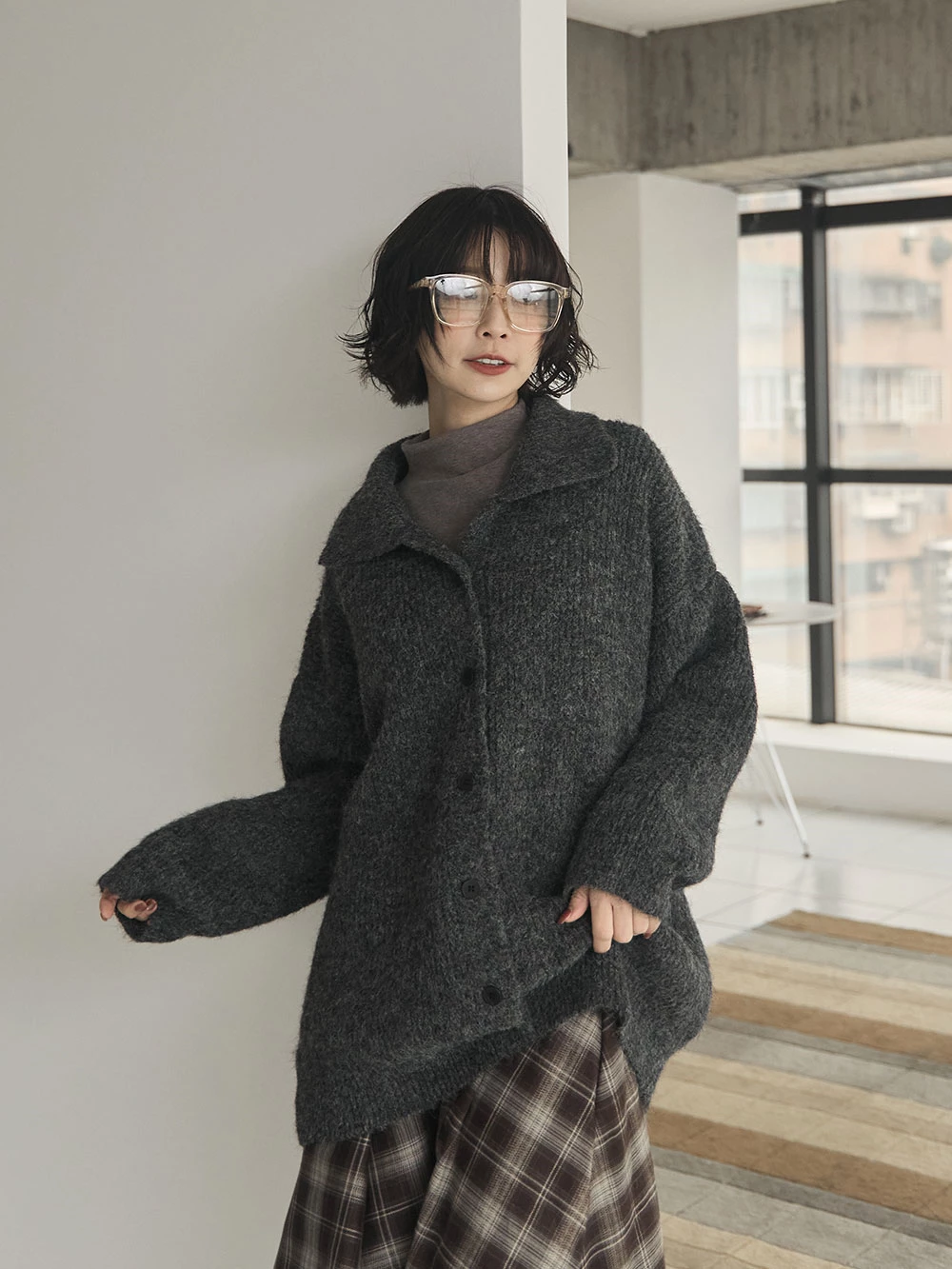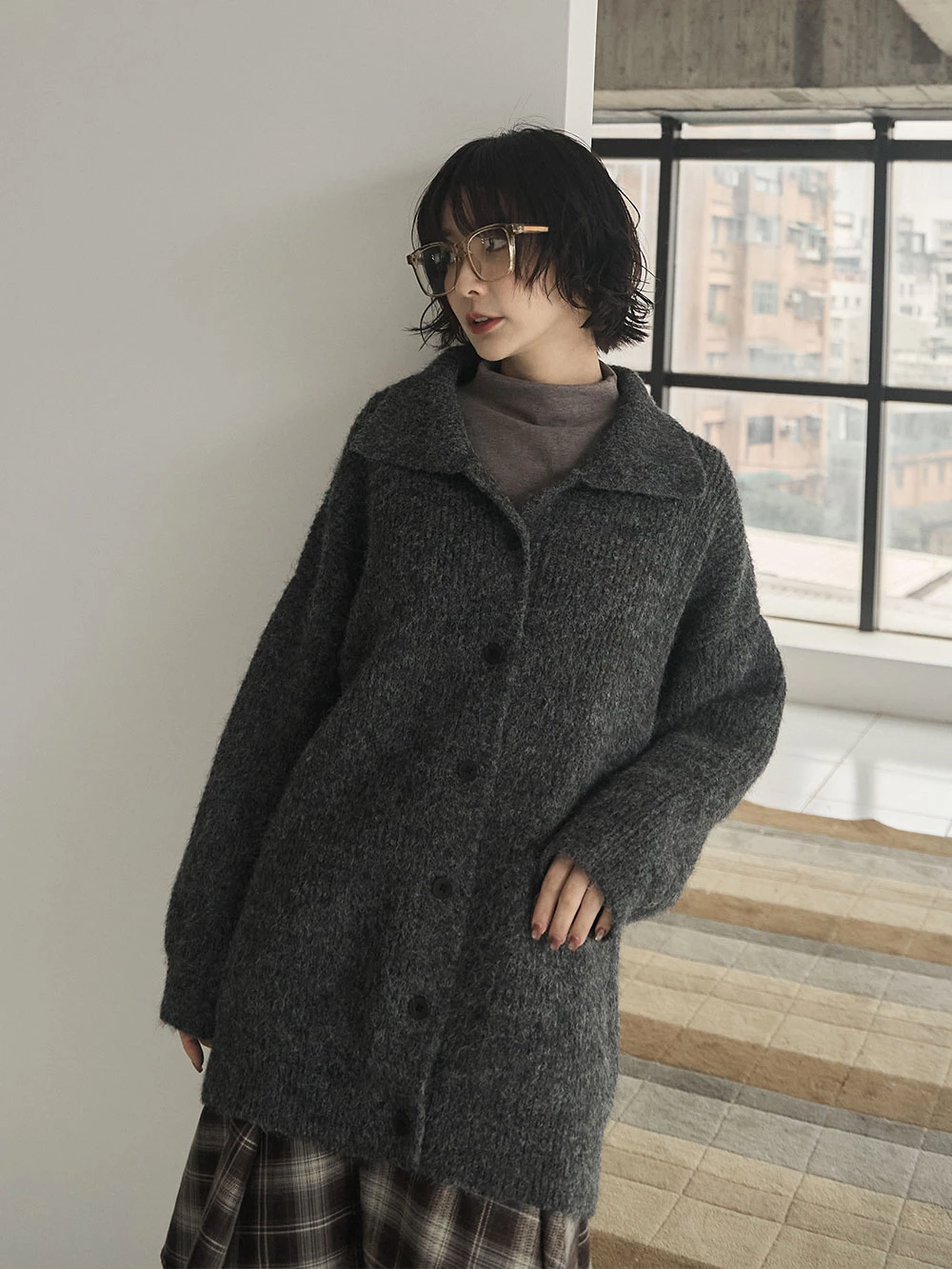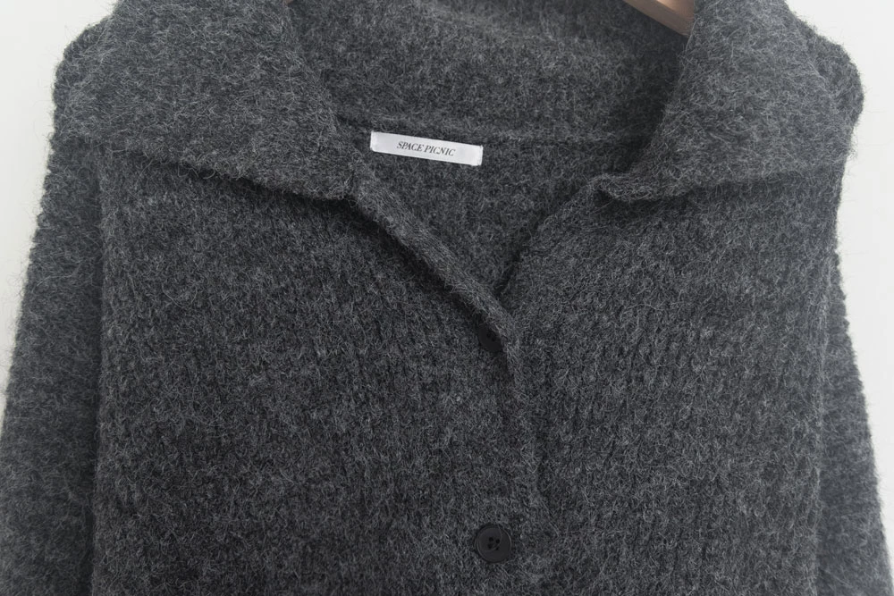 翻領排釦長版針織外套 | Space Picnic
