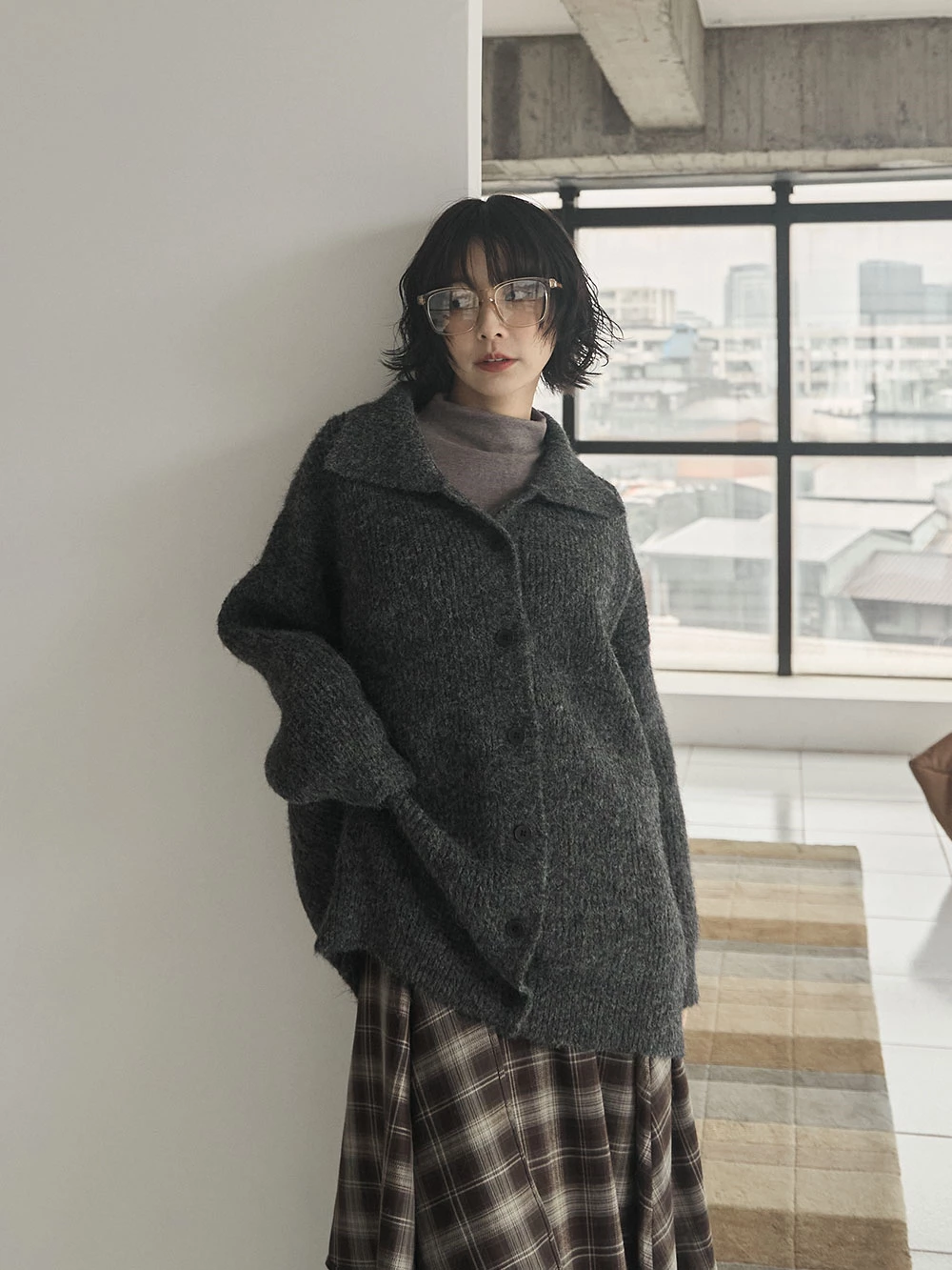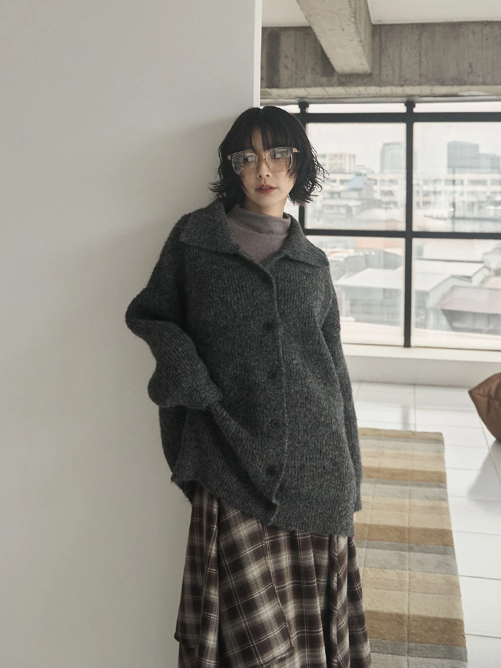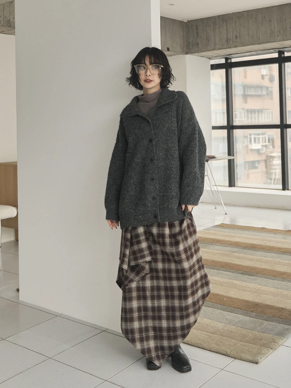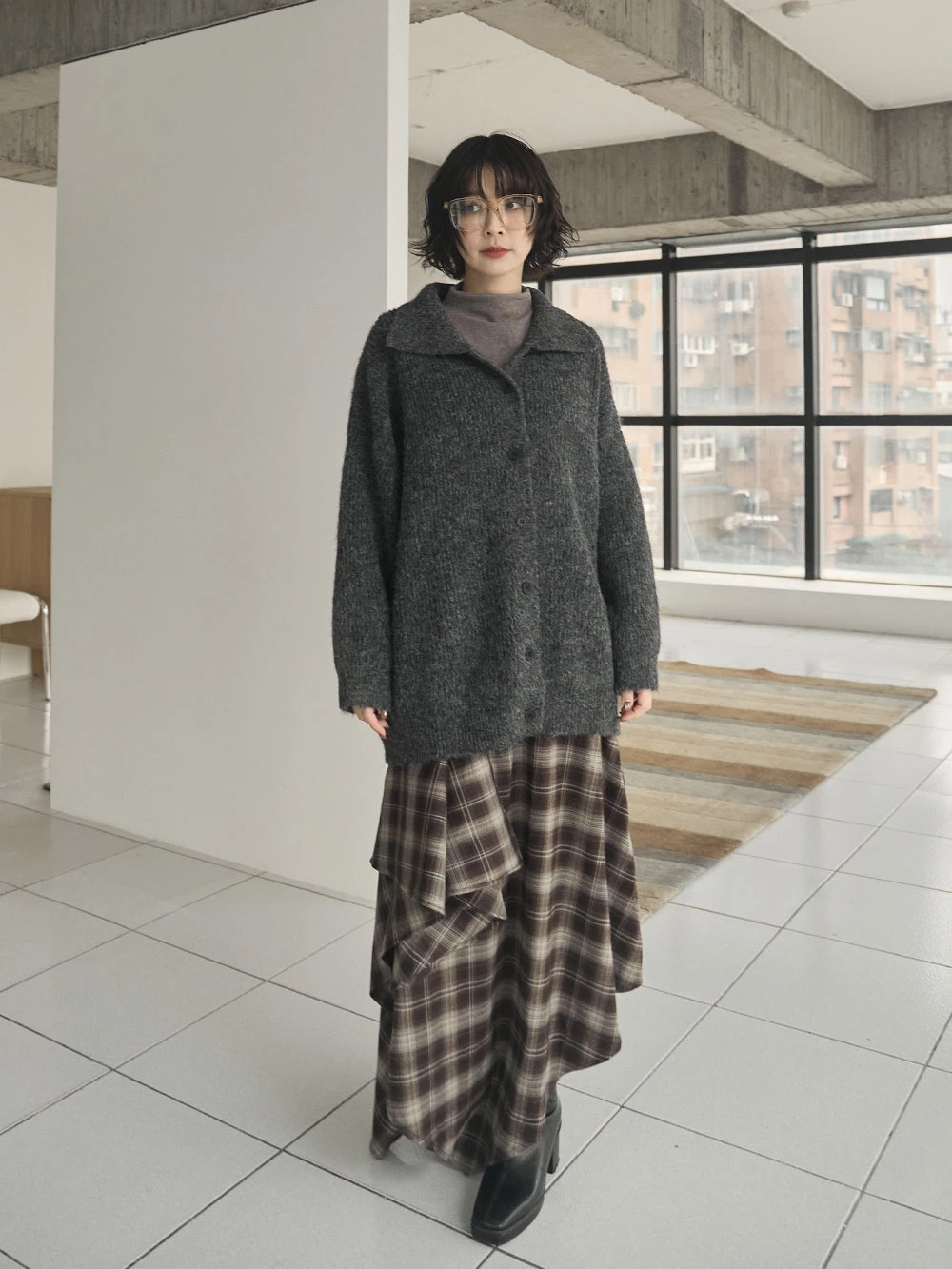 翻領排釦長版針織外套 | Space Picnic