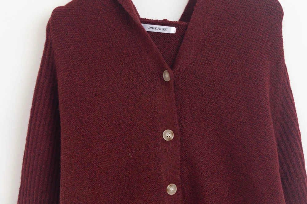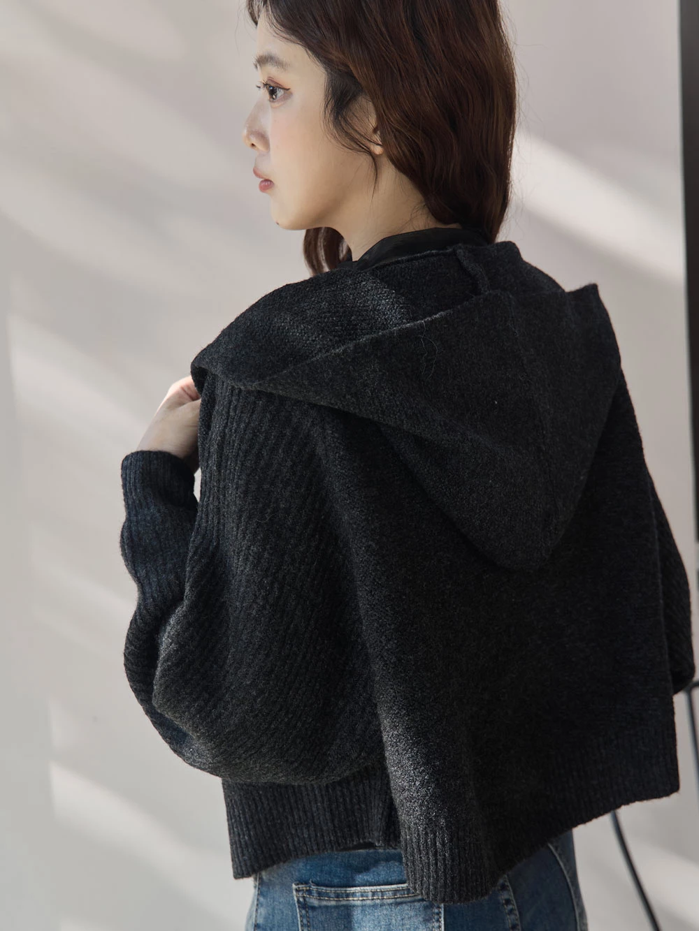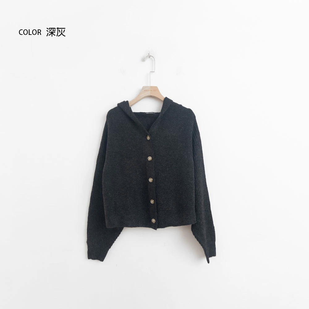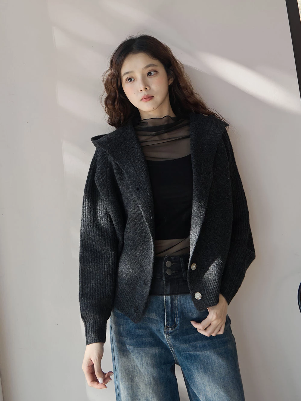 短版澎袖針織連帽外套