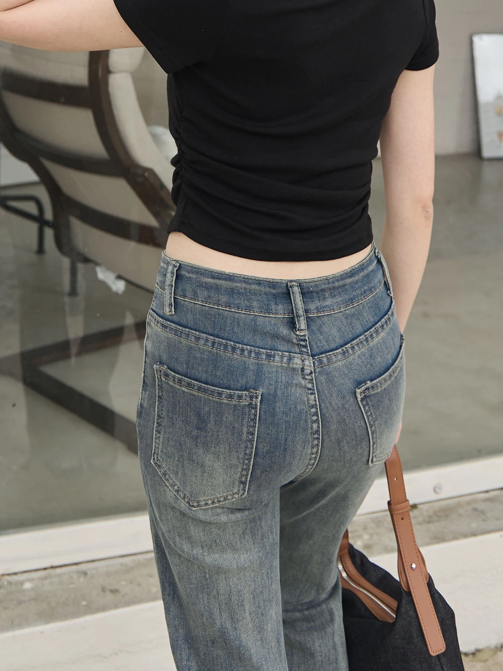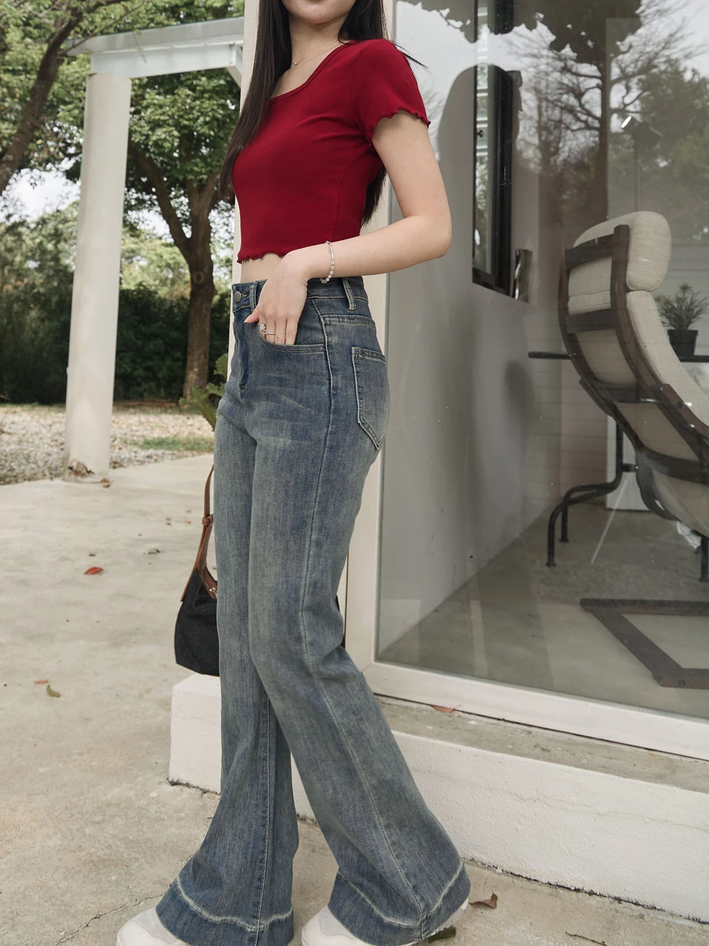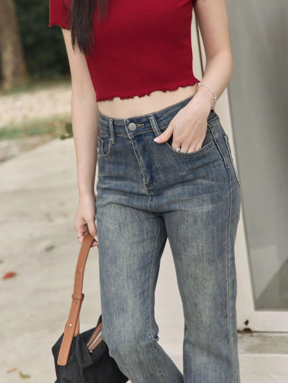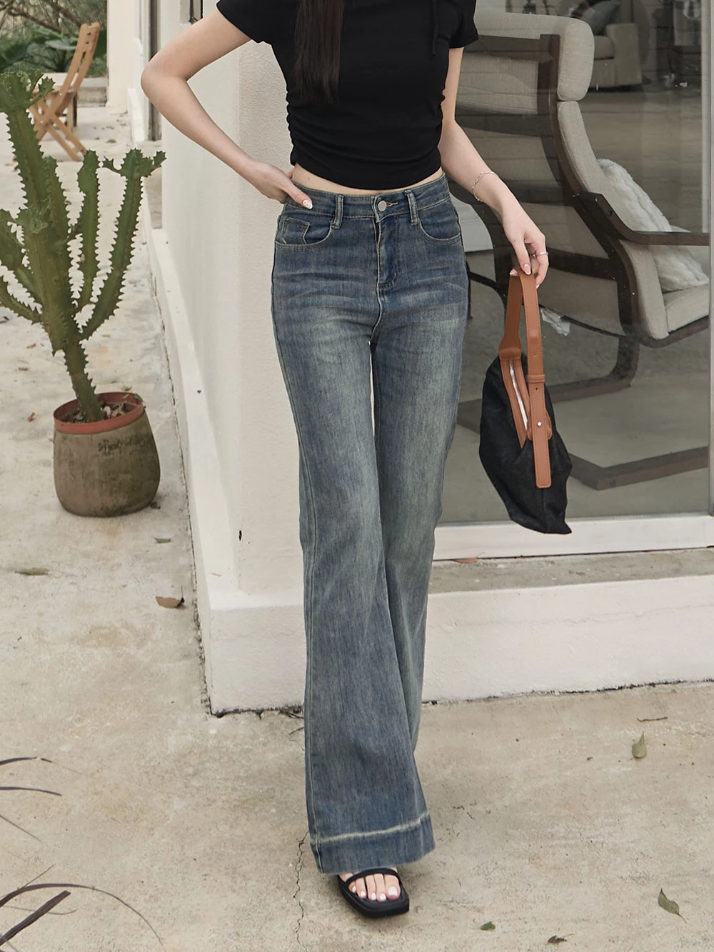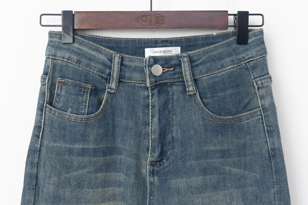 復古刷色喇叭牛仔褲