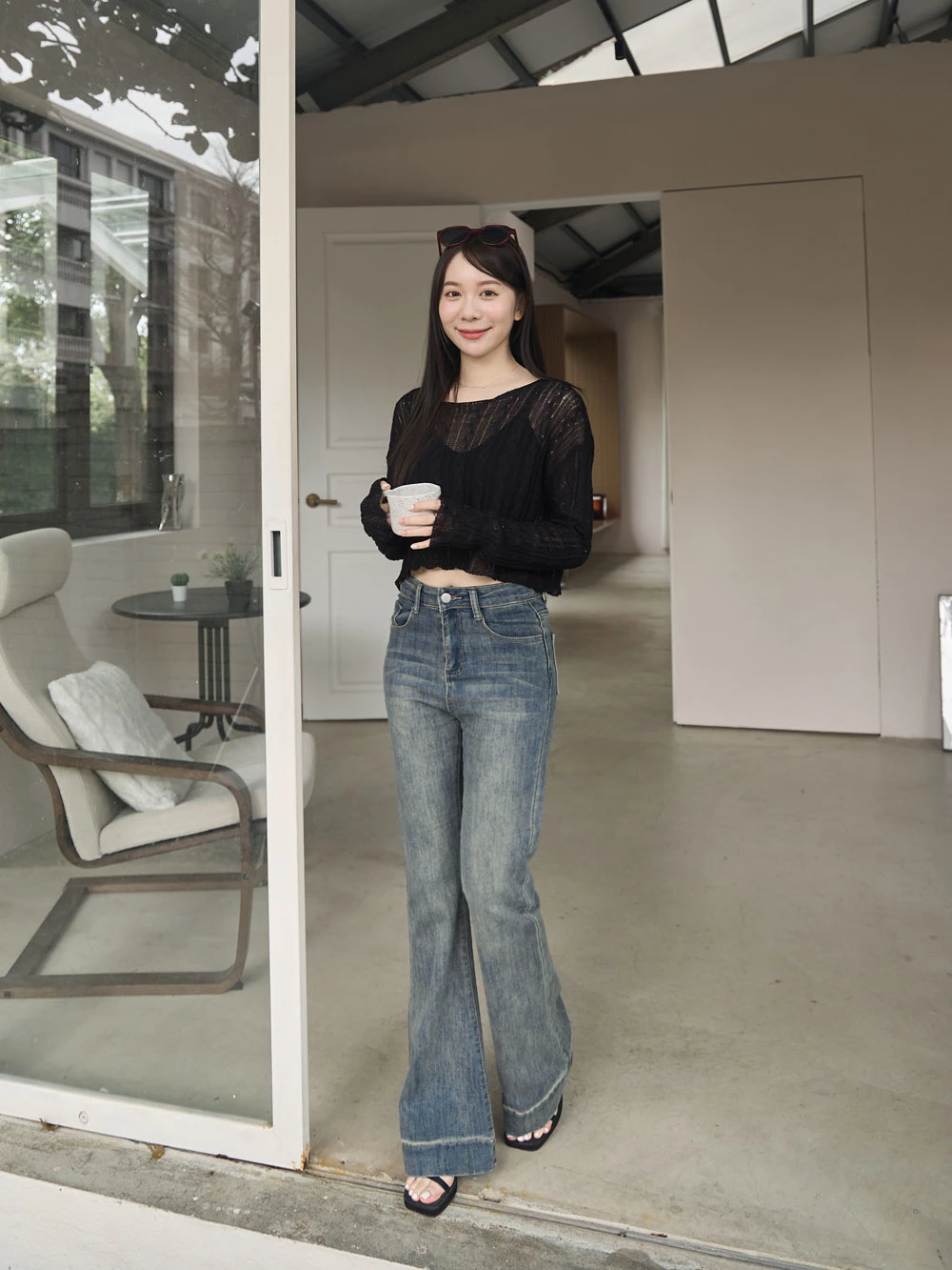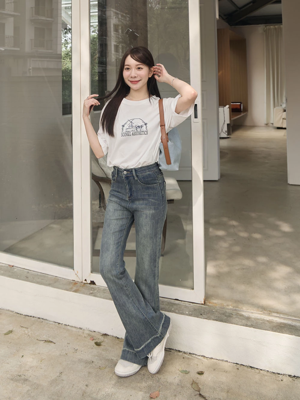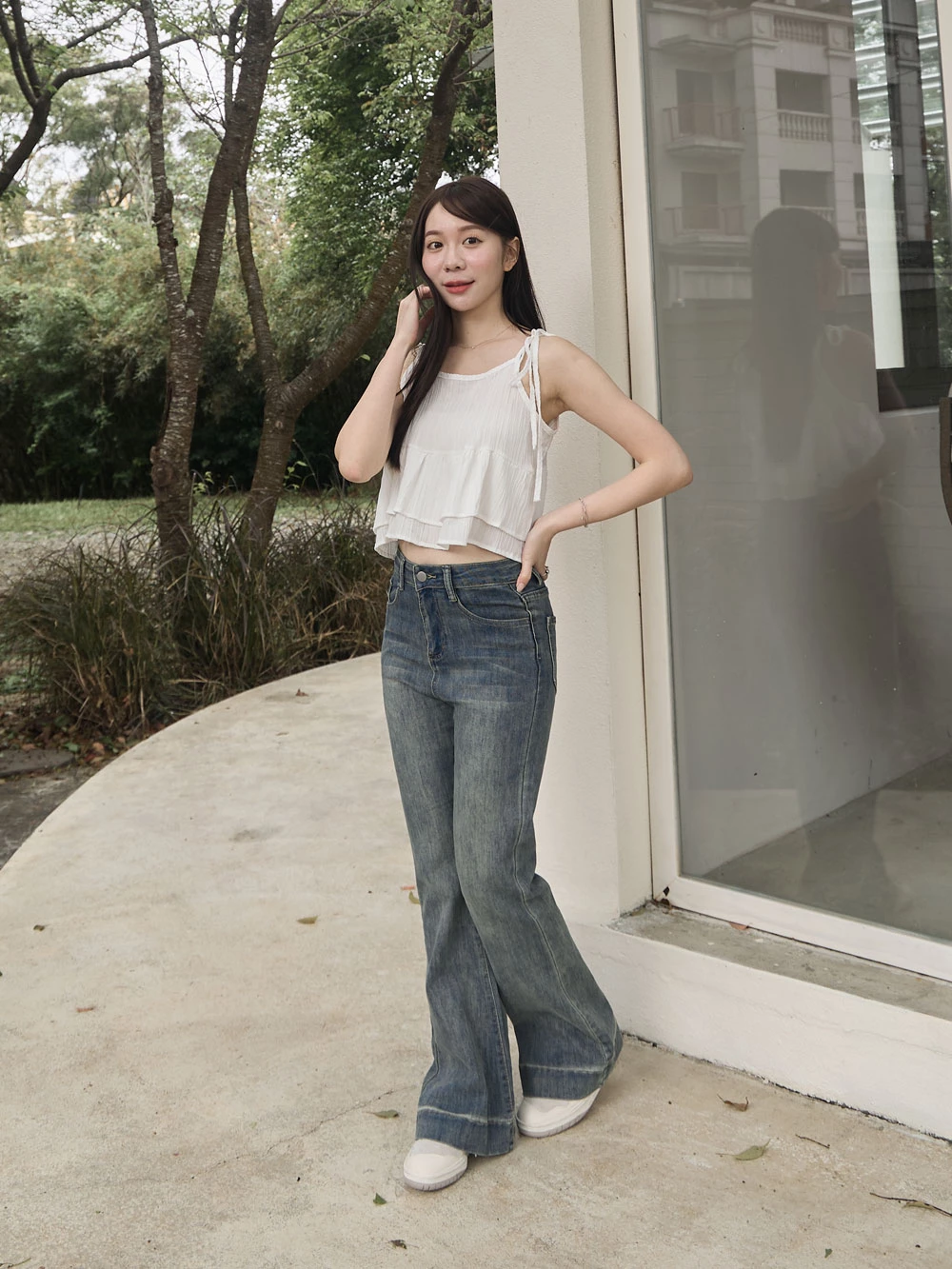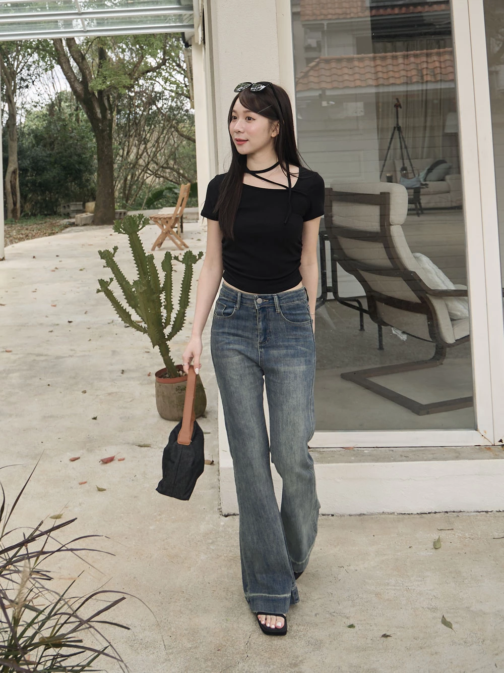 復古刷色喇叭牛仔褲