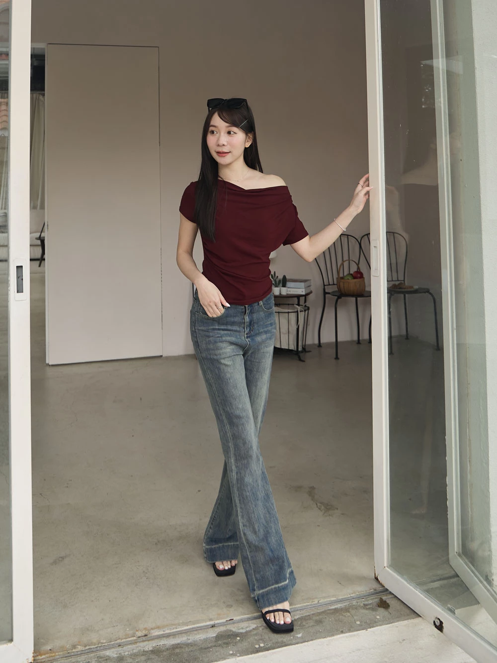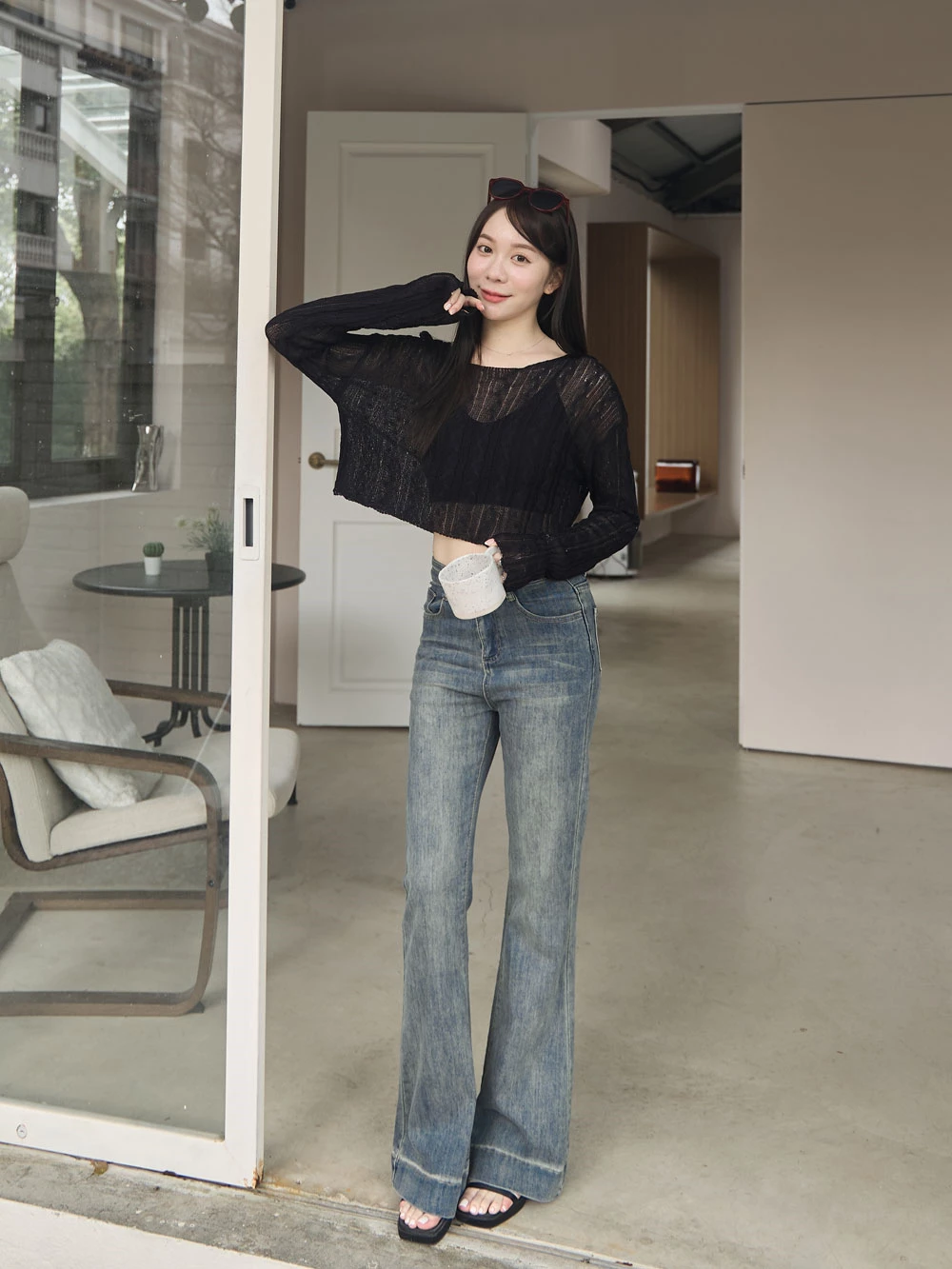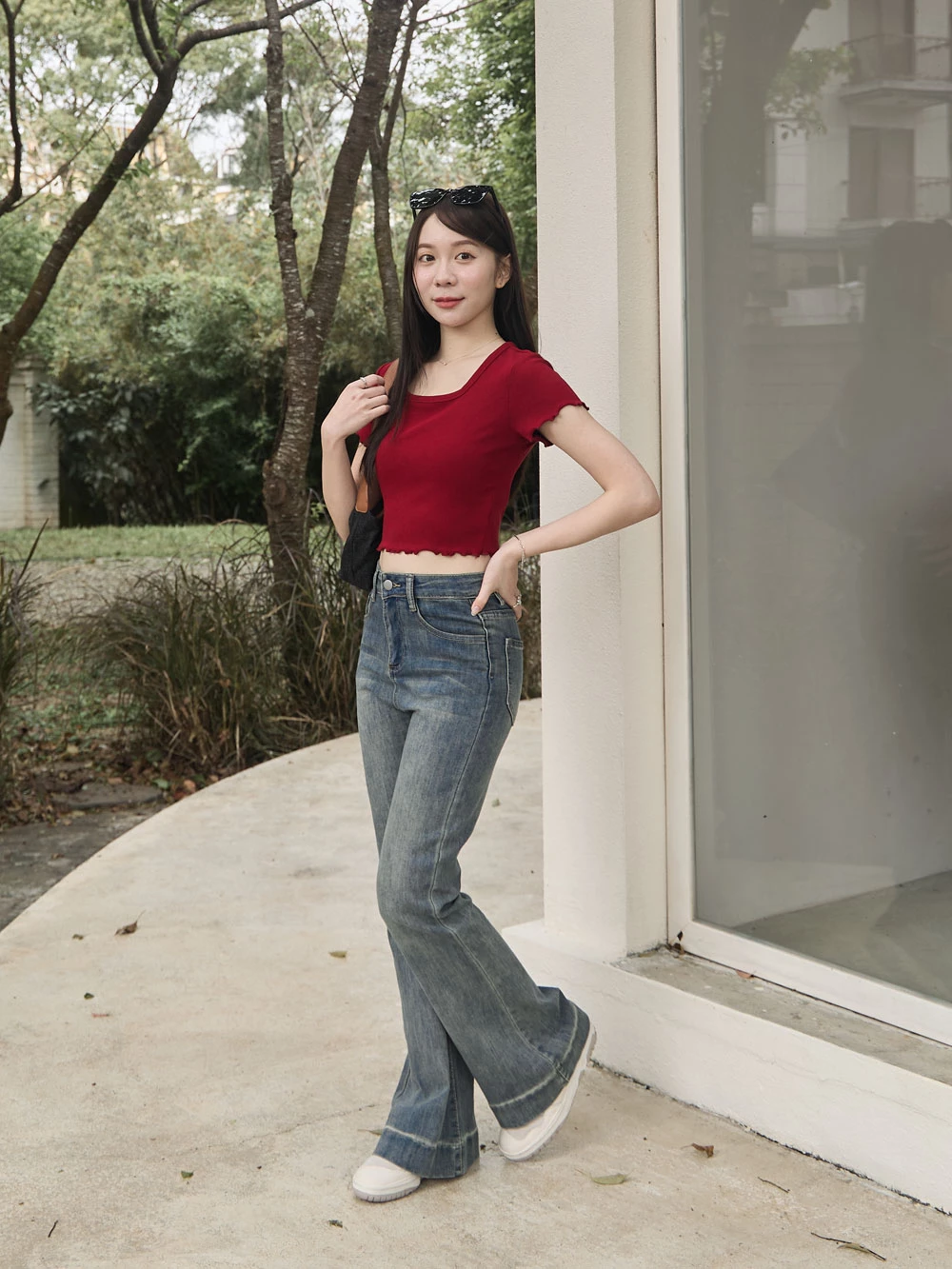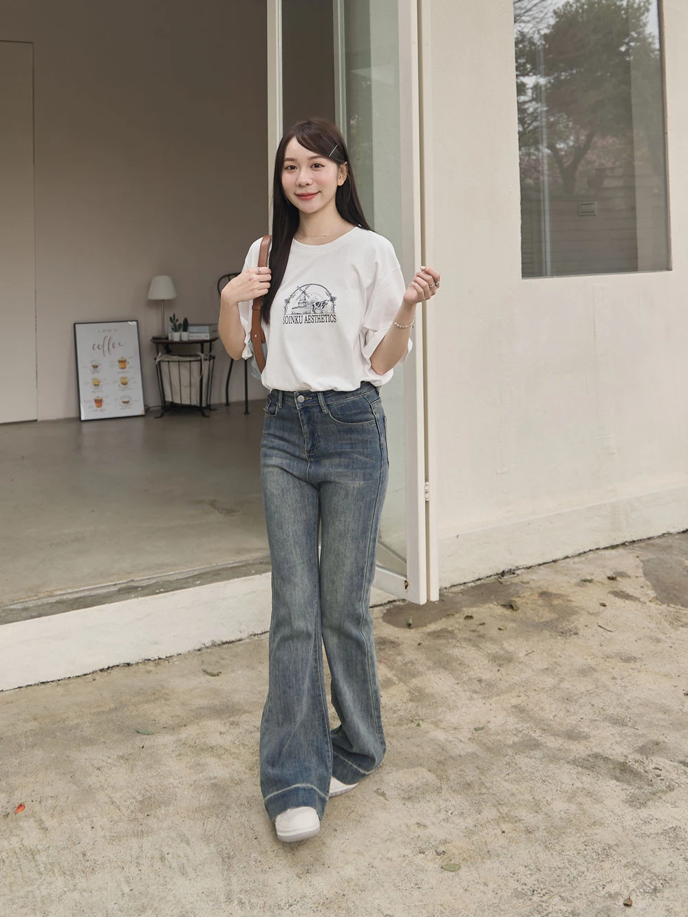 復古刷色喇叭牛仔褲
