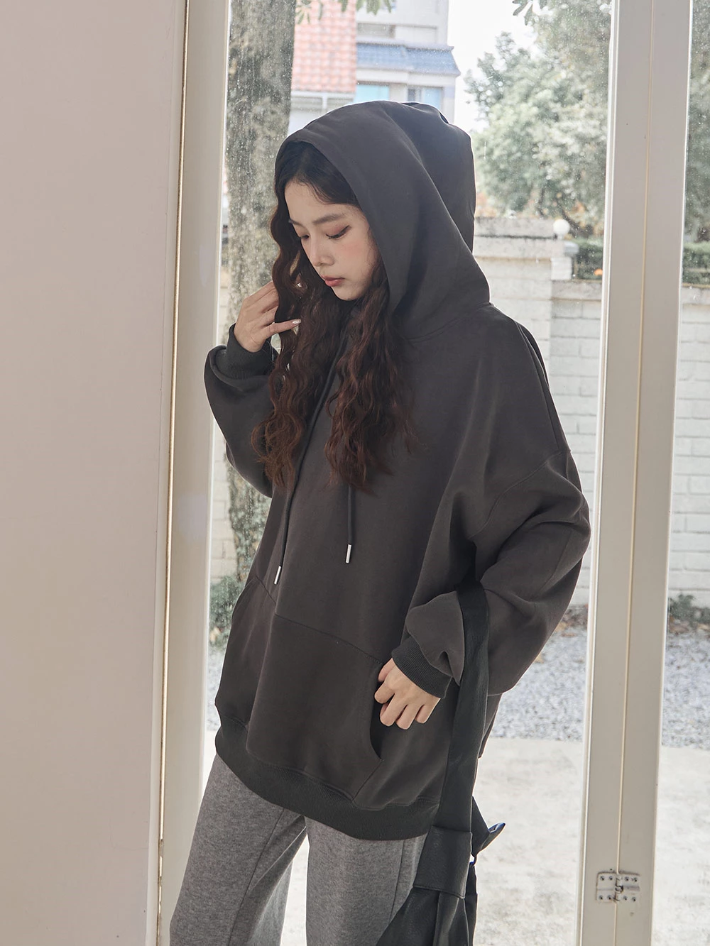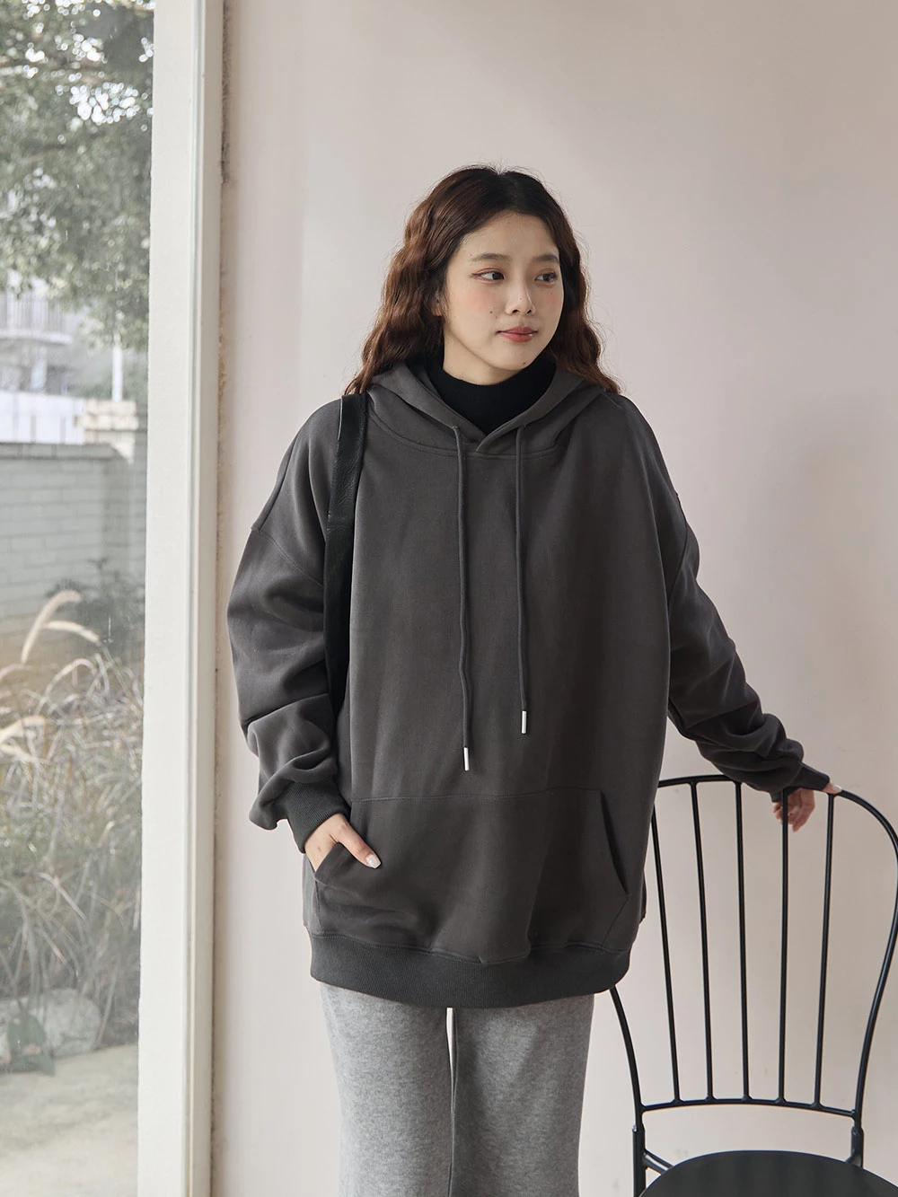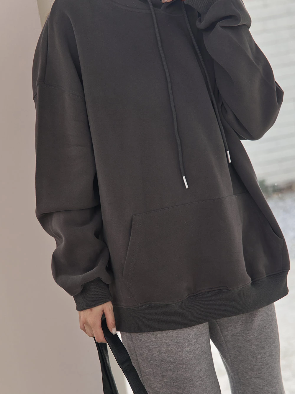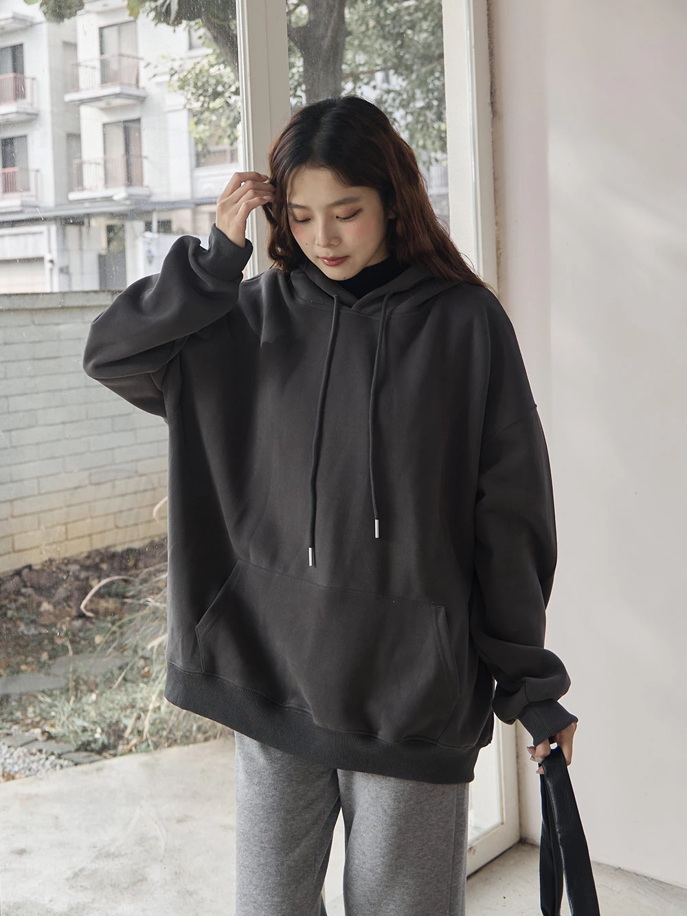 寬鬆雙口袋抽繩連帽上衣