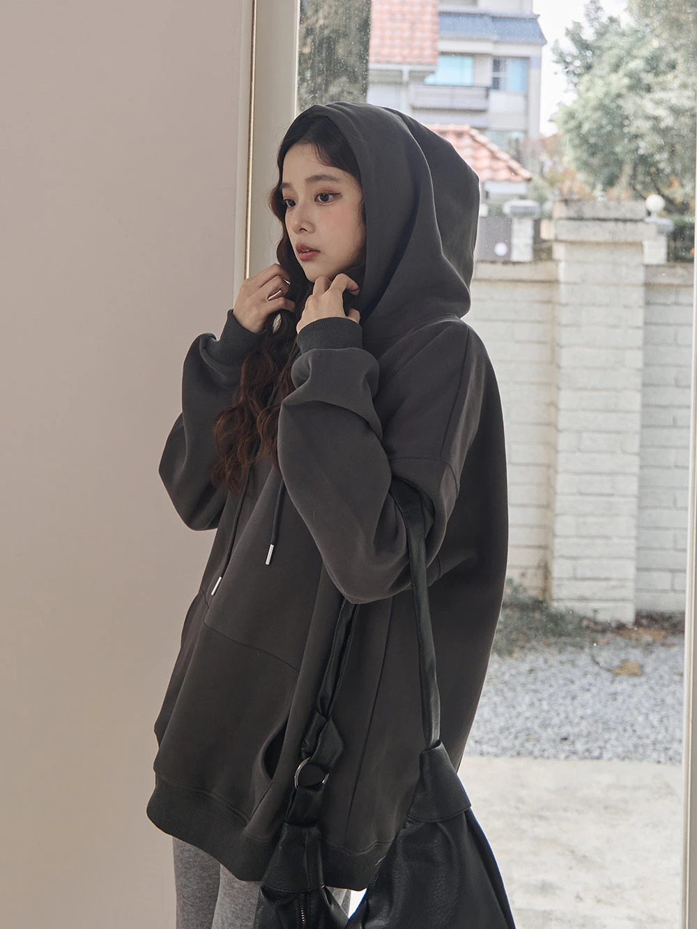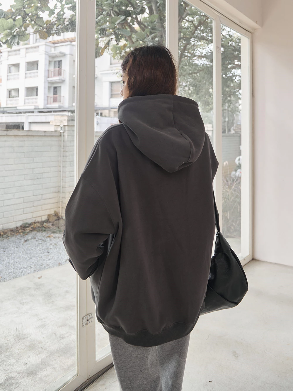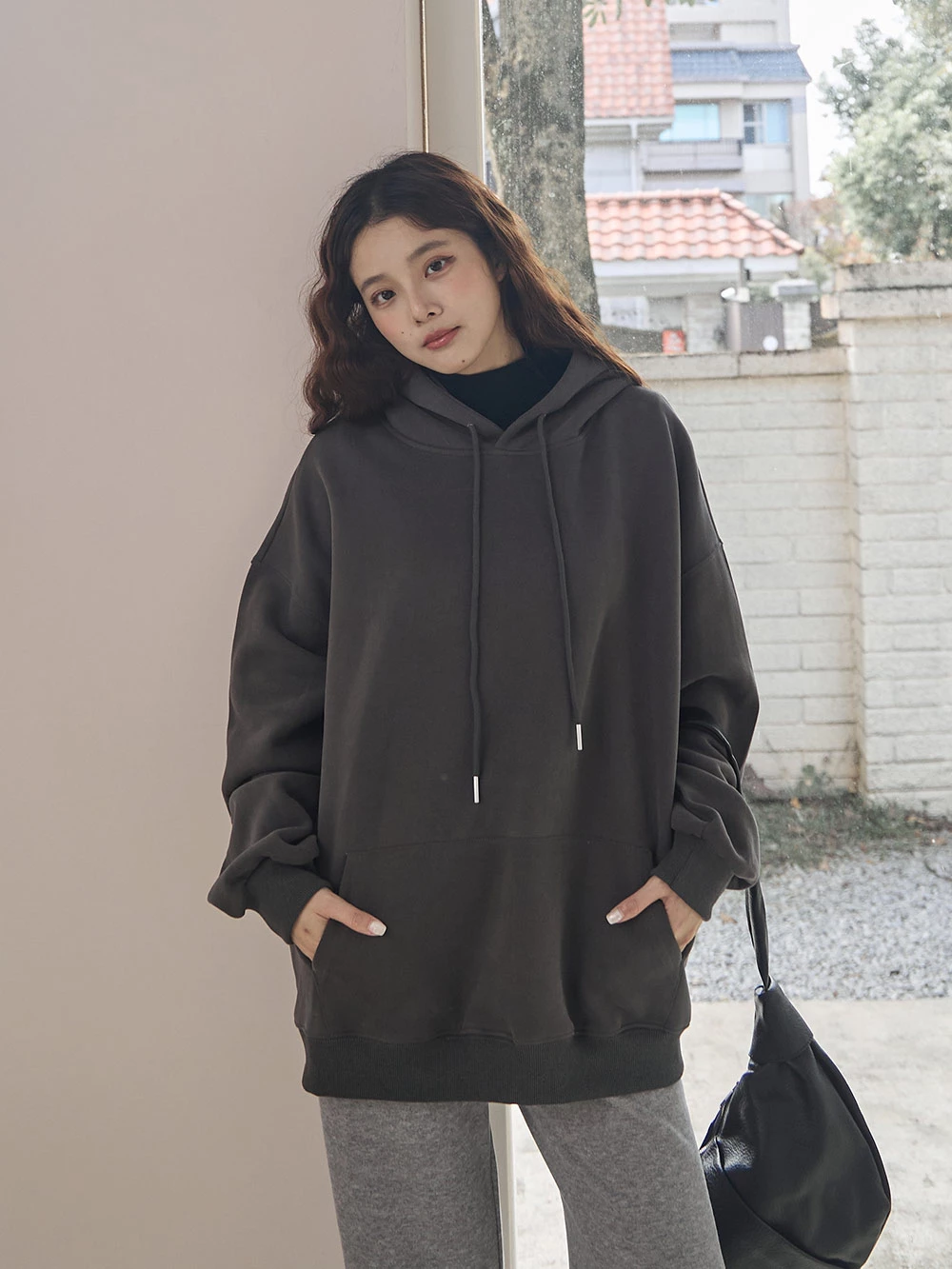 寬鬆雙口袋抽繩連帽上衣