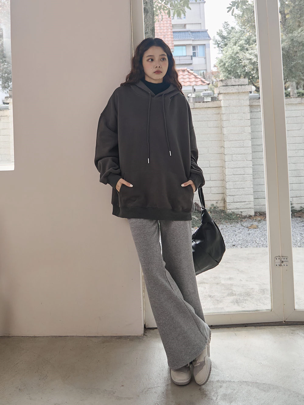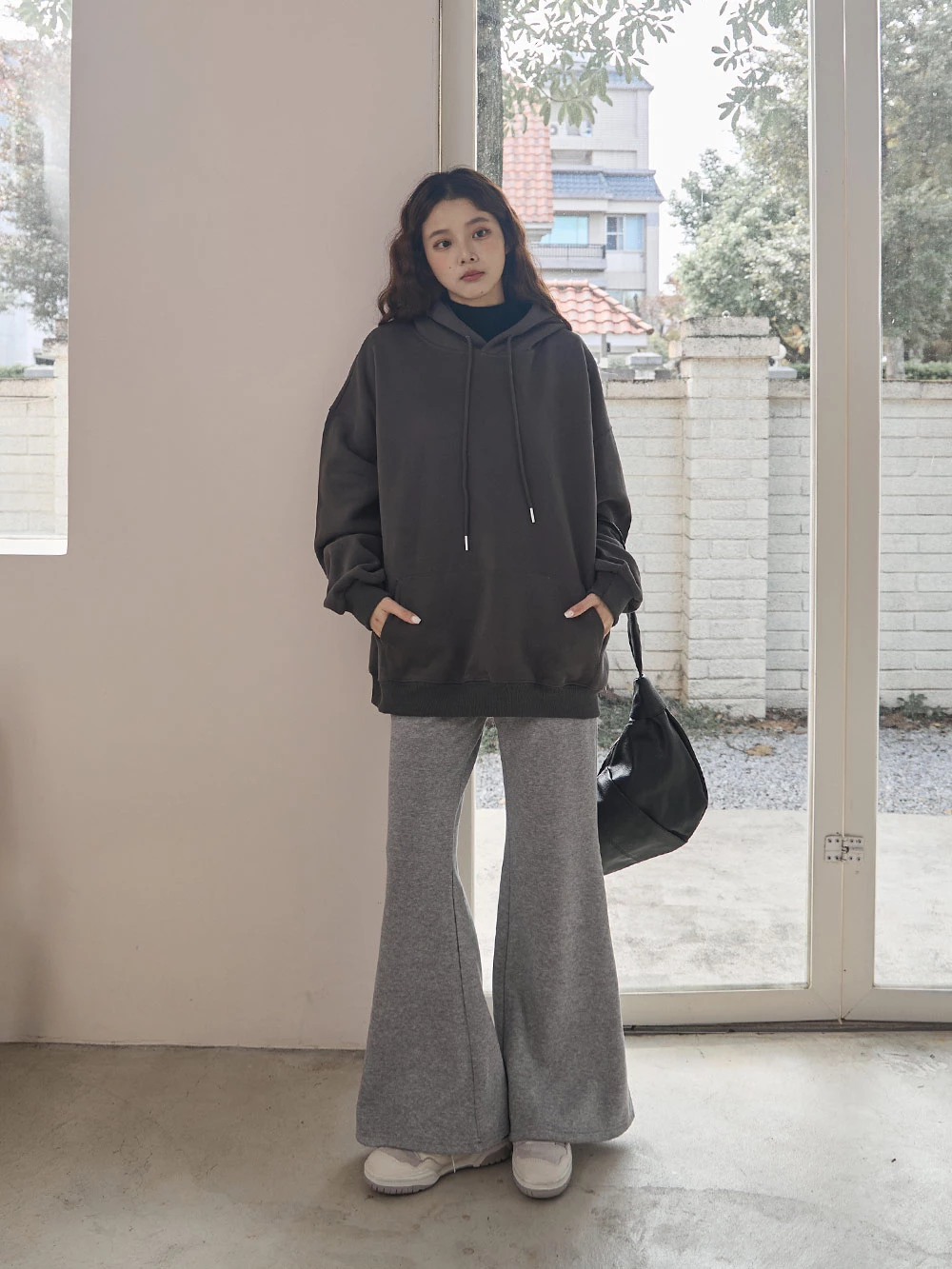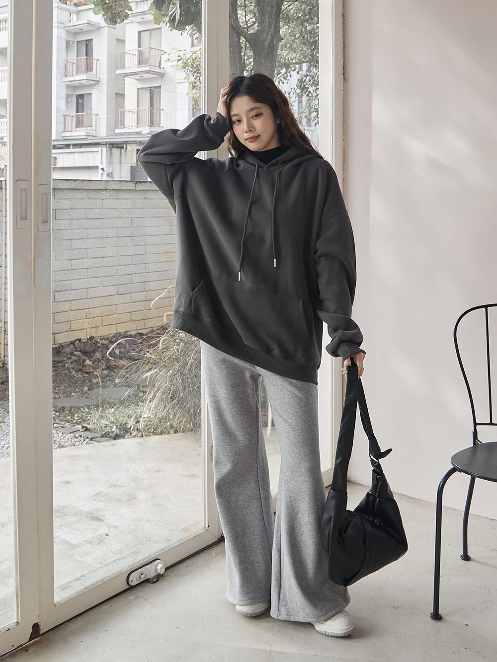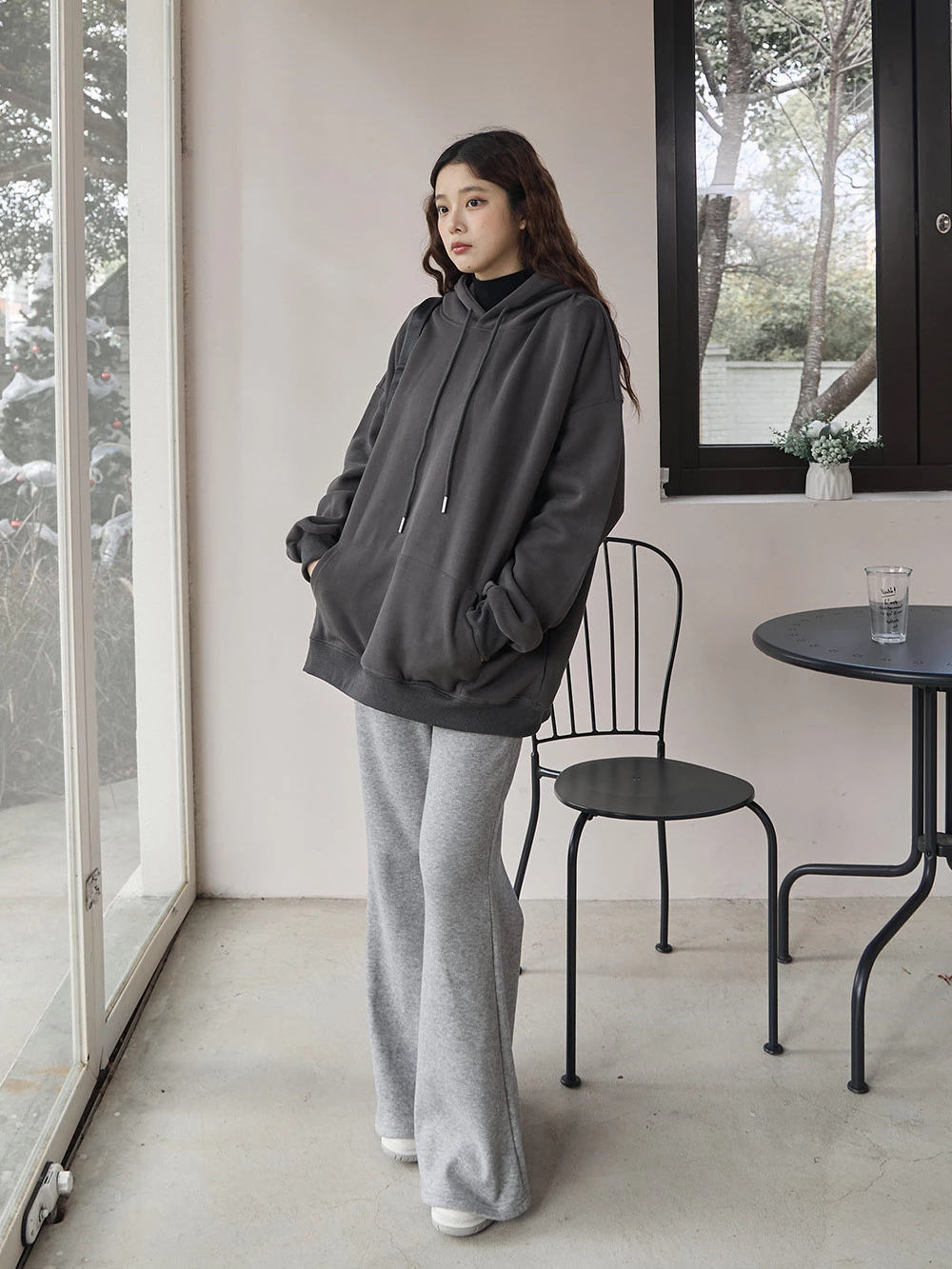 寬鬆雙口袋抽繩連帽上衣