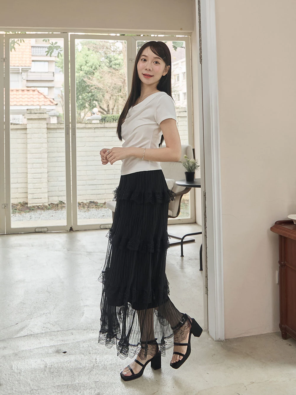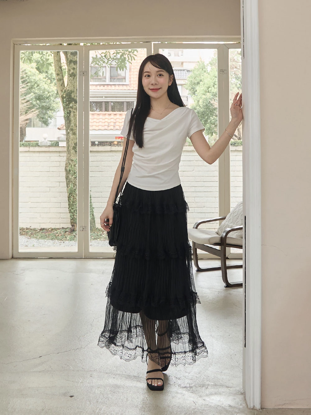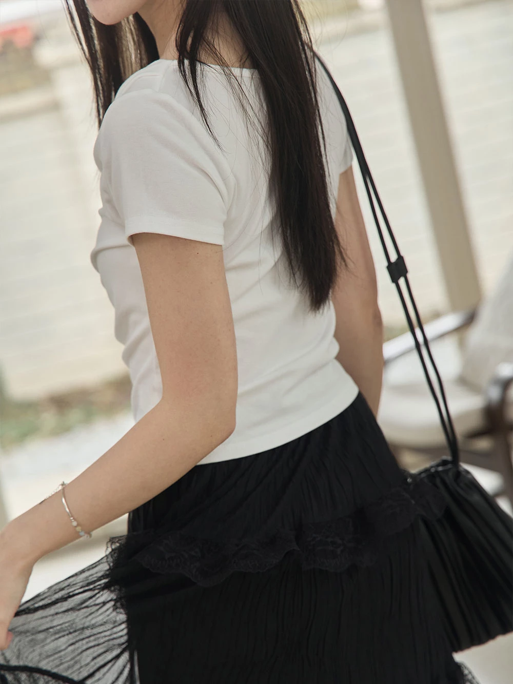 垂領抓皺柔彈短袖上衣 | Space Picnic