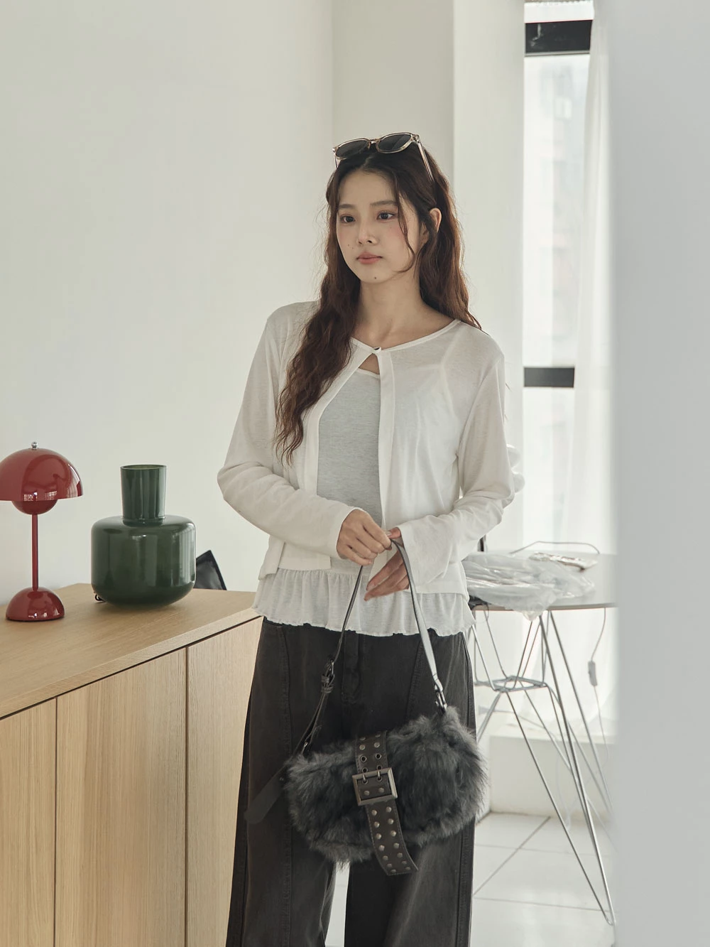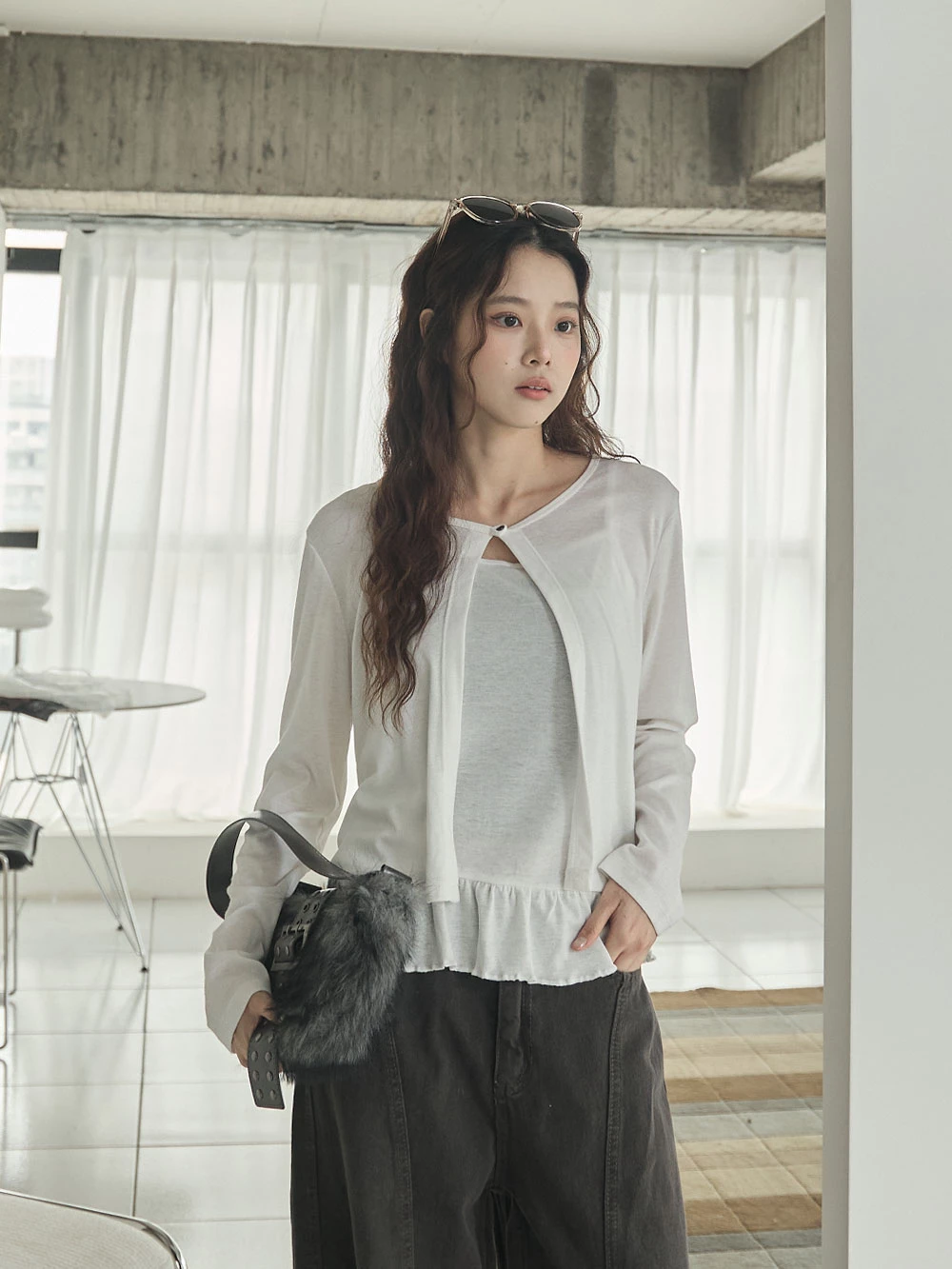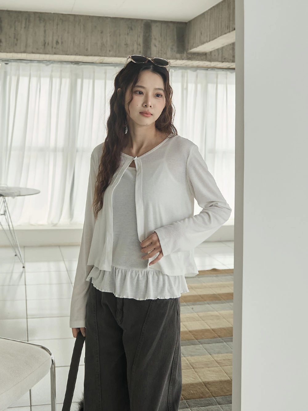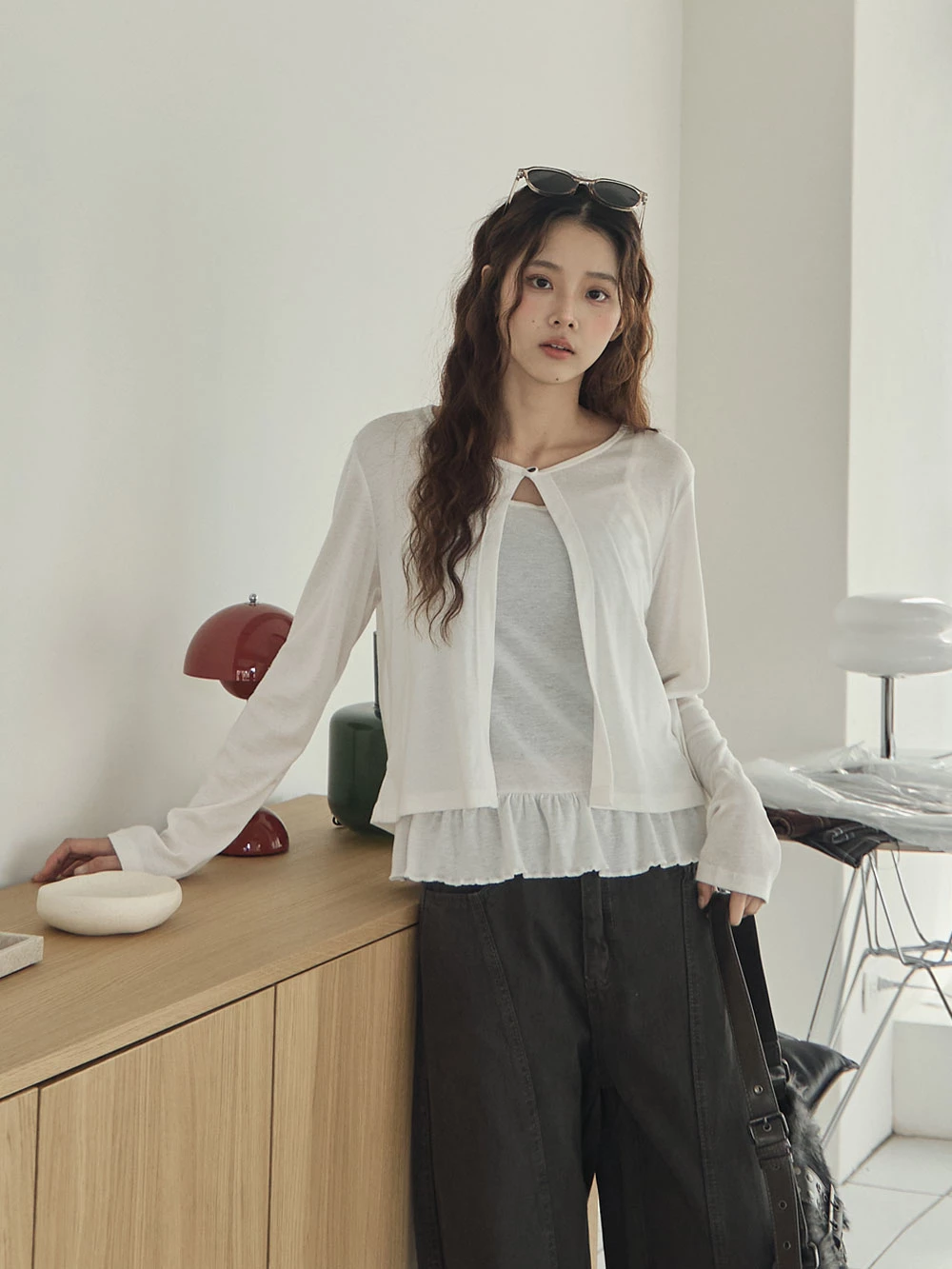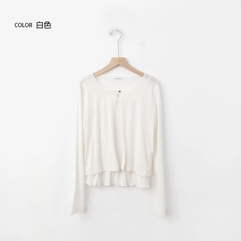 兩件式-荷葉下襬細肩背心+單釦罩衫 | Space Picnic