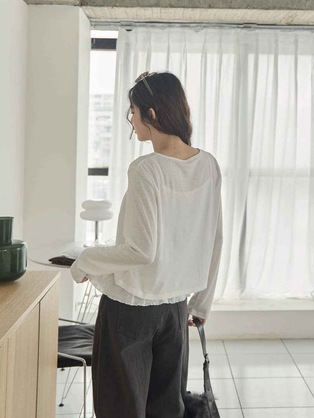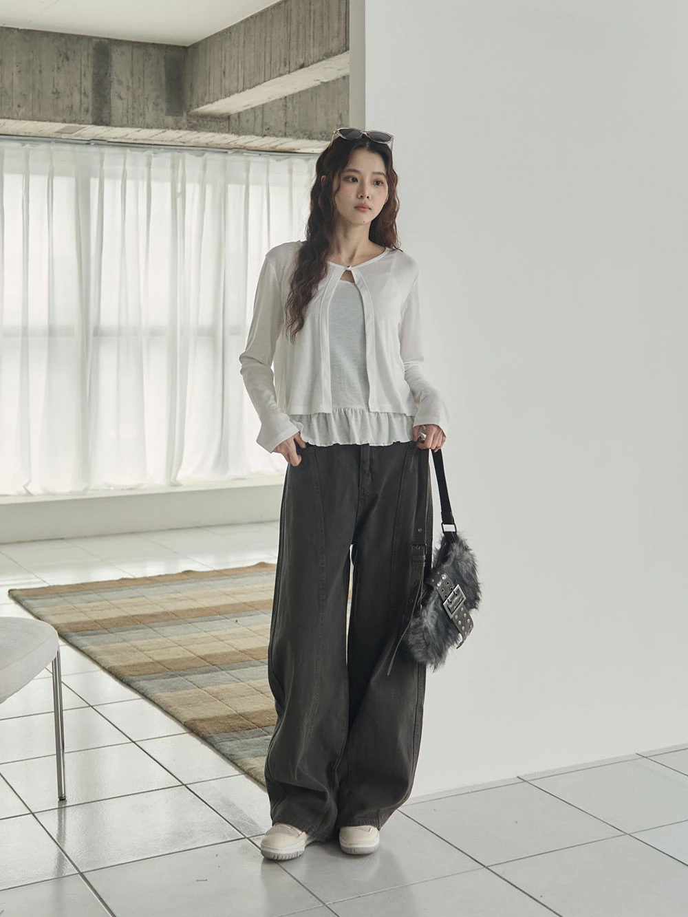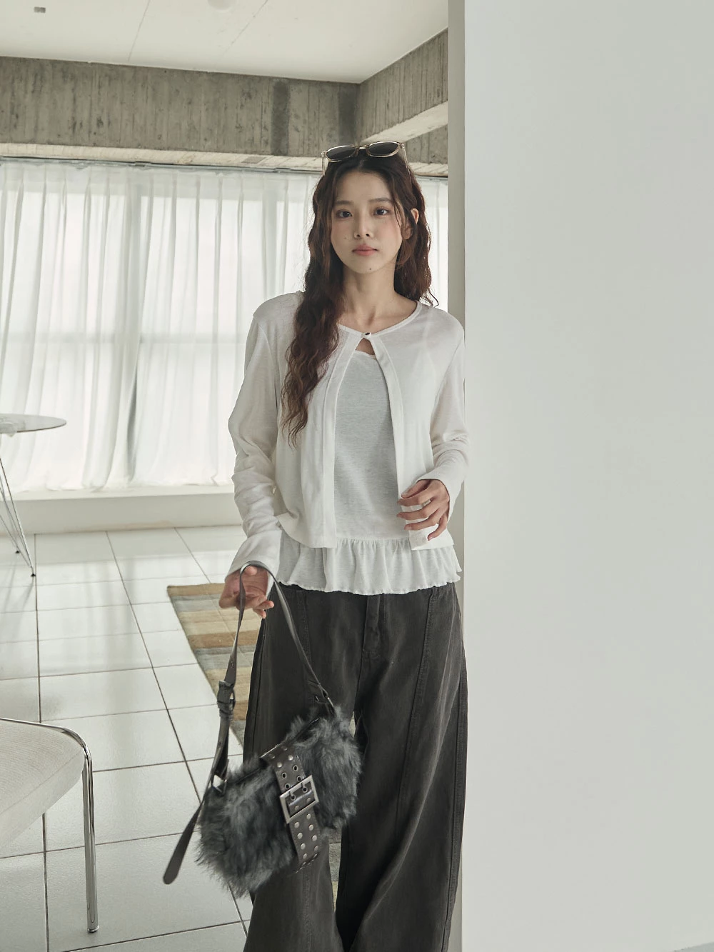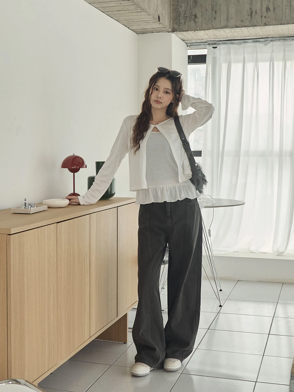 兩件式-荷葉下襬細肩背心+單釦罩衫 | Space Picnic