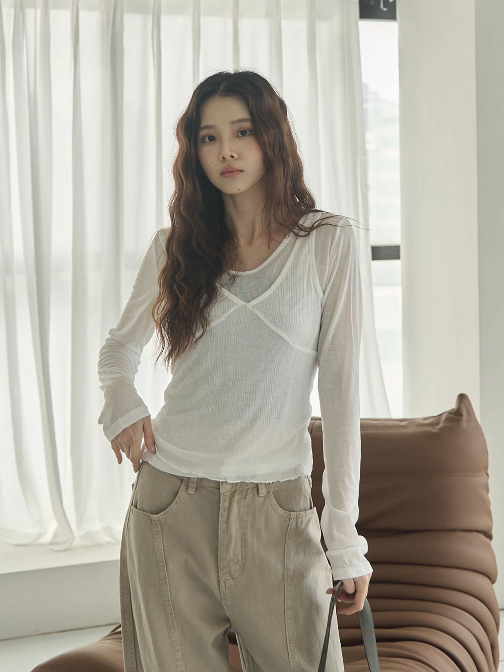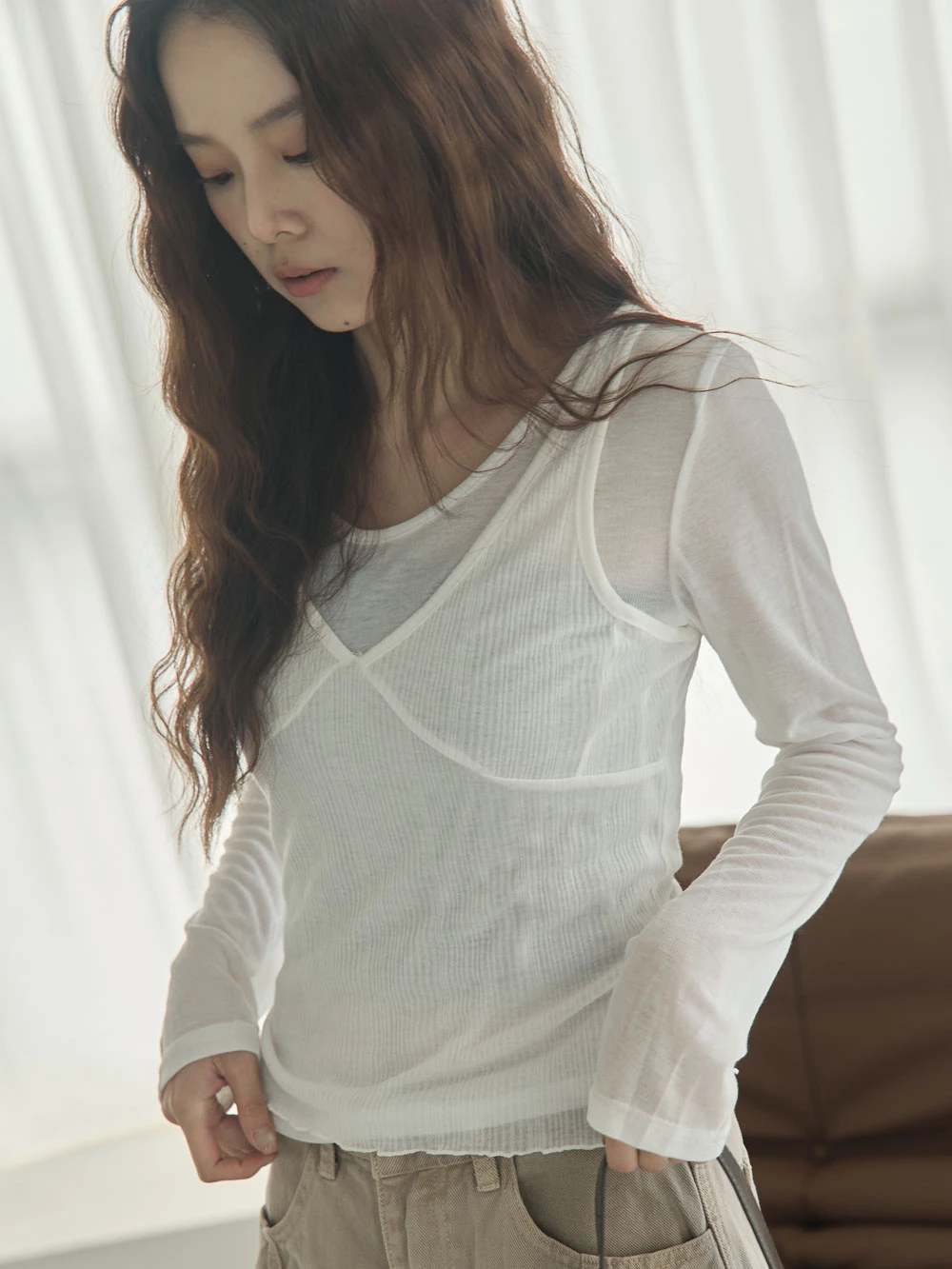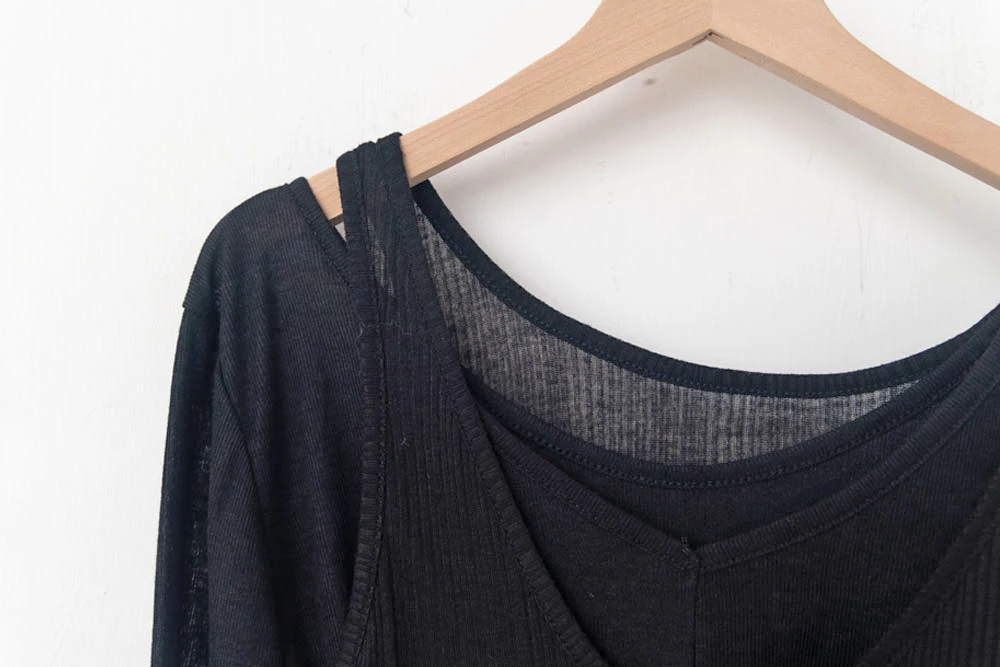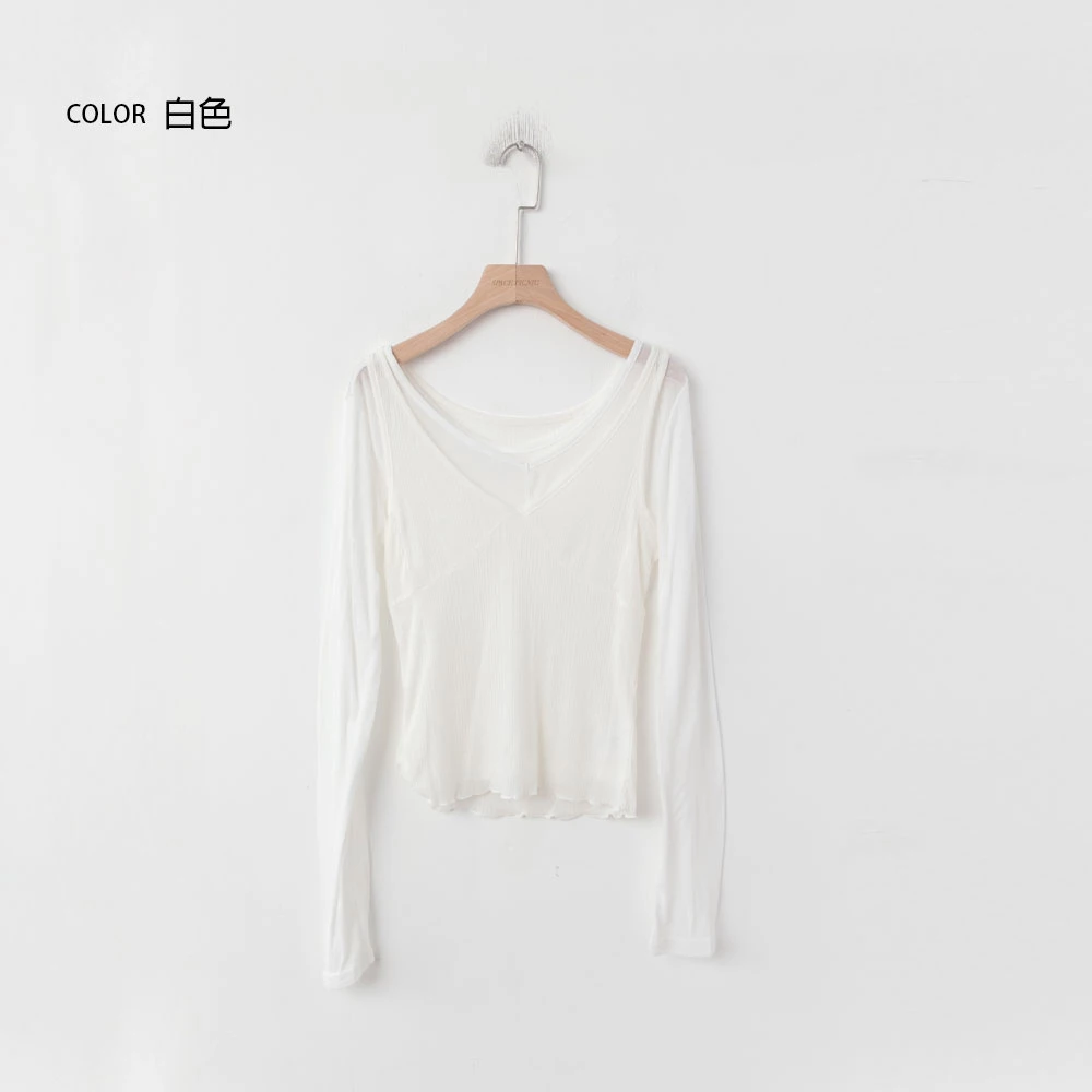 兩件式-微透上衣+V領背心