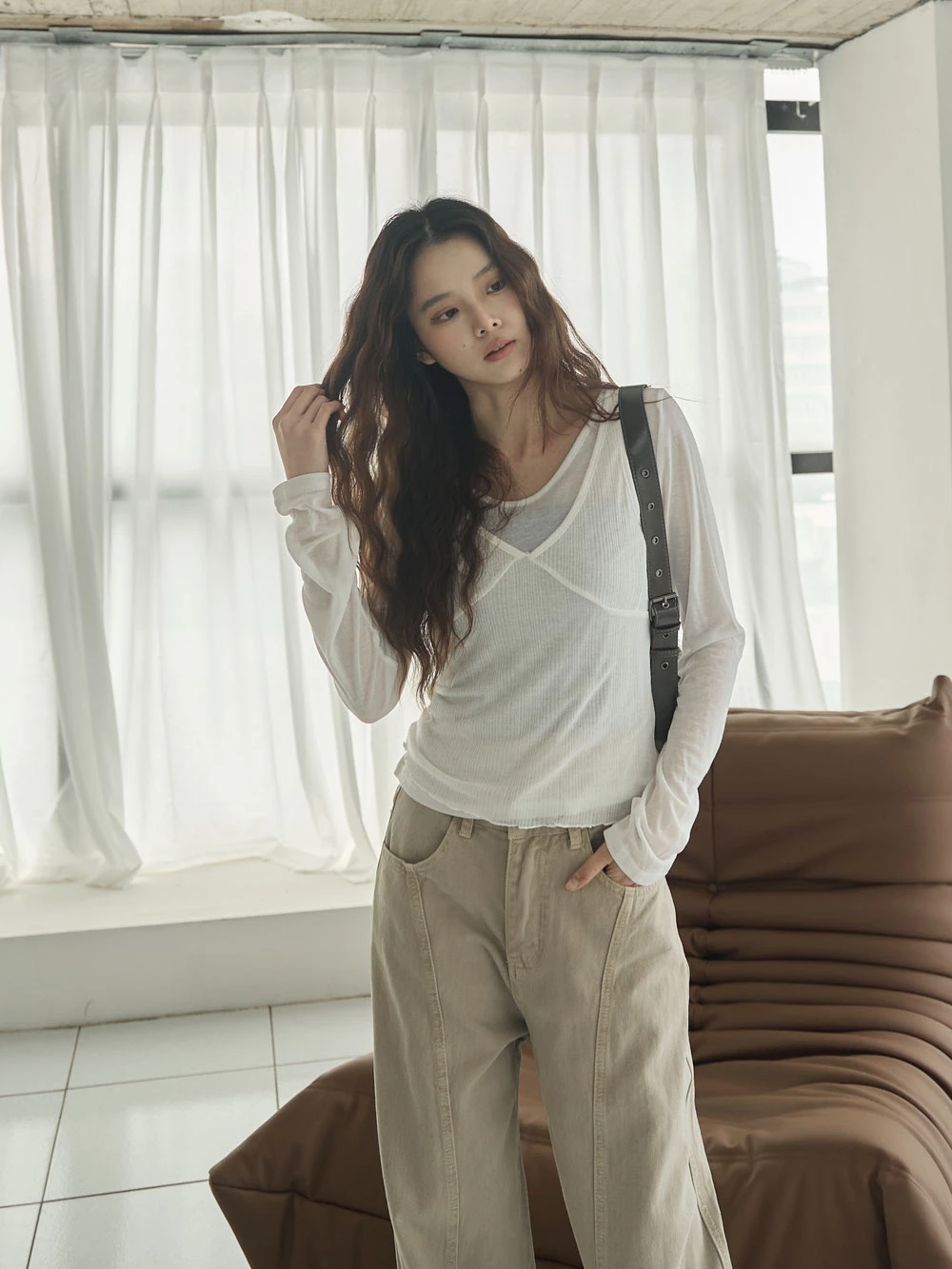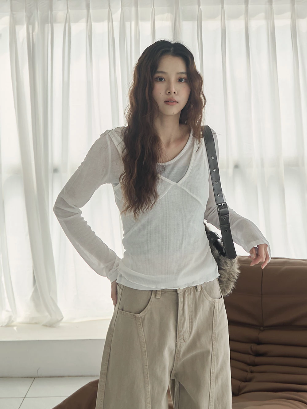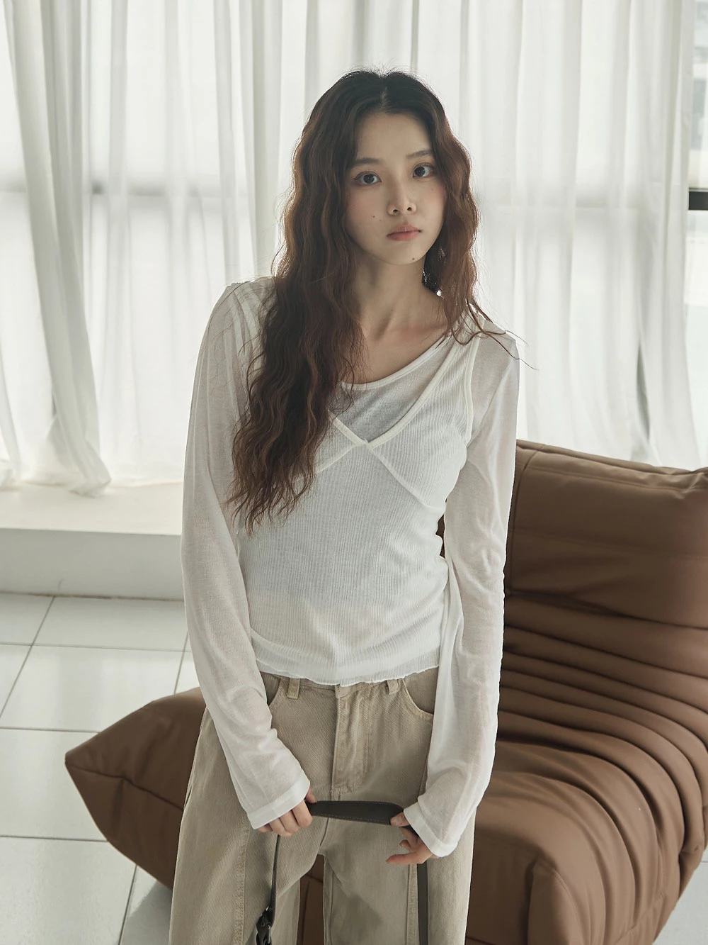 兩件式-微透上衣+V領背心