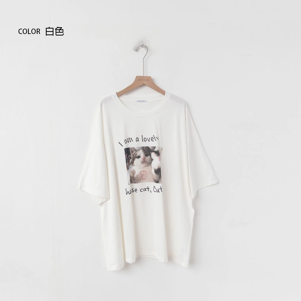 lovely貓咪印圖寬鬆上衣