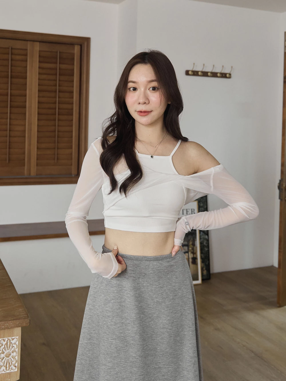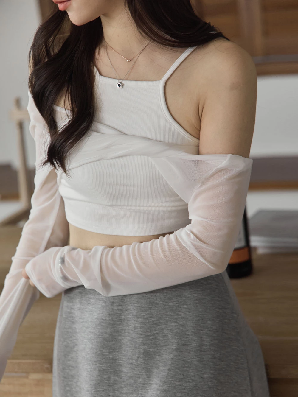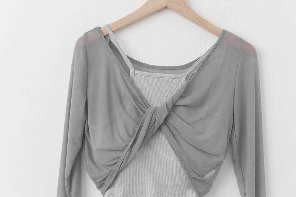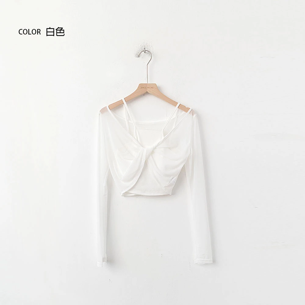 兩件式-胸墊背心+兩穿透膚上衣