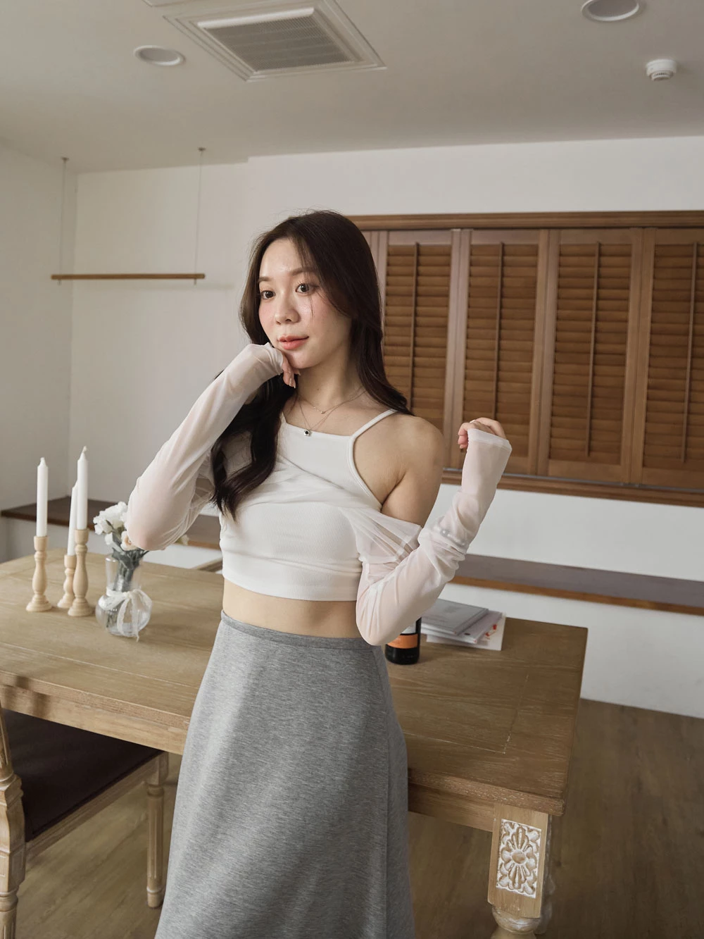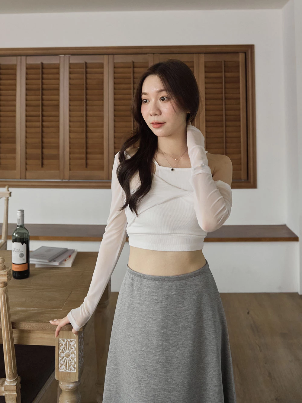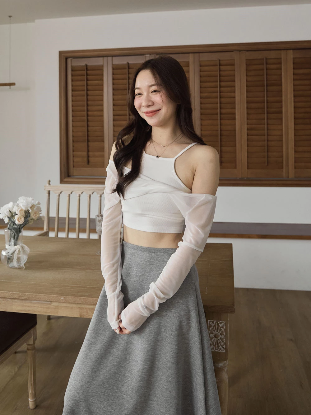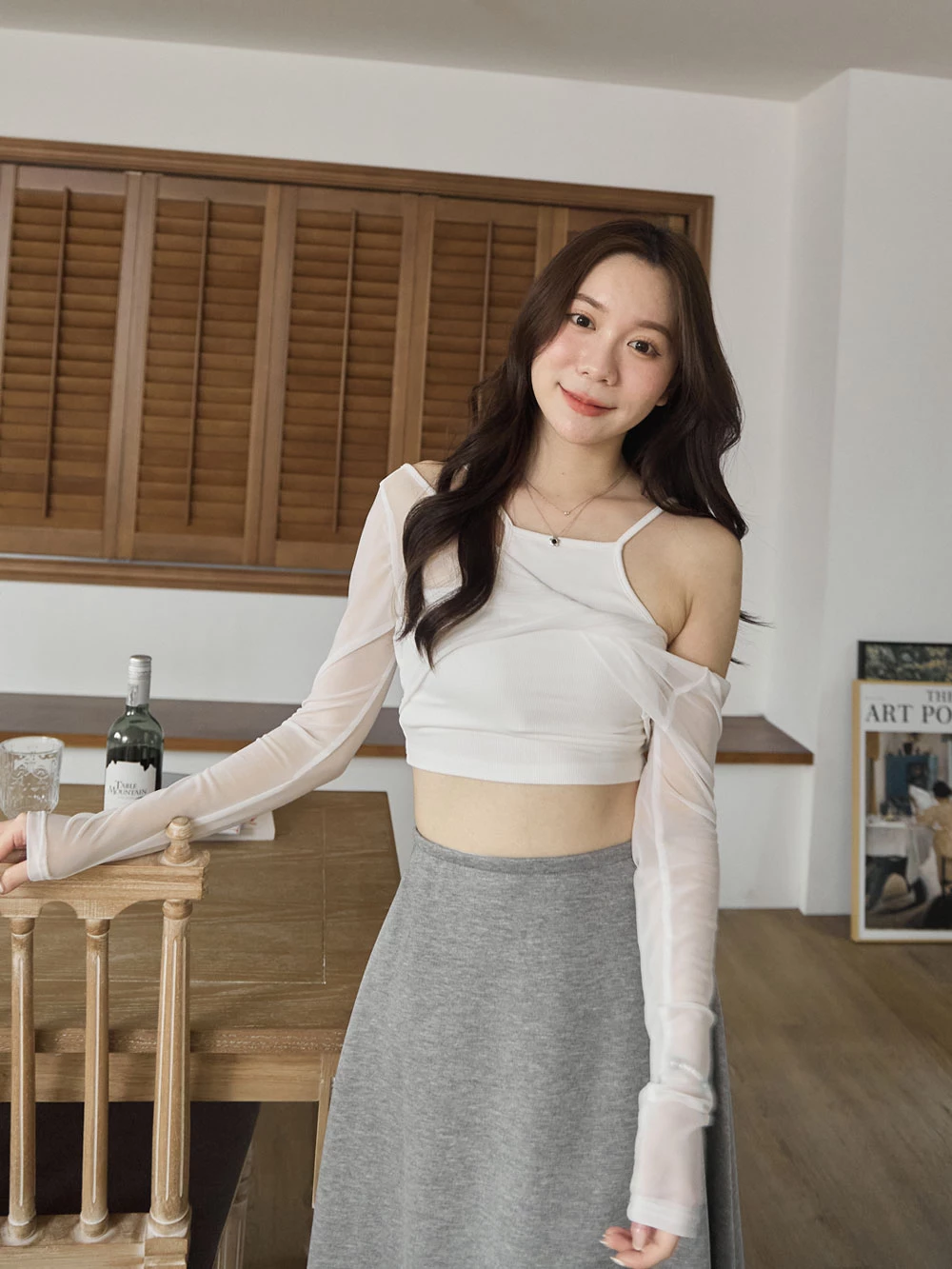 兩件式-胸墊背心+兩穿透膚上衣