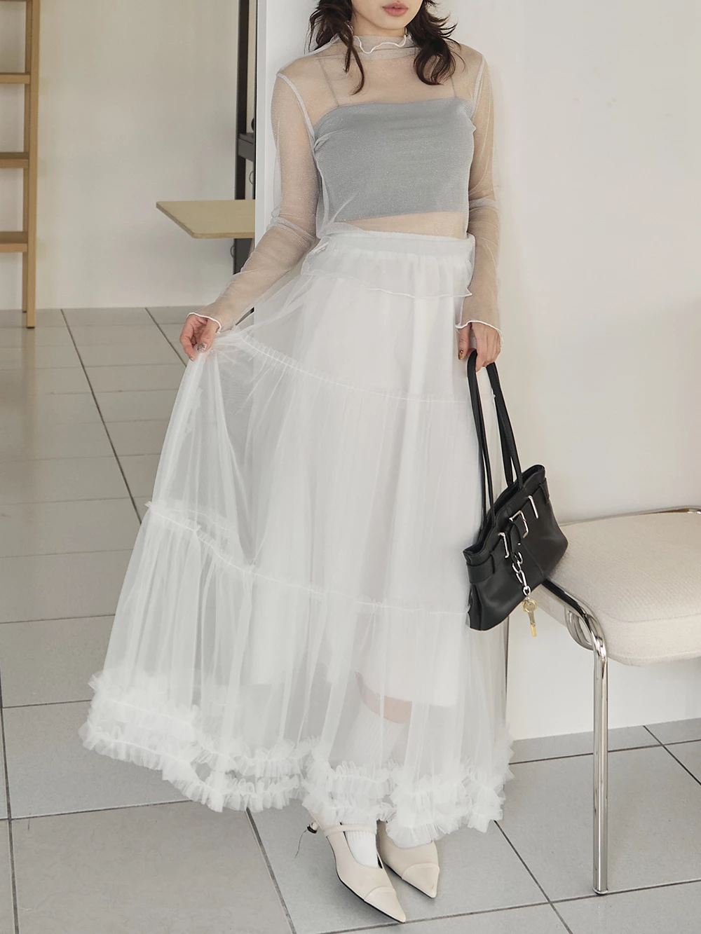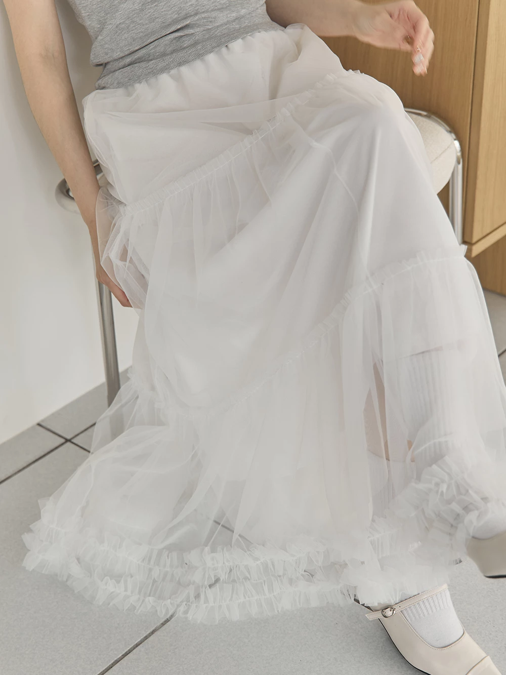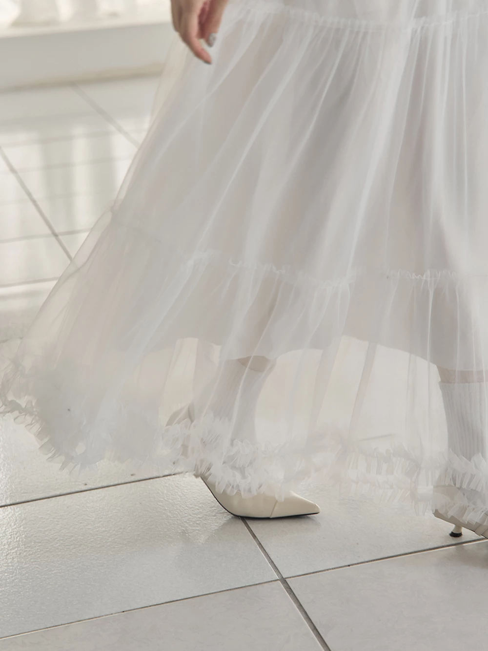 荷葉蛋糕網紗長裙