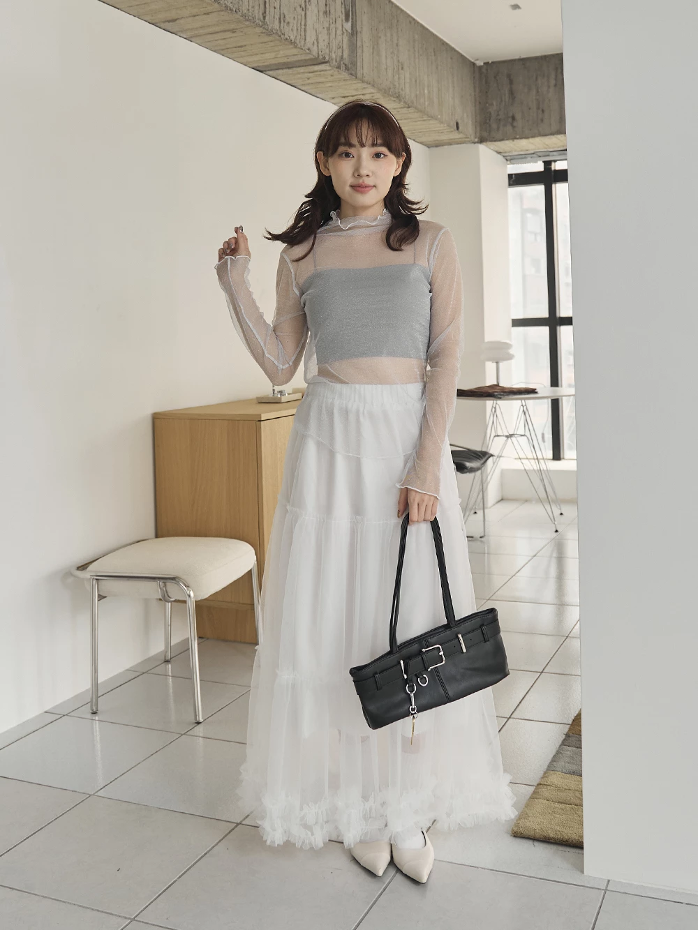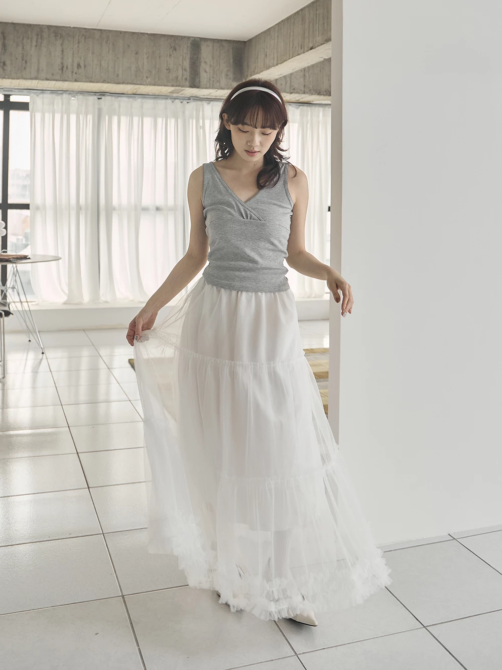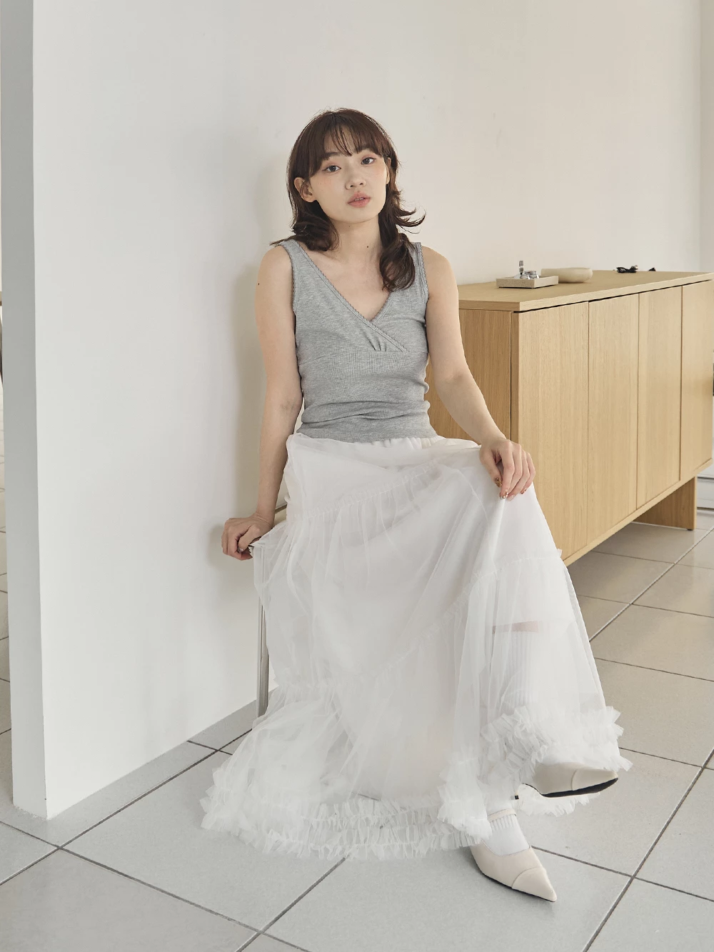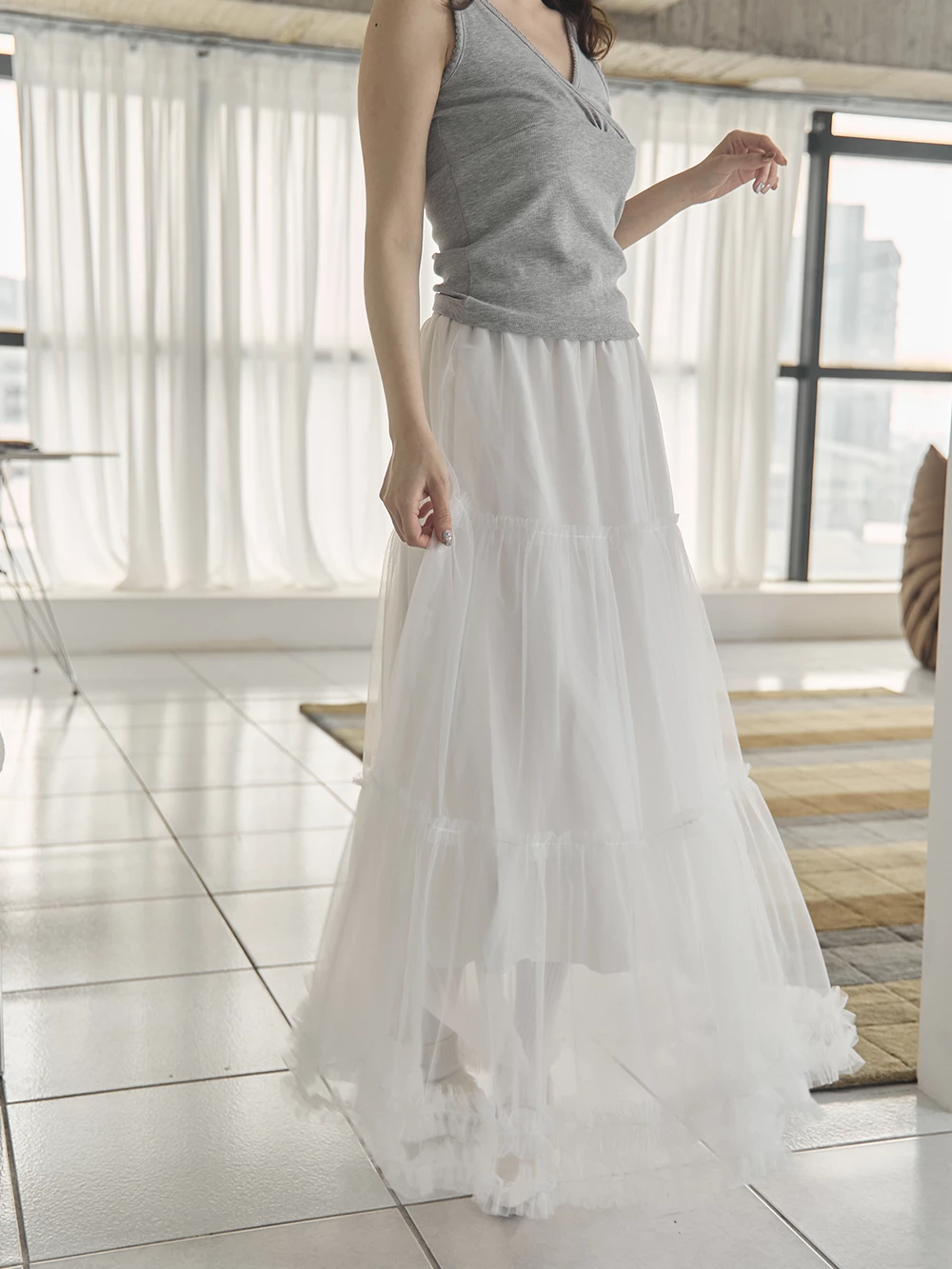 荷葉蛋糕網紗長裙